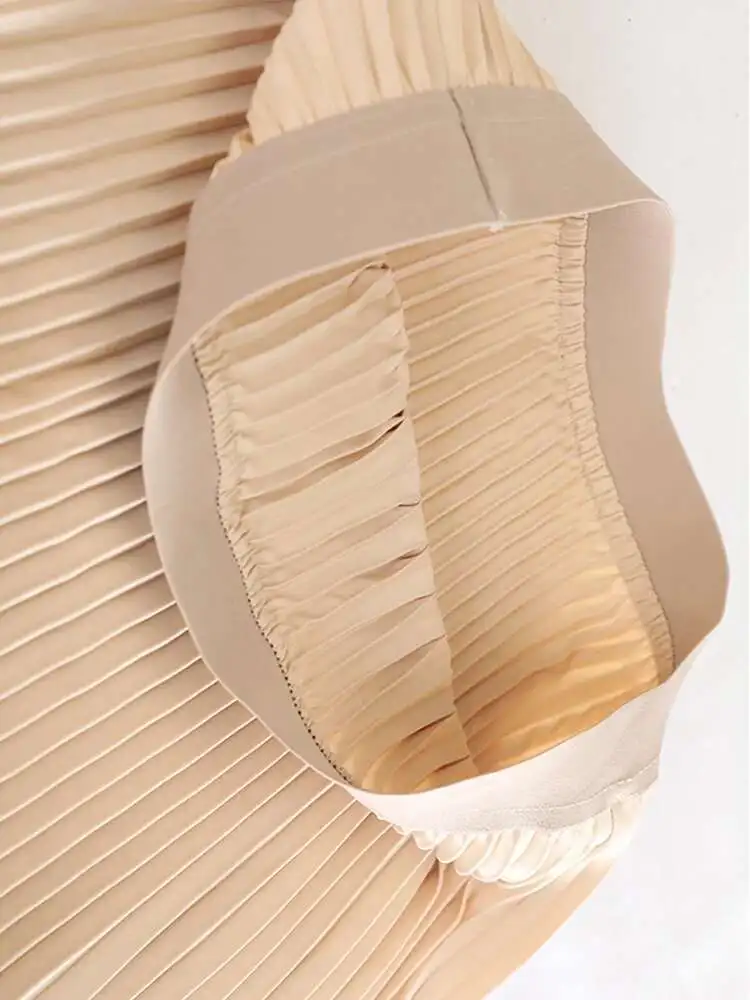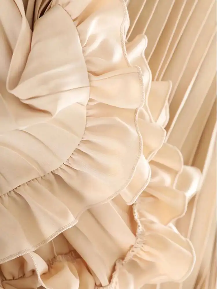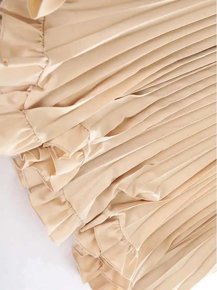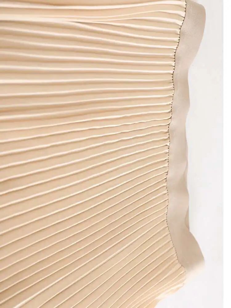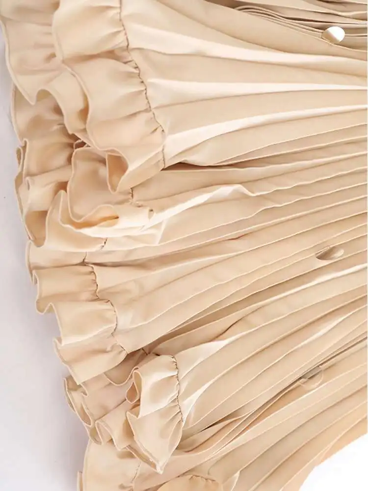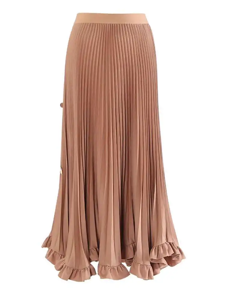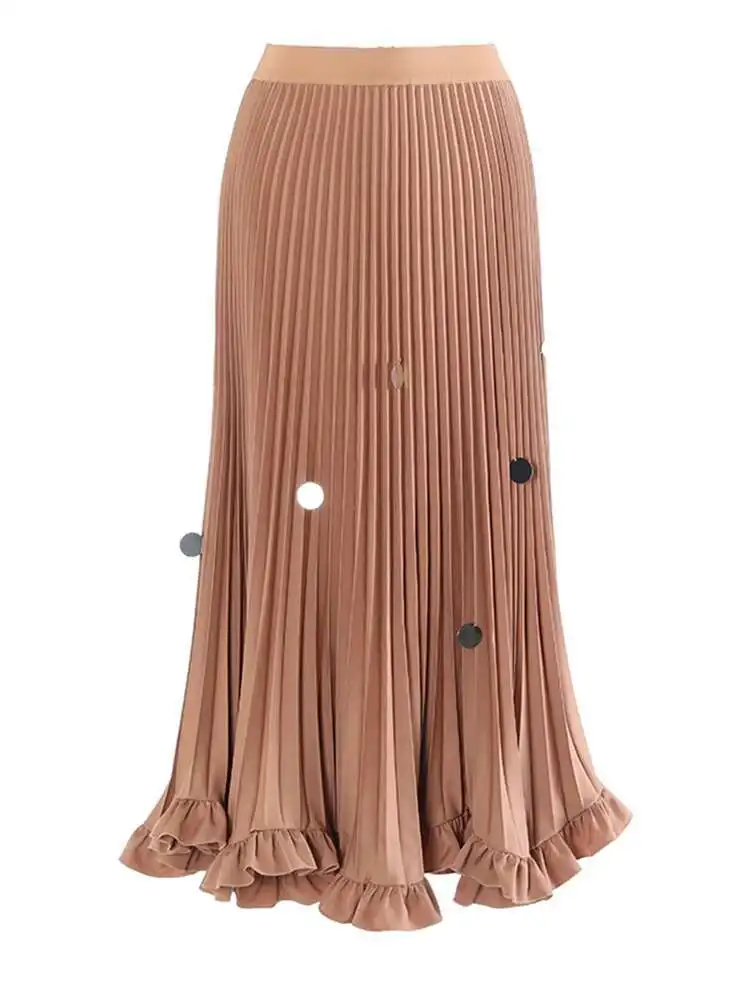 High Elastic Waist Khaki Pleated Elegant Sequins A-line Half-body Skirt Women Fashion Tide New Spring Autumn 2025 1DH8169