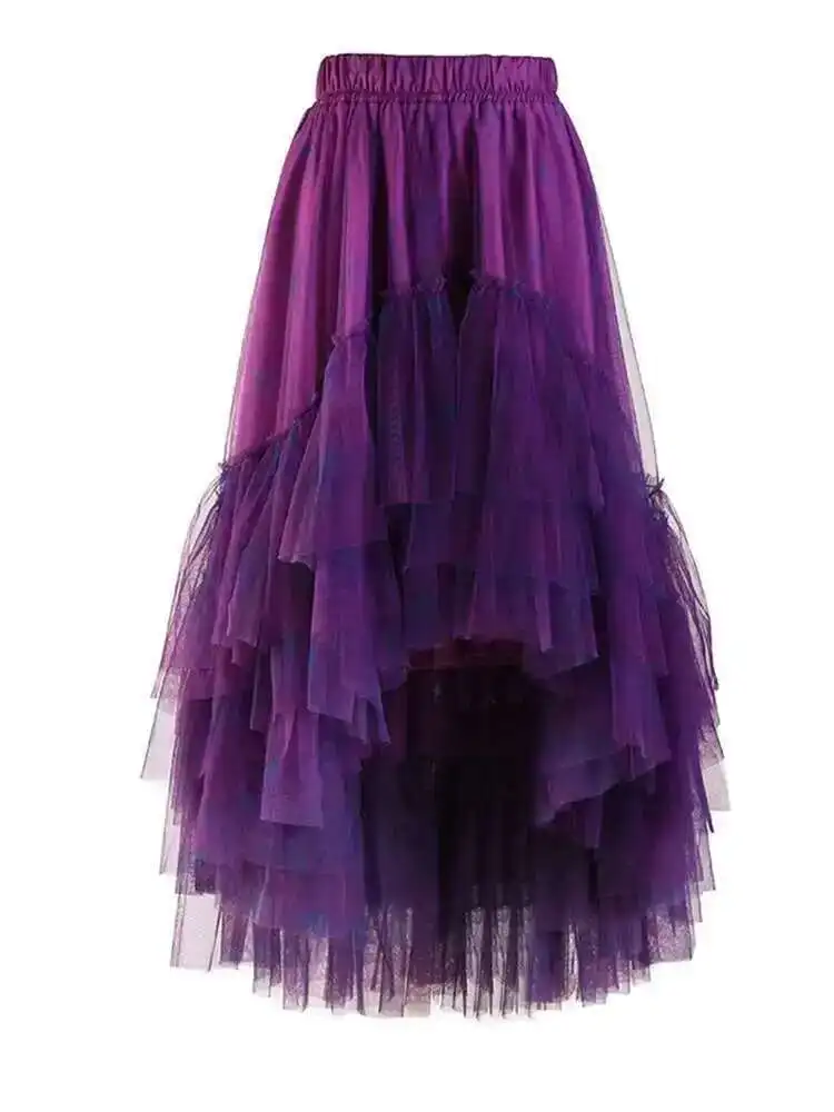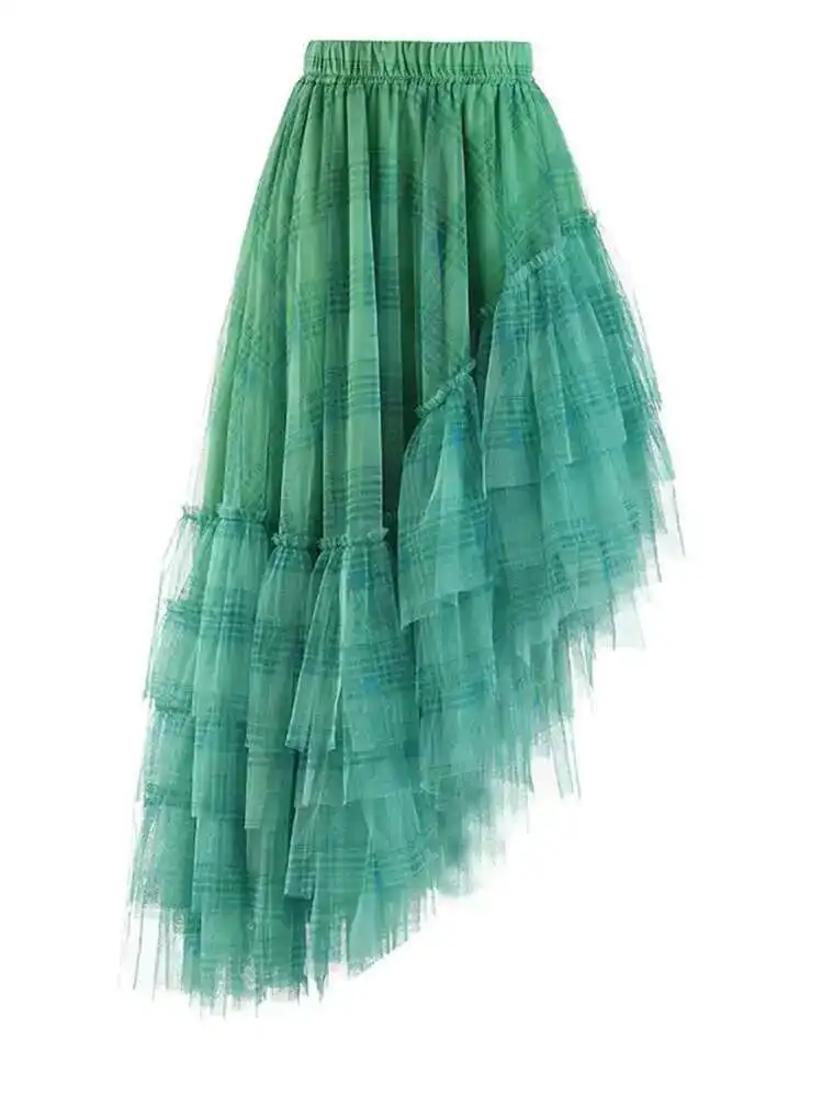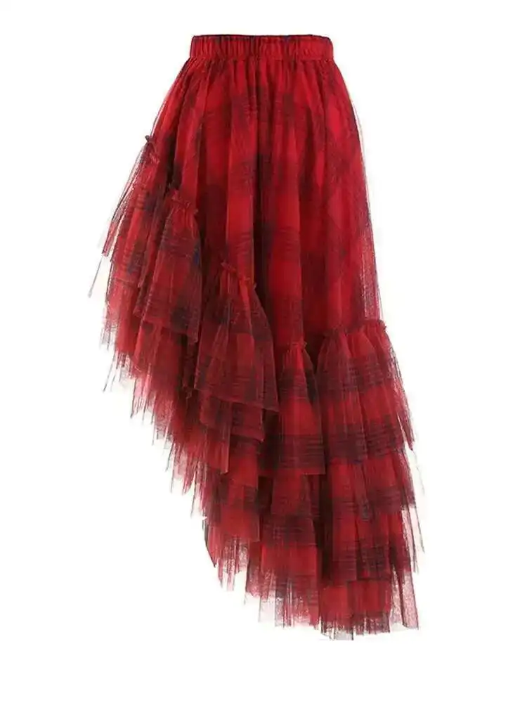 High Elastic Waist Red Plaid Mesh Irregular Long Casual Half-body Skirt Women Fashion Tide New Spring Autumn 2025 1DF1247
