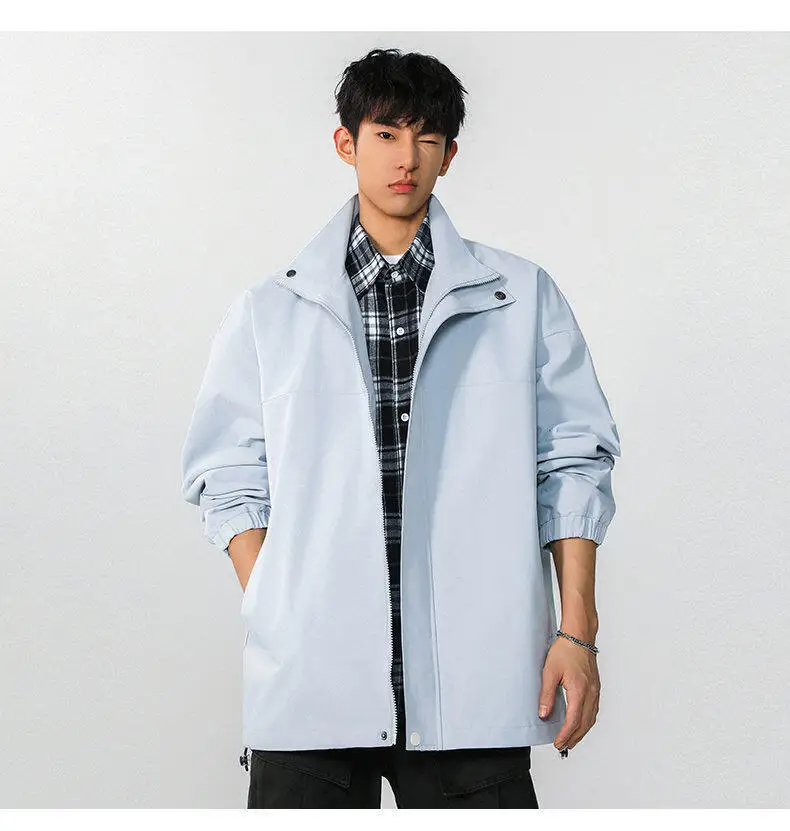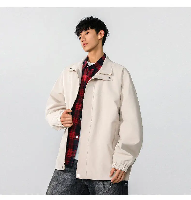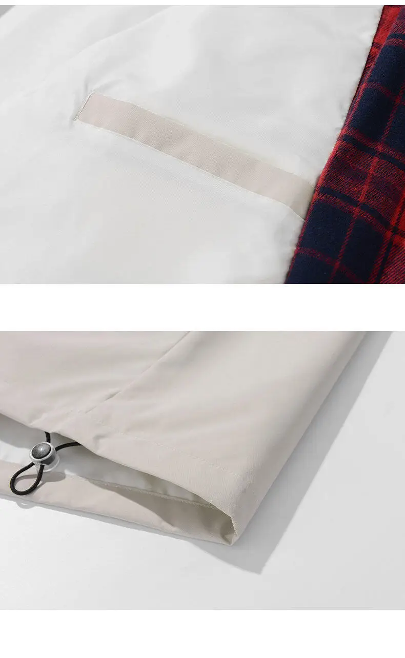 High Street Male Jacket Spring New Fake Two Pieces Lapel Plaid Design American Style Jackets Solid Color Men's Coats 9W1236