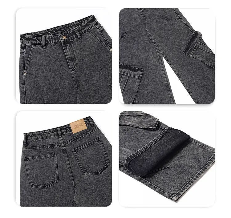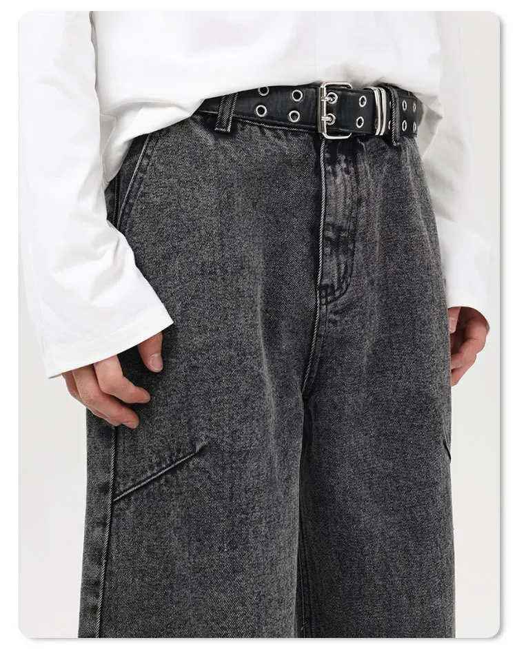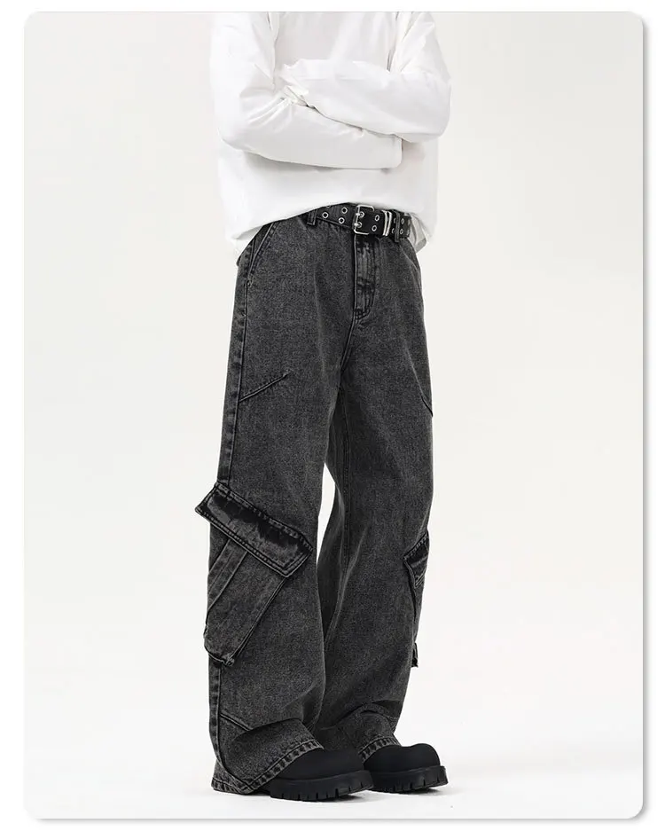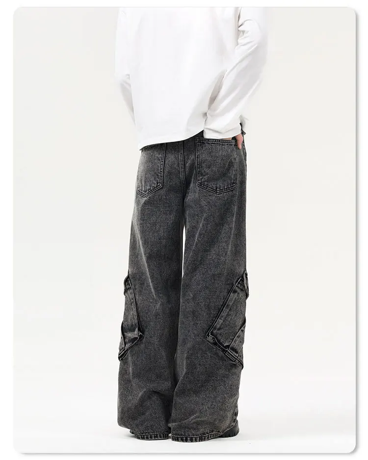 High Street Men's Jeans New American Fold Design Washed Distressed Denim Pants Wide Leg Male Trousers Personality 9W1552