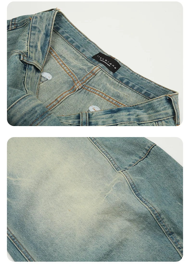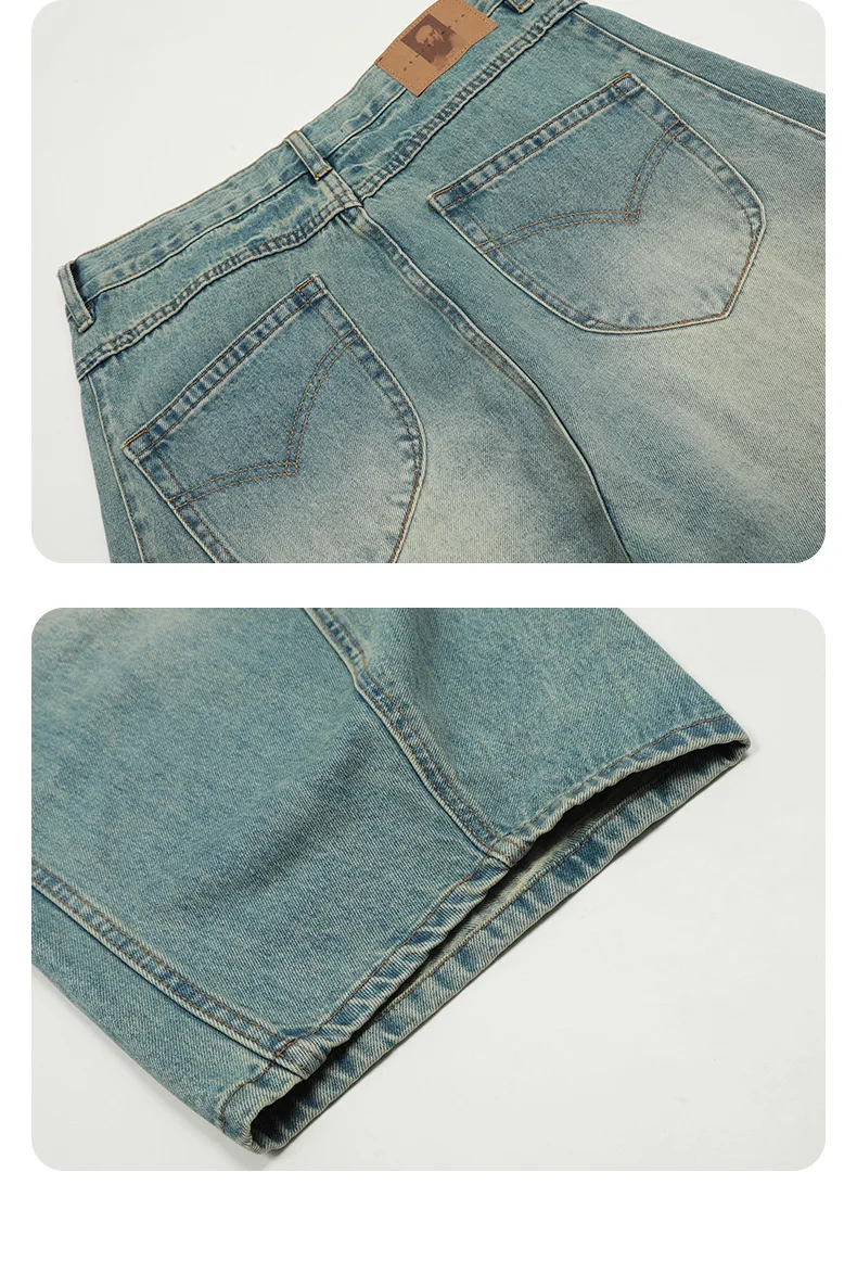 11KN Mỹ Vintage màu xanh rộng rãi chân cong quần jean cho nam giới và phụ nữ đường phố phong trào thương hiệu chuối dài quần qua biên giới