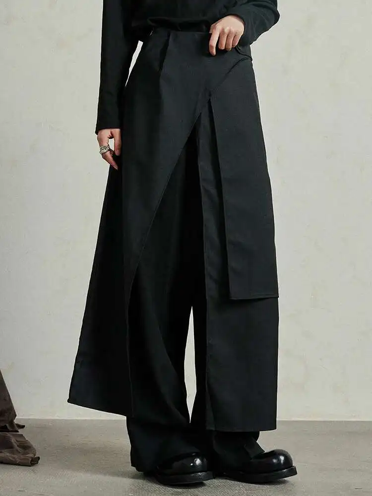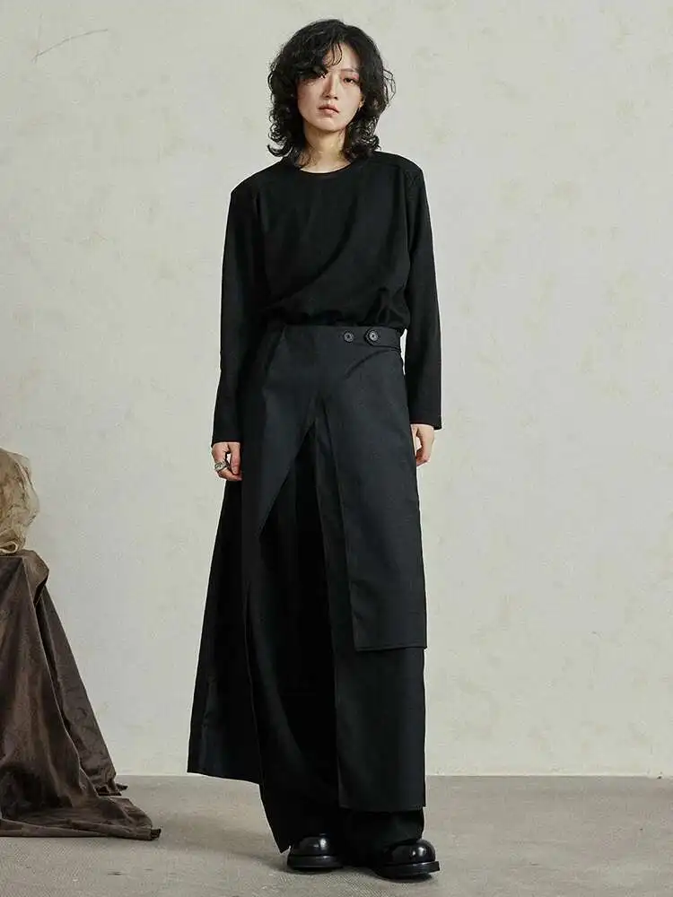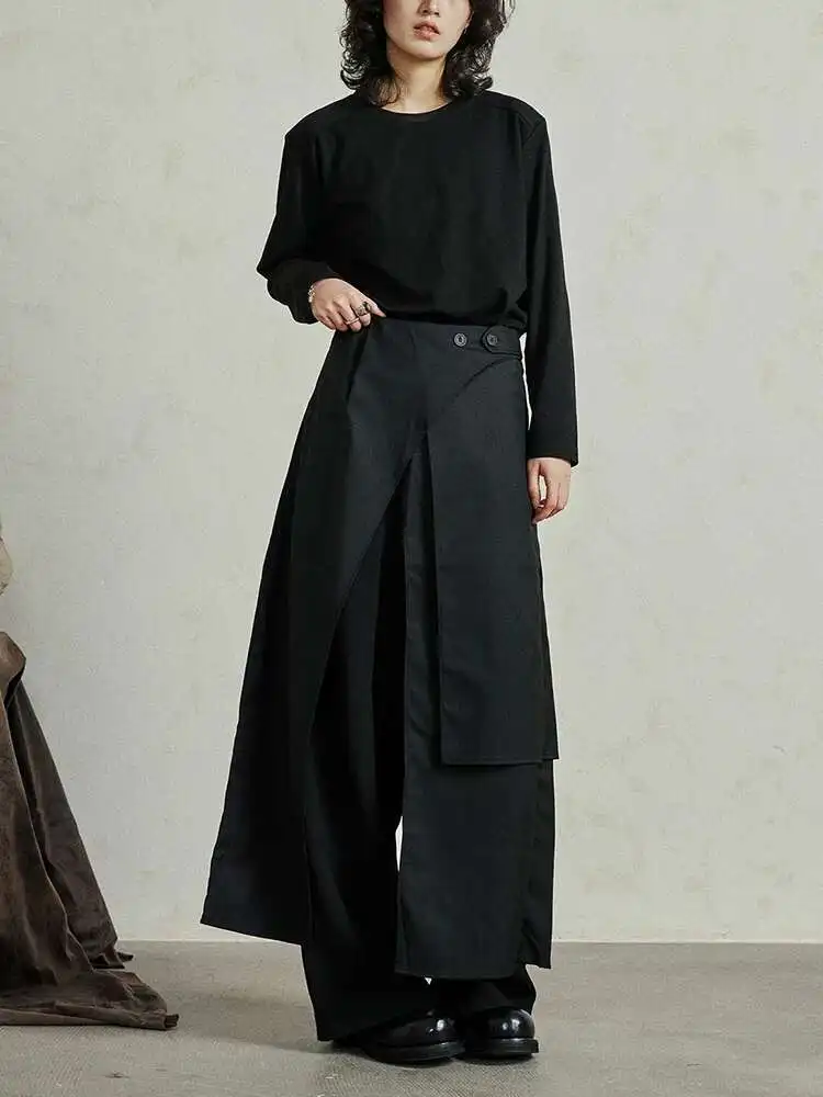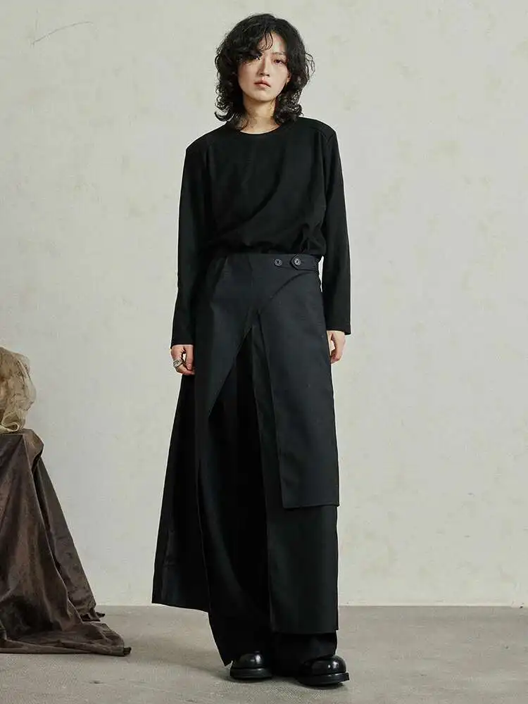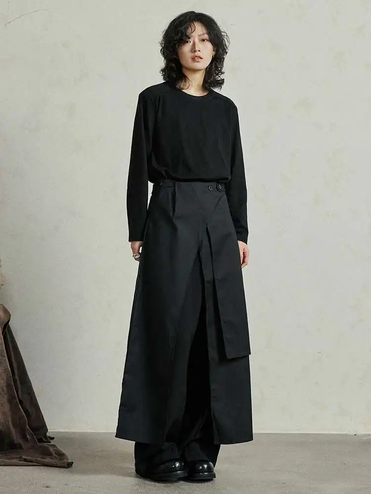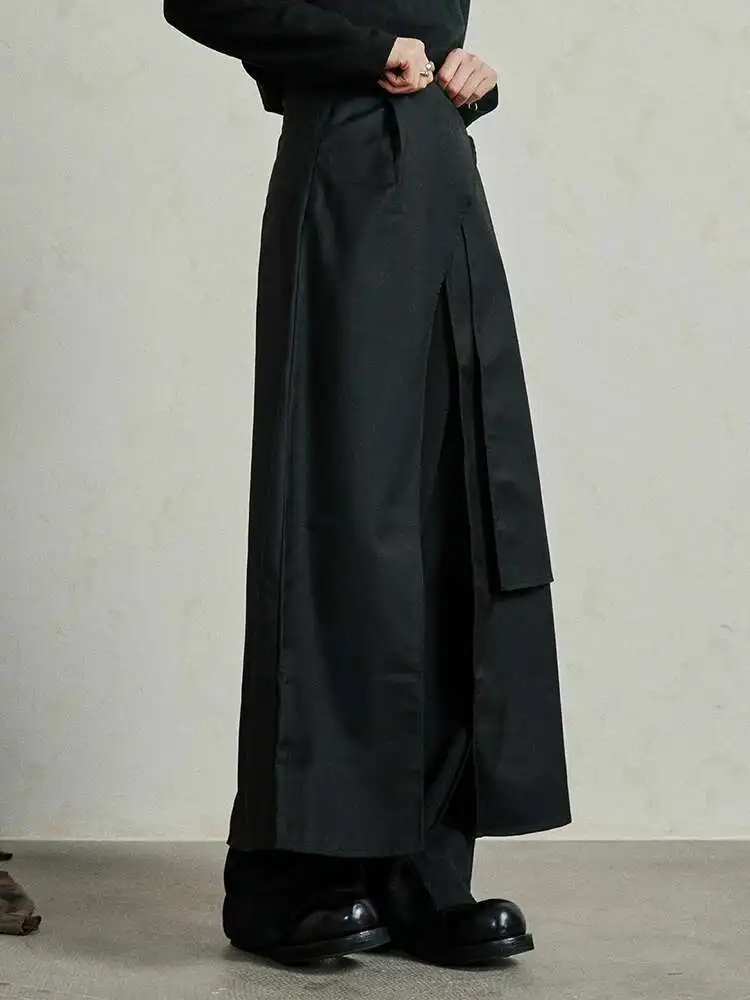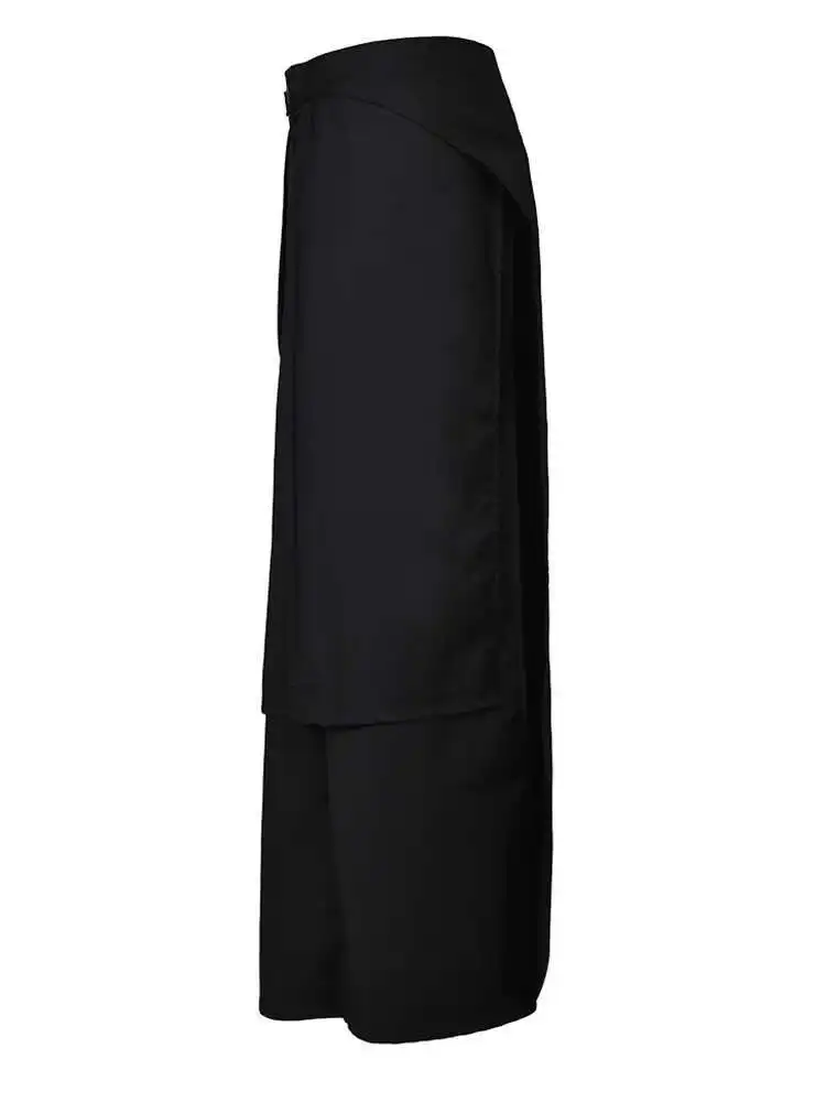 High Waist Black Irregular Slit Hem Layers Spliced Long Half-body Skirt Women Fashion Tide New Spring Autumn 2025 1DF8244