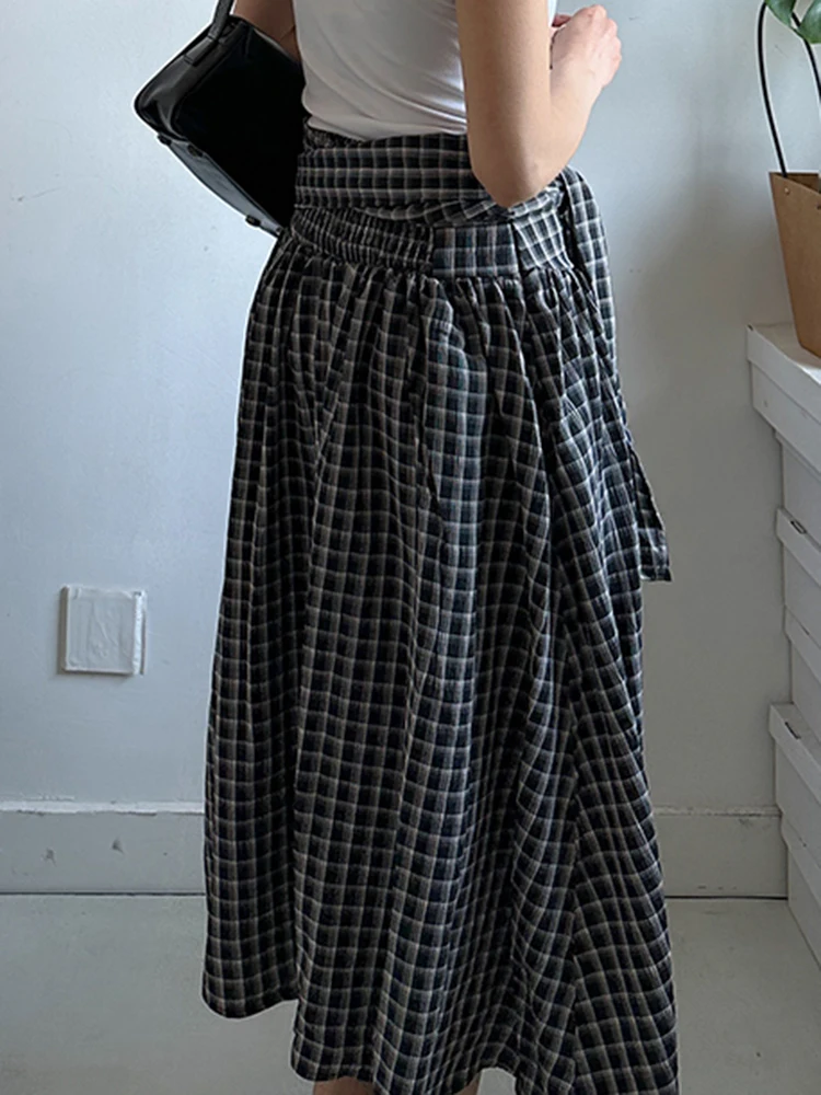 High Waist Black Plaid Bandage Side Zipper A-line Half-body Skirt Women Fashion Tide New Spring Autumn 2025 1DJ1178