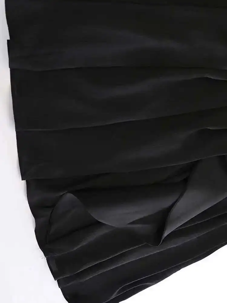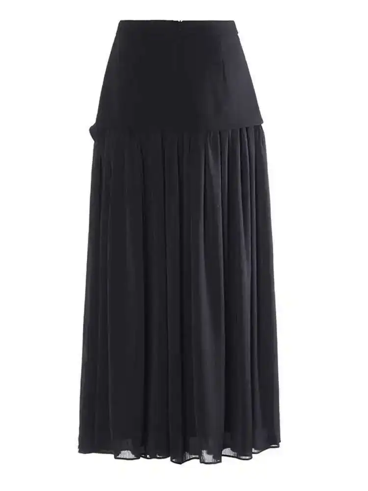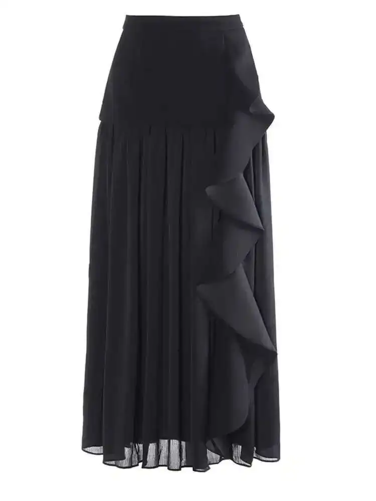 High Waist Black Ruffles Chiffon Spliced A-line Elegant Half-body Skirt Women Fashion Tide New Spring Autumn 2025 1DJ0111