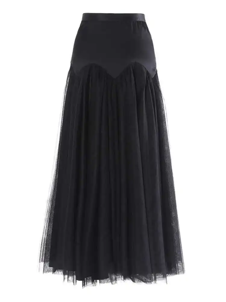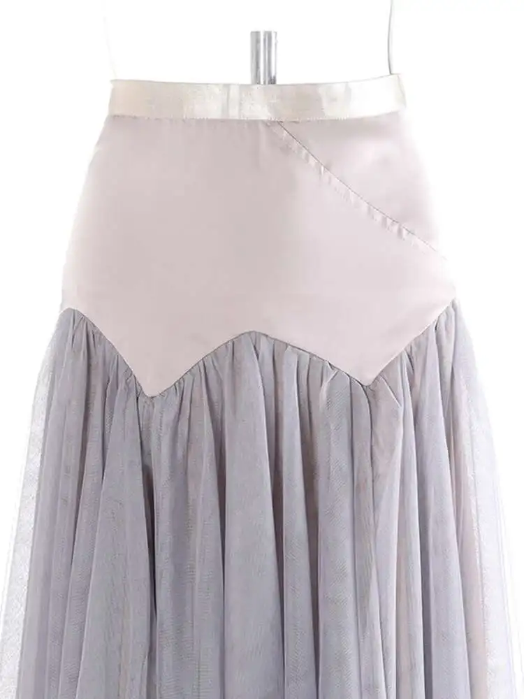 High Waist Gray Mesh Color-block Spliced Elegant A-line Half-body Skirt Women Fashion Tide New Spring Autumn 2025 1DH9838