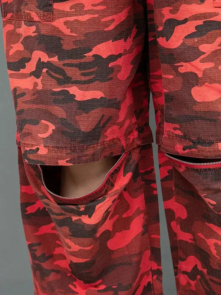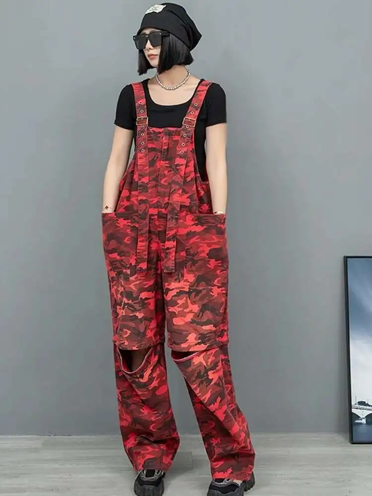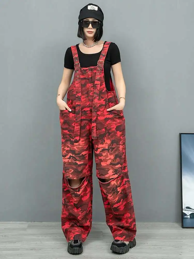 High Waist Red Camouflage Big Size Long Overalls Wide Leg Jeans New Women Trousers Fashion Tide Spring Autumn 2025 1DH9905