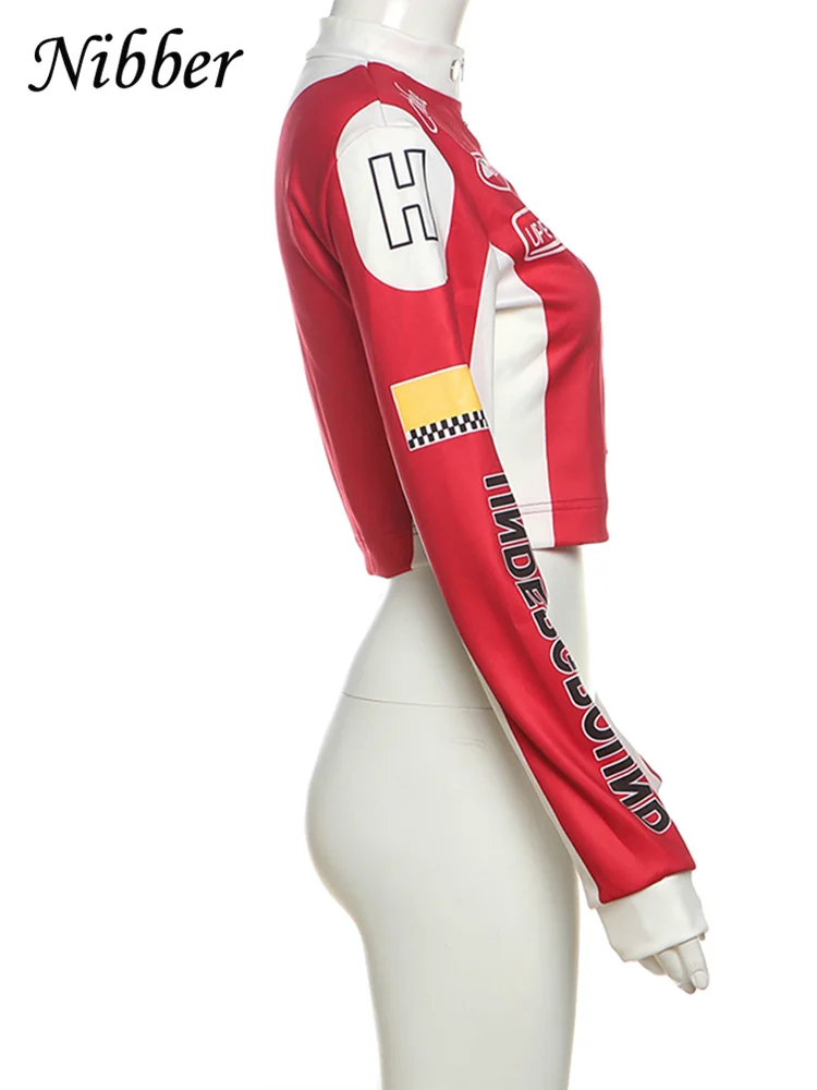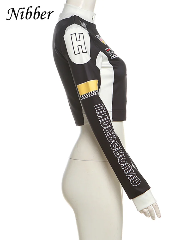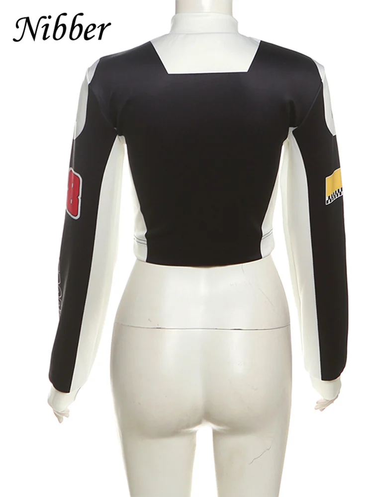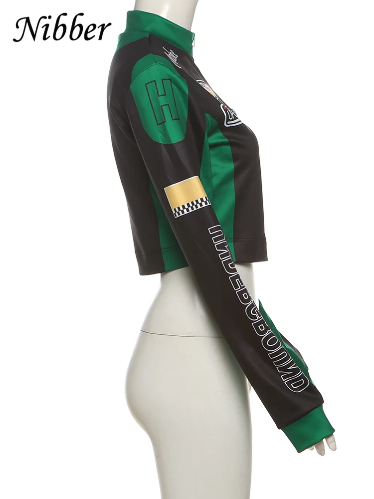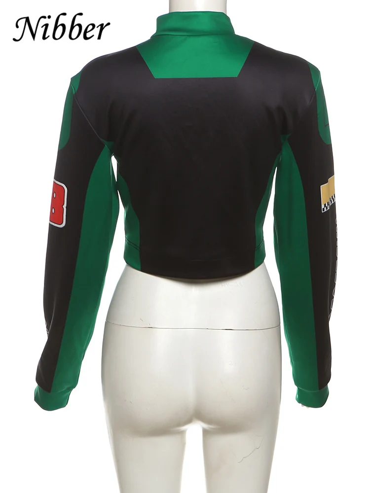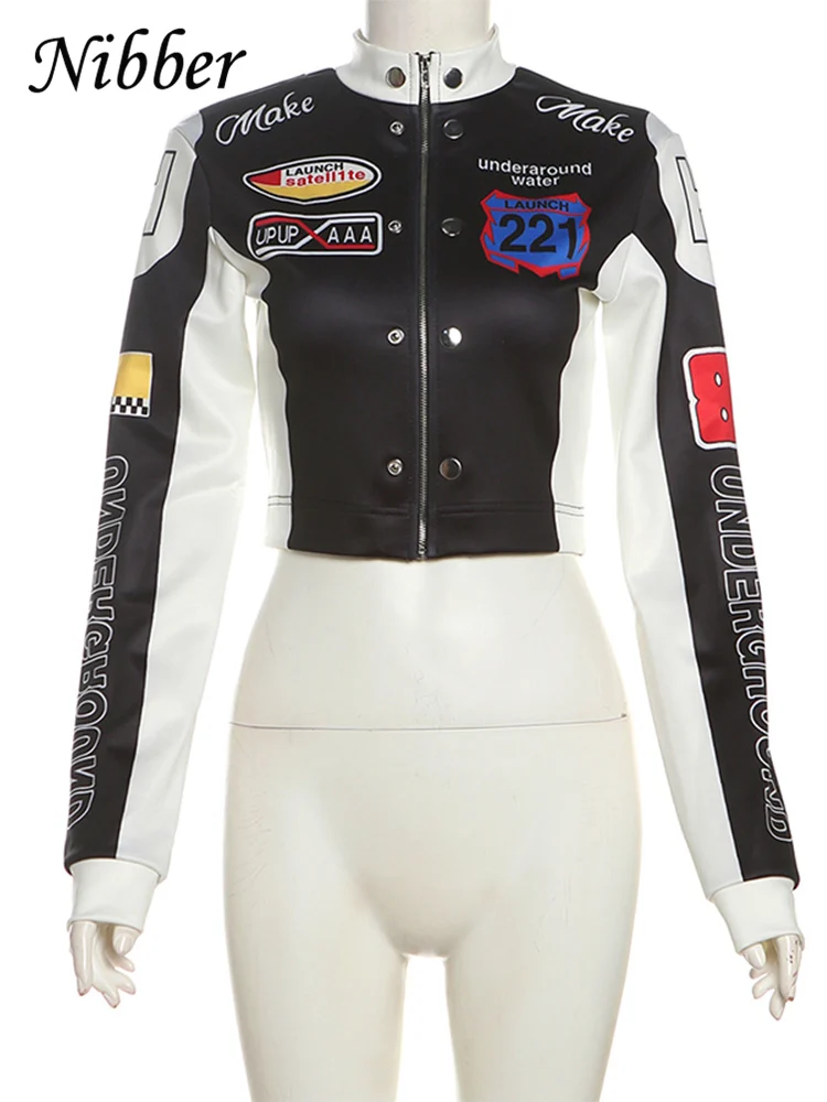 Hipster Patchwork Jacket Women Y2K Letter Print Hipster Uniform Street Single-Breasted Hipster Autumn Trend Zip Coats