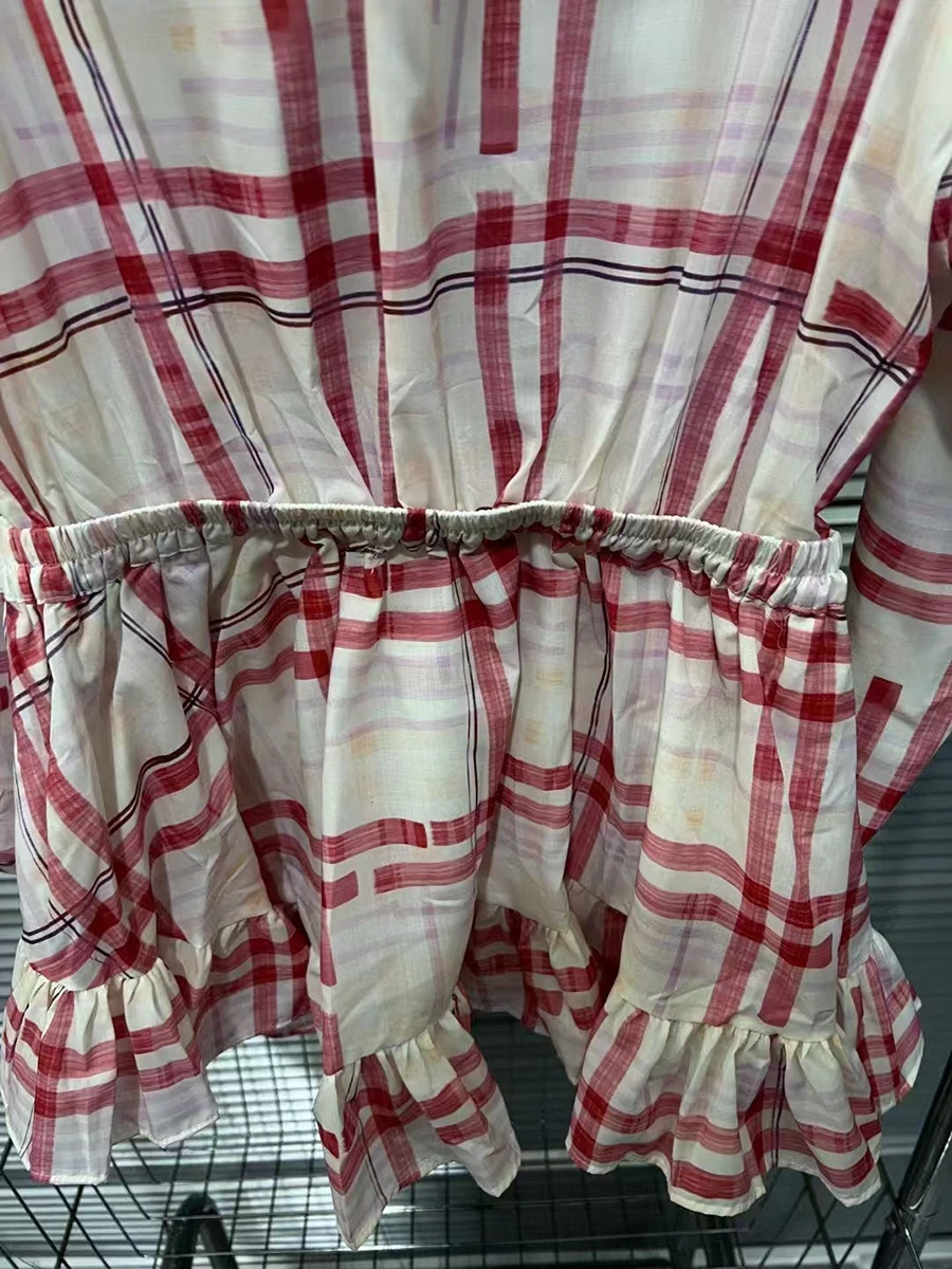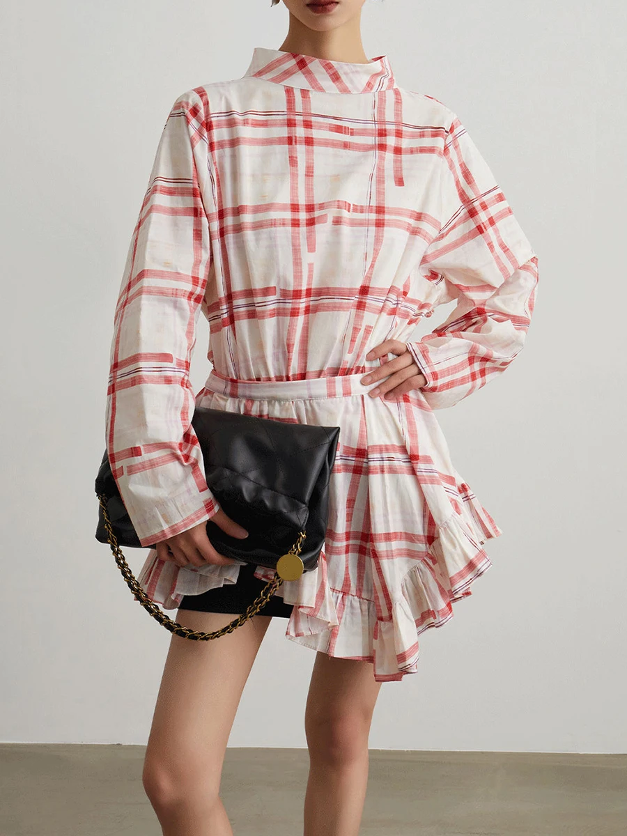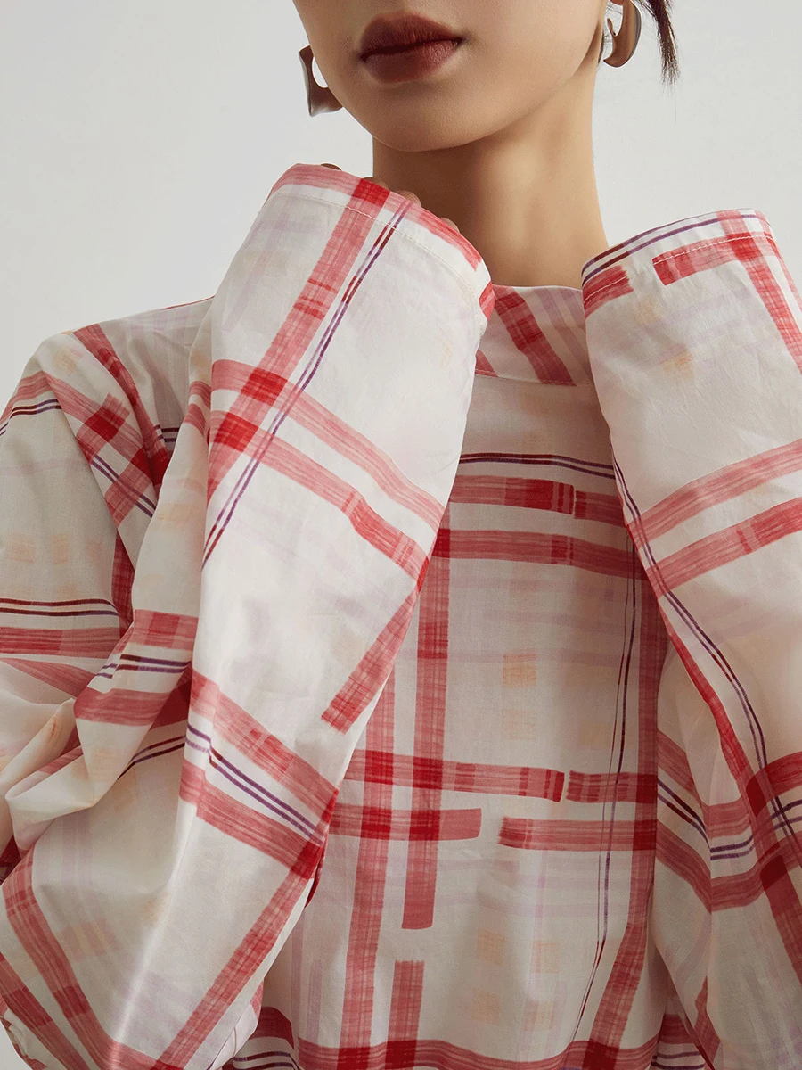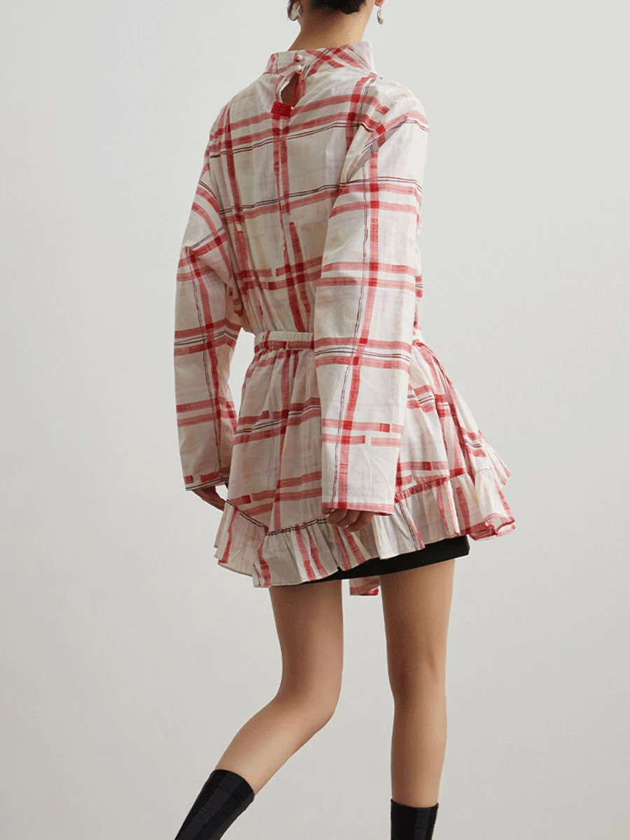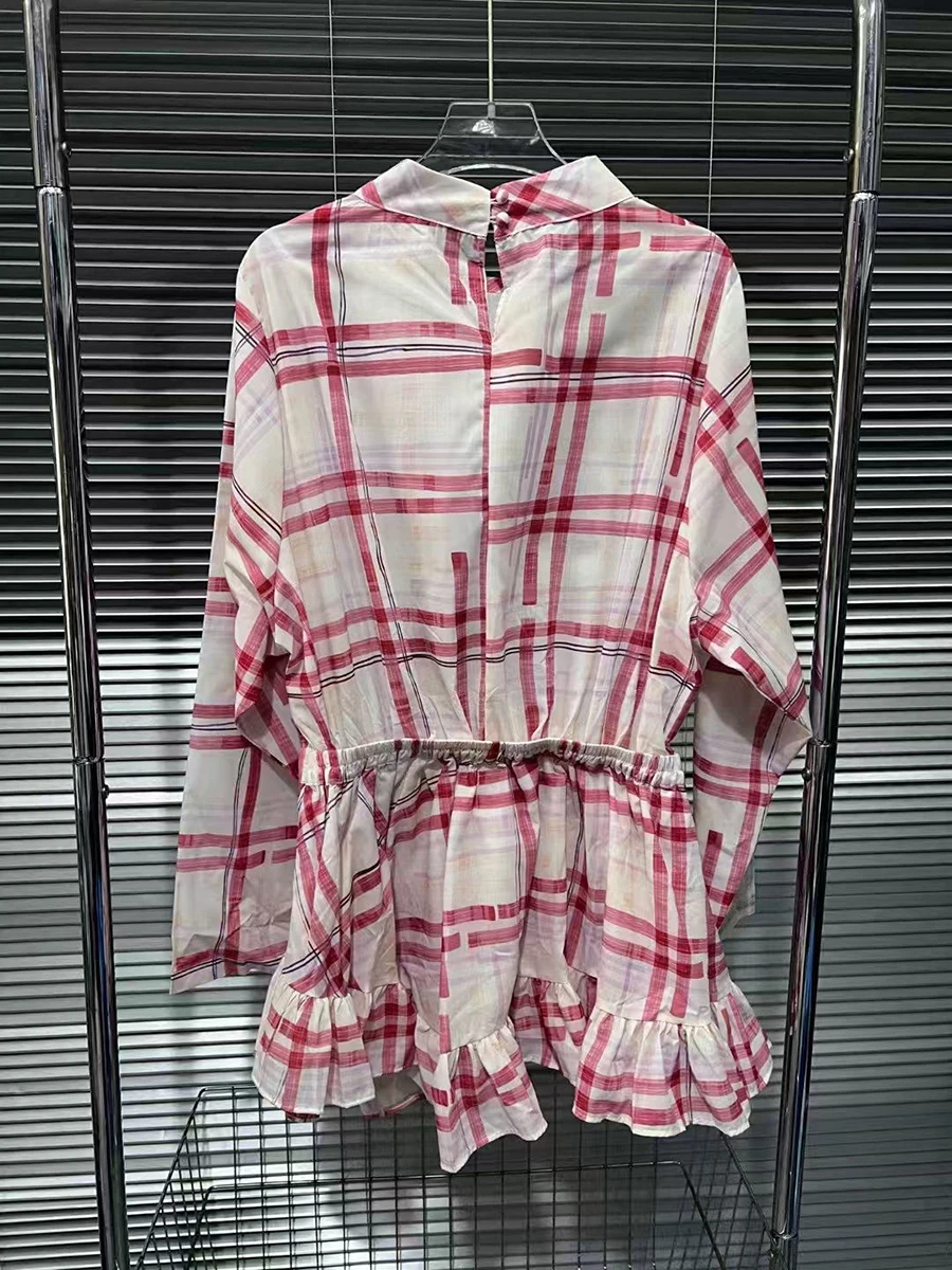 Hit Color Check Loose Dresses For Women O Neck Long Sleeve High Waist Temperament Mini Dress Female Fashion Style