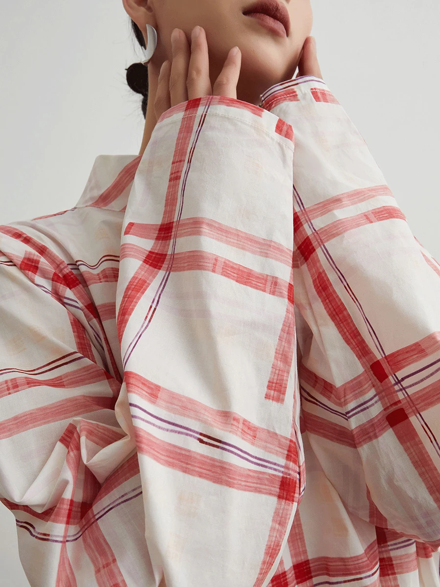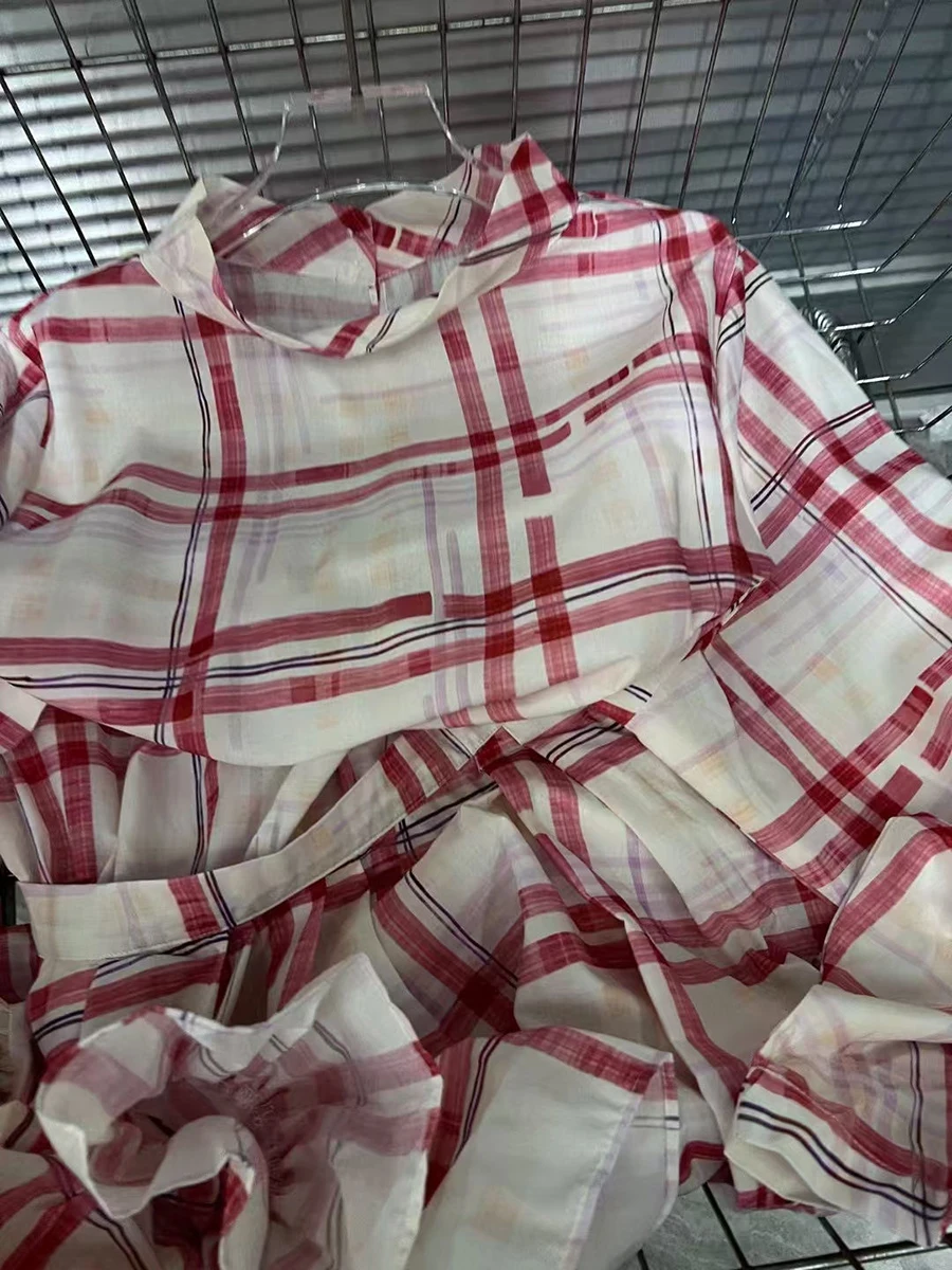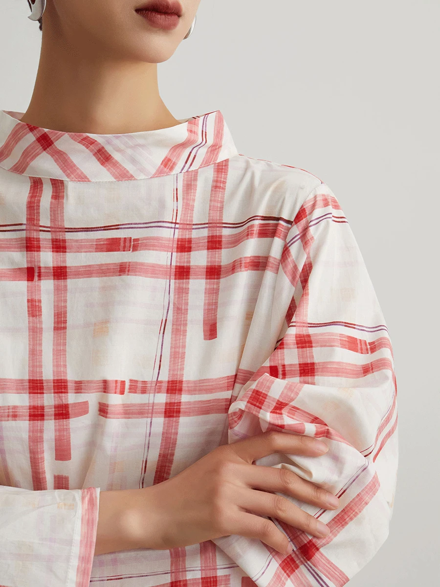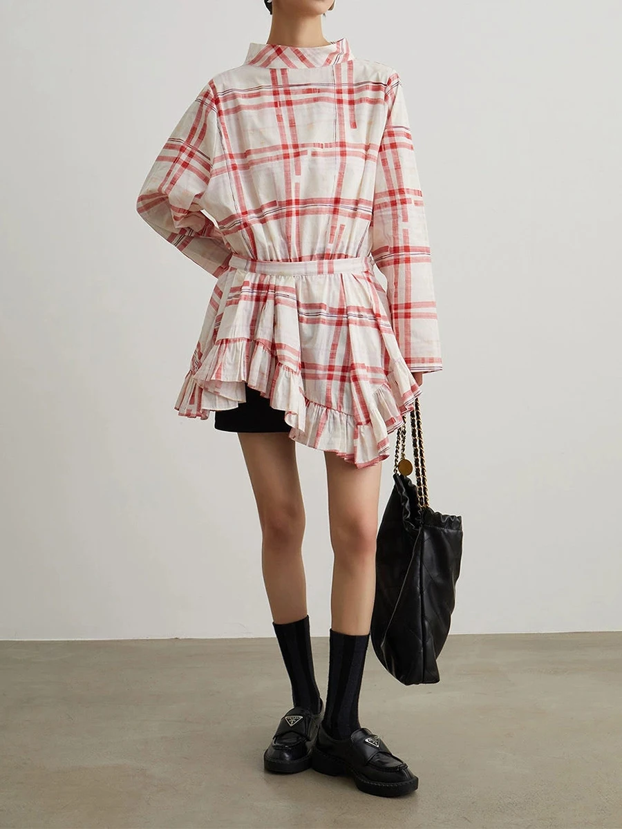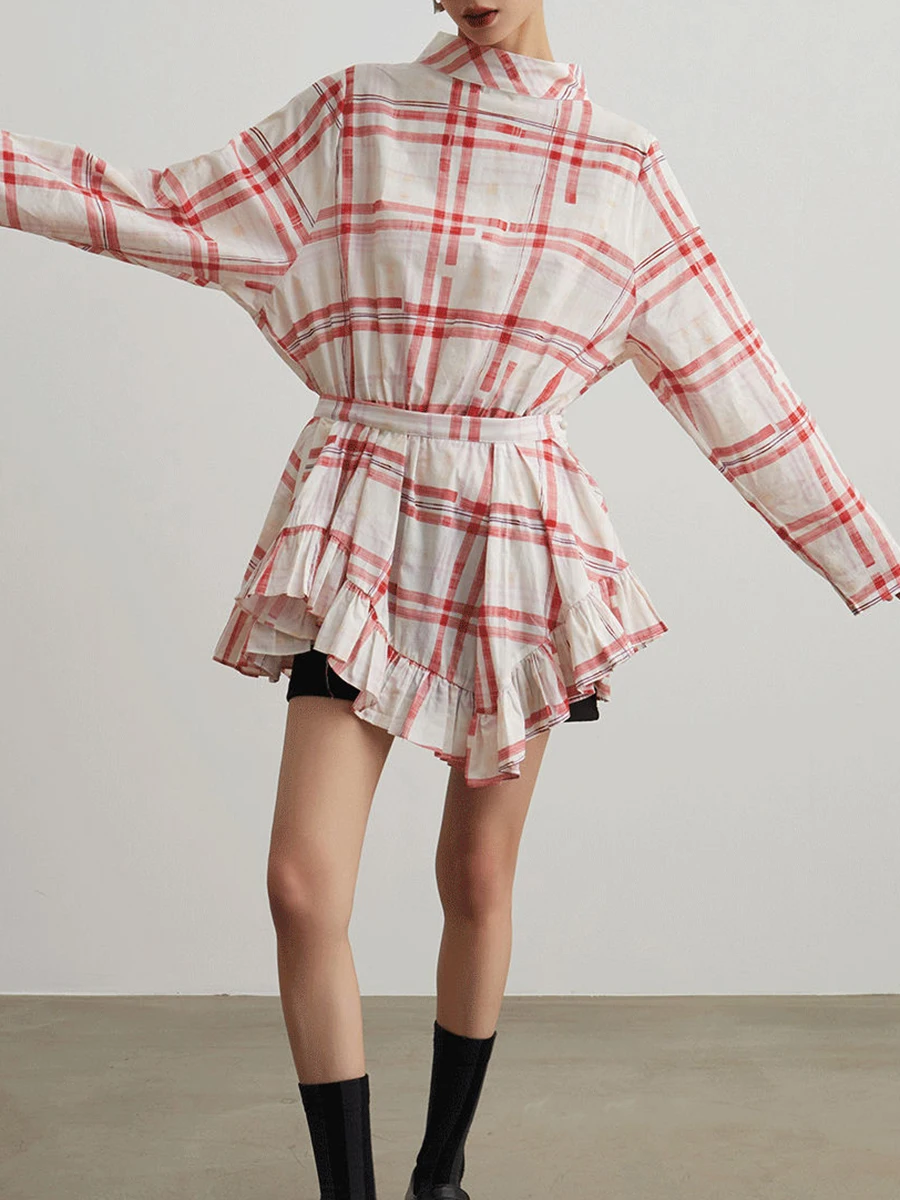 Hit Color Check Loose Dresses For Women O Neck Long Sleeve High Waist Temperament Mini Dress Female Fashion Style
