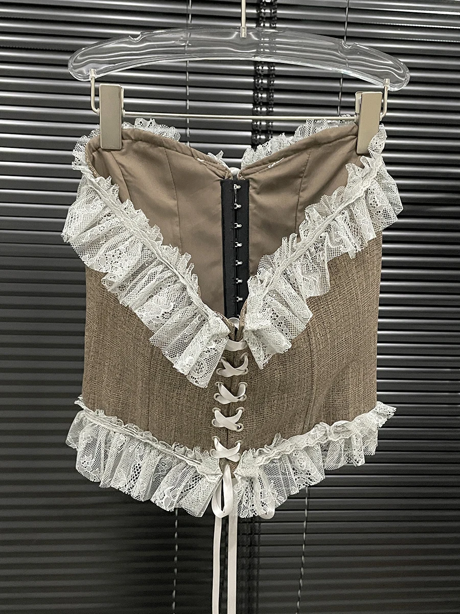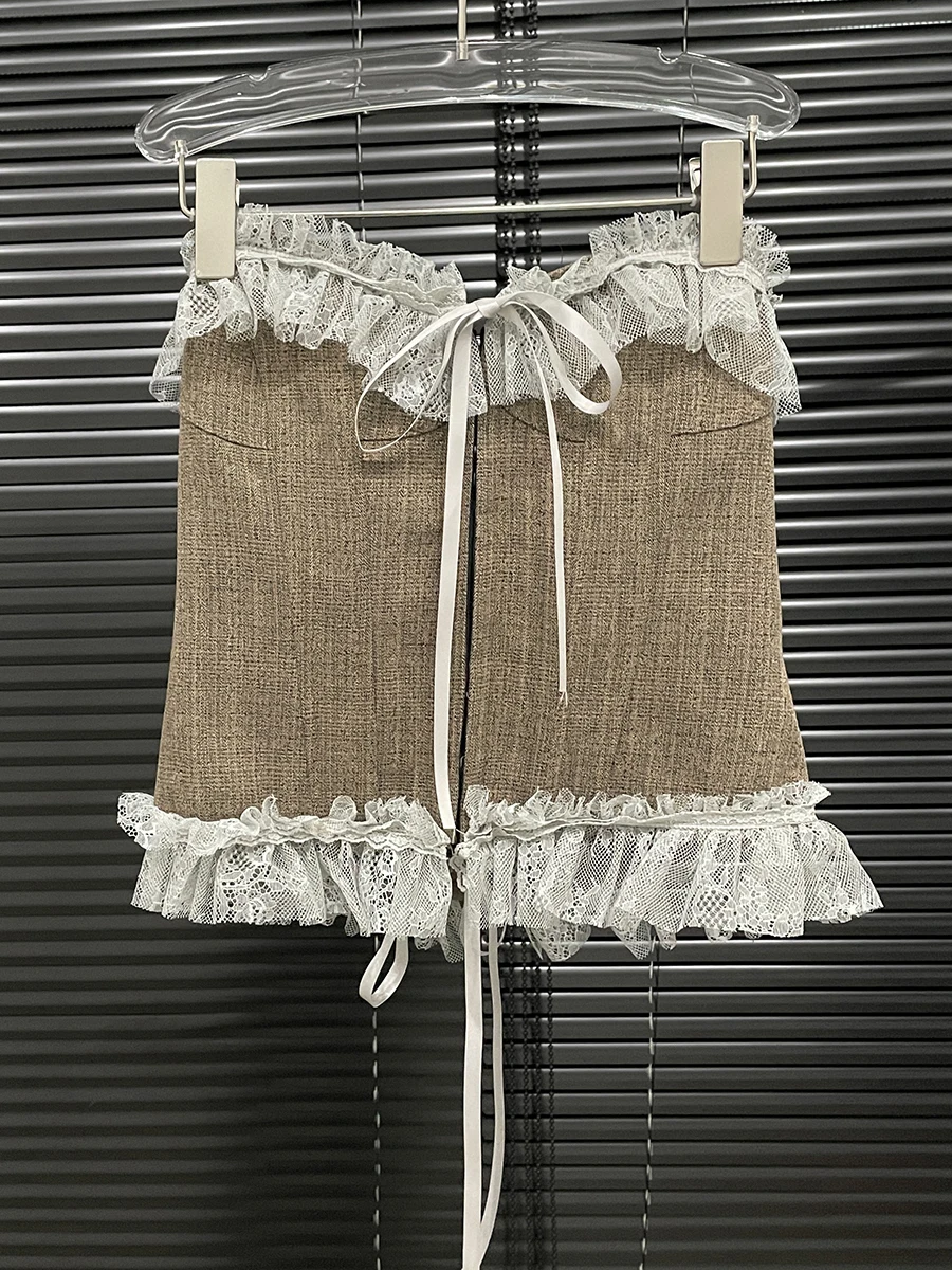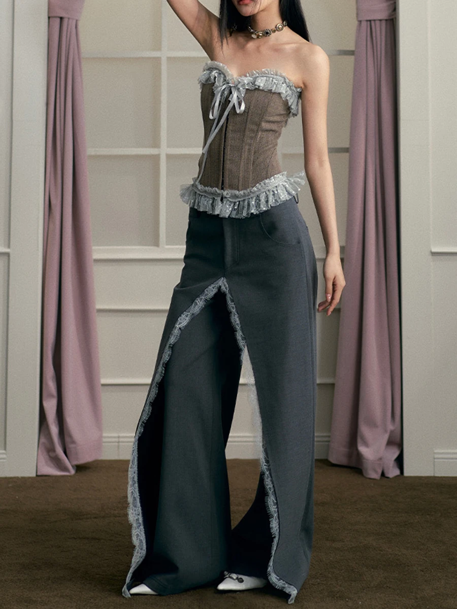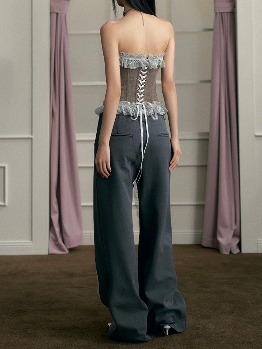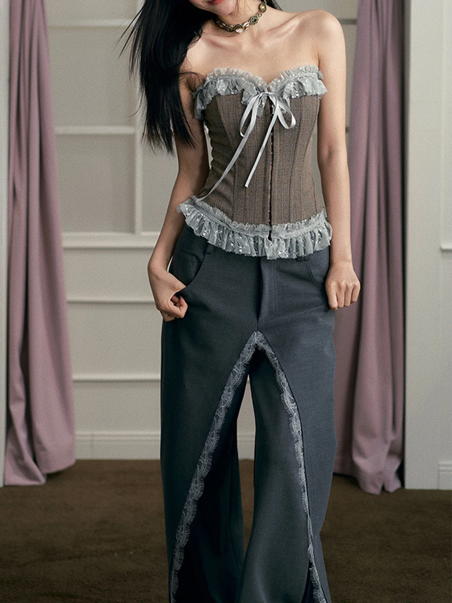 Hit Color Chic Two Piece Set For Women Strapless Sleeveless Vest High Waist Designer Pant Slimming Sets Female New