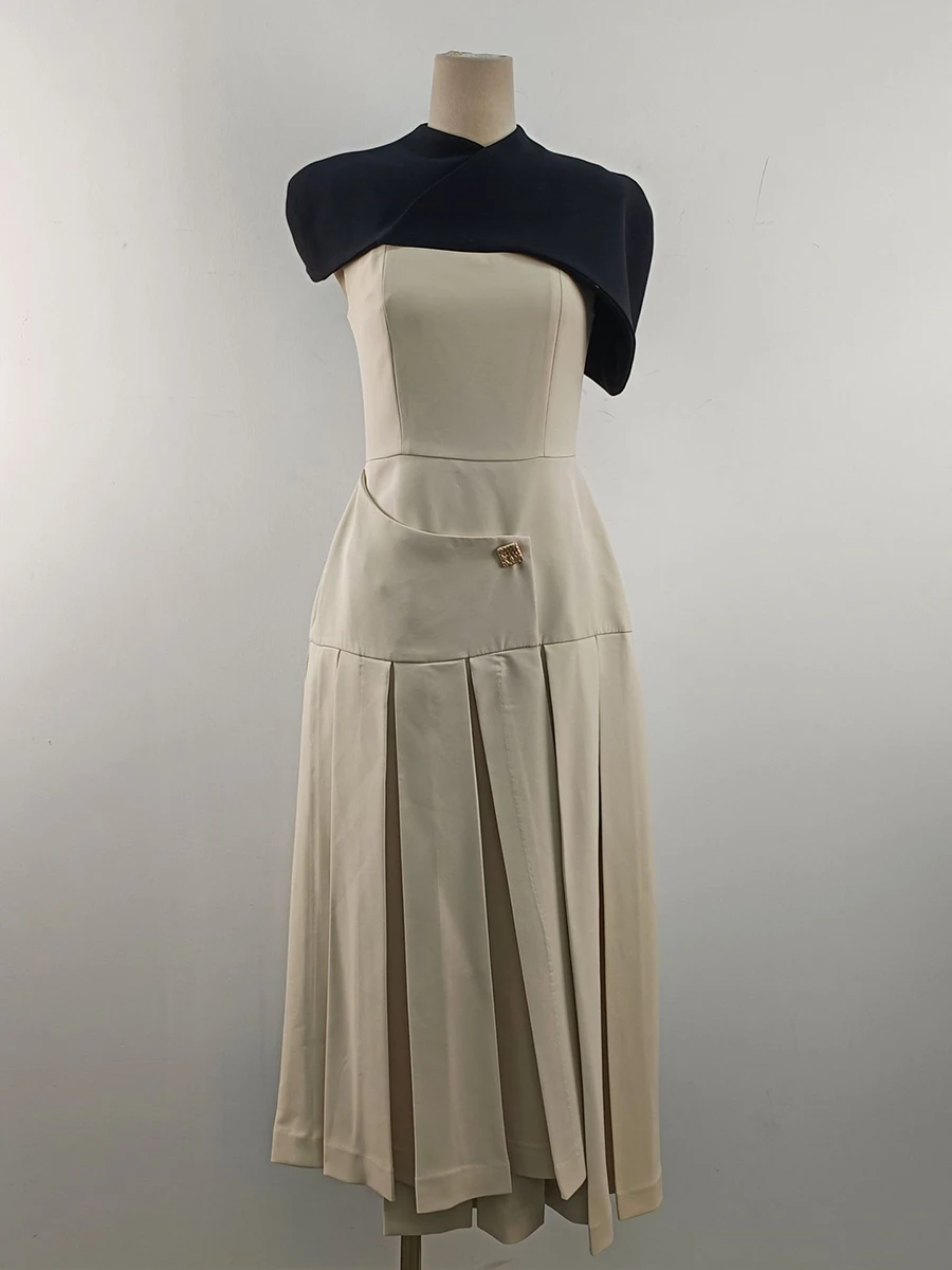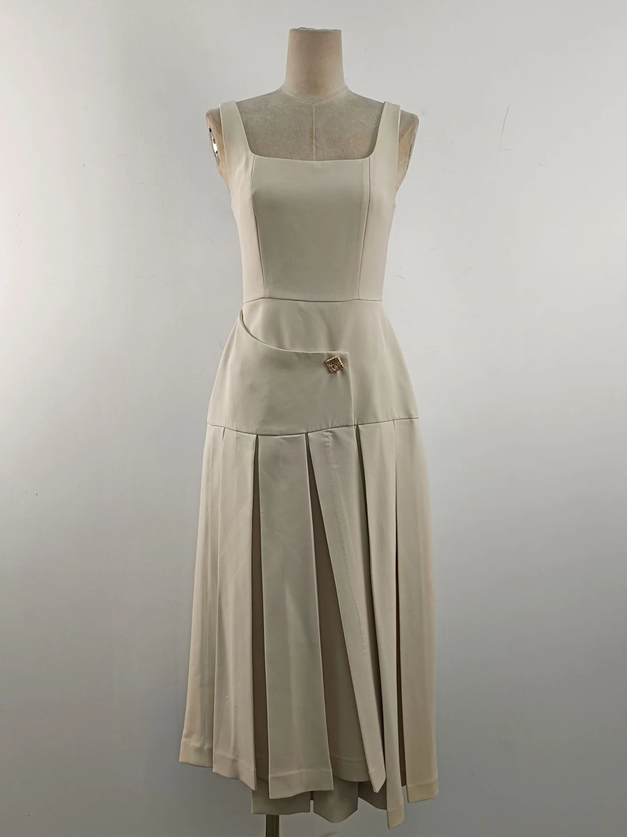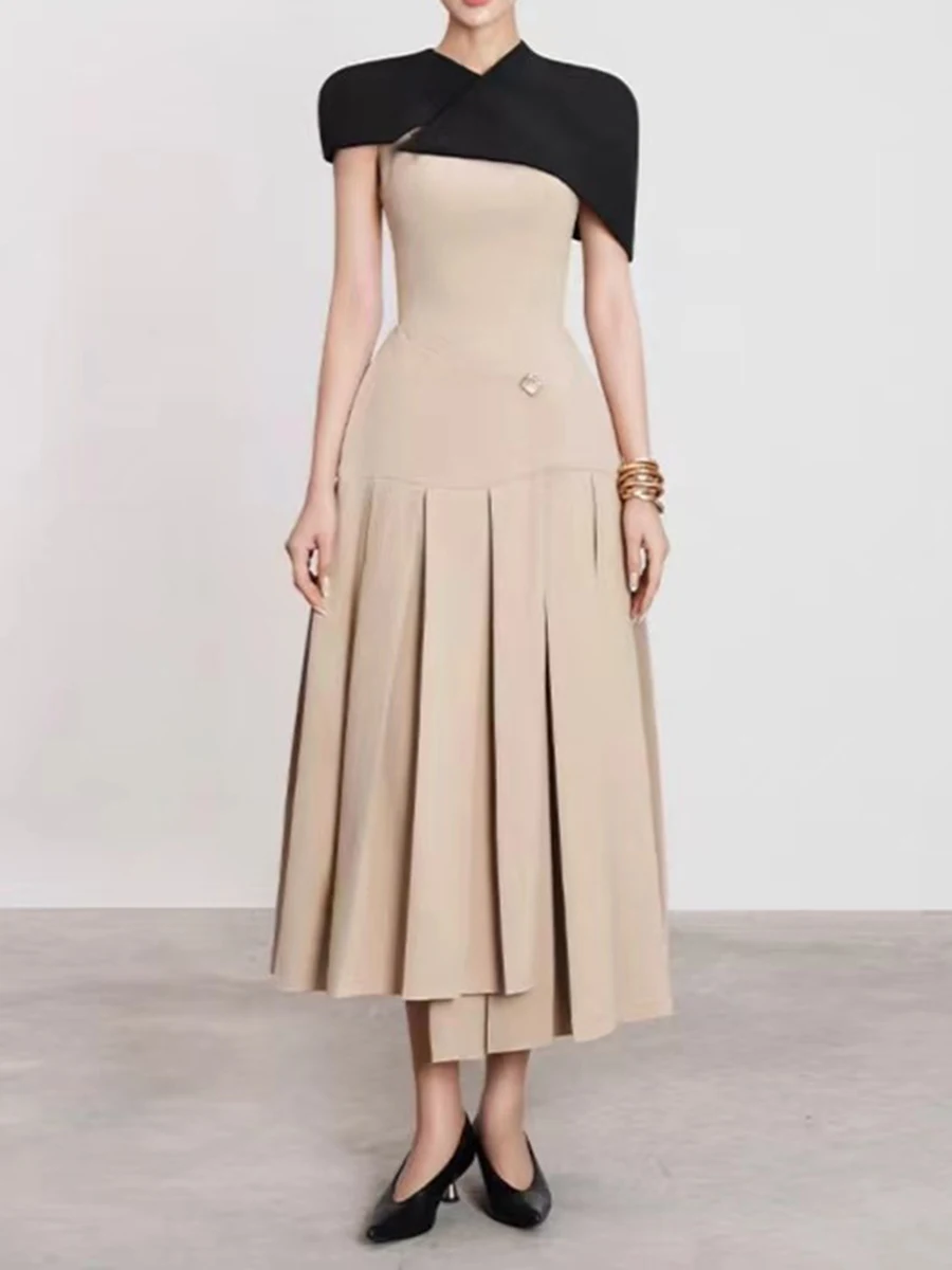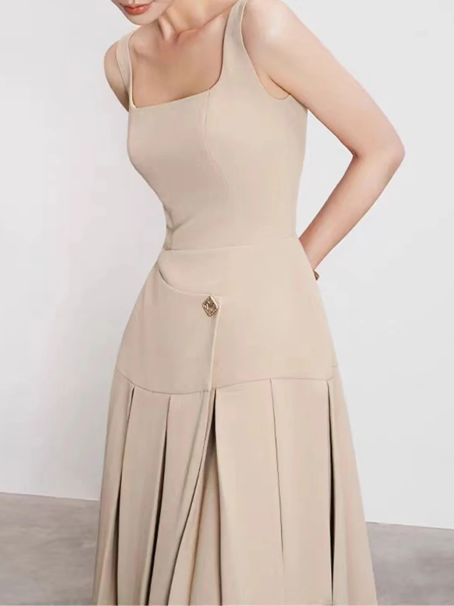 Hit Color Elegant Removable Dress For Women Square Collar Sleeveless High Waist Slimming Dress Female Fashion New