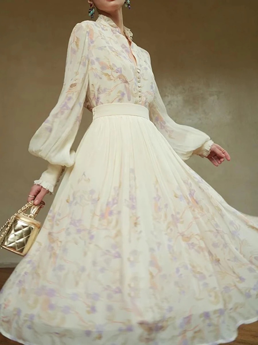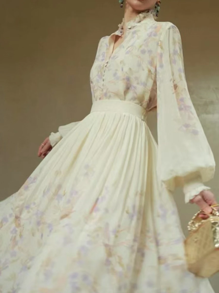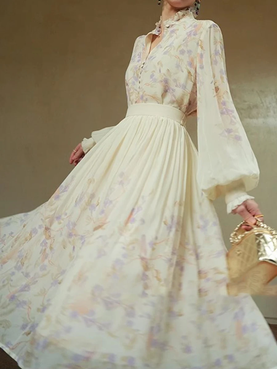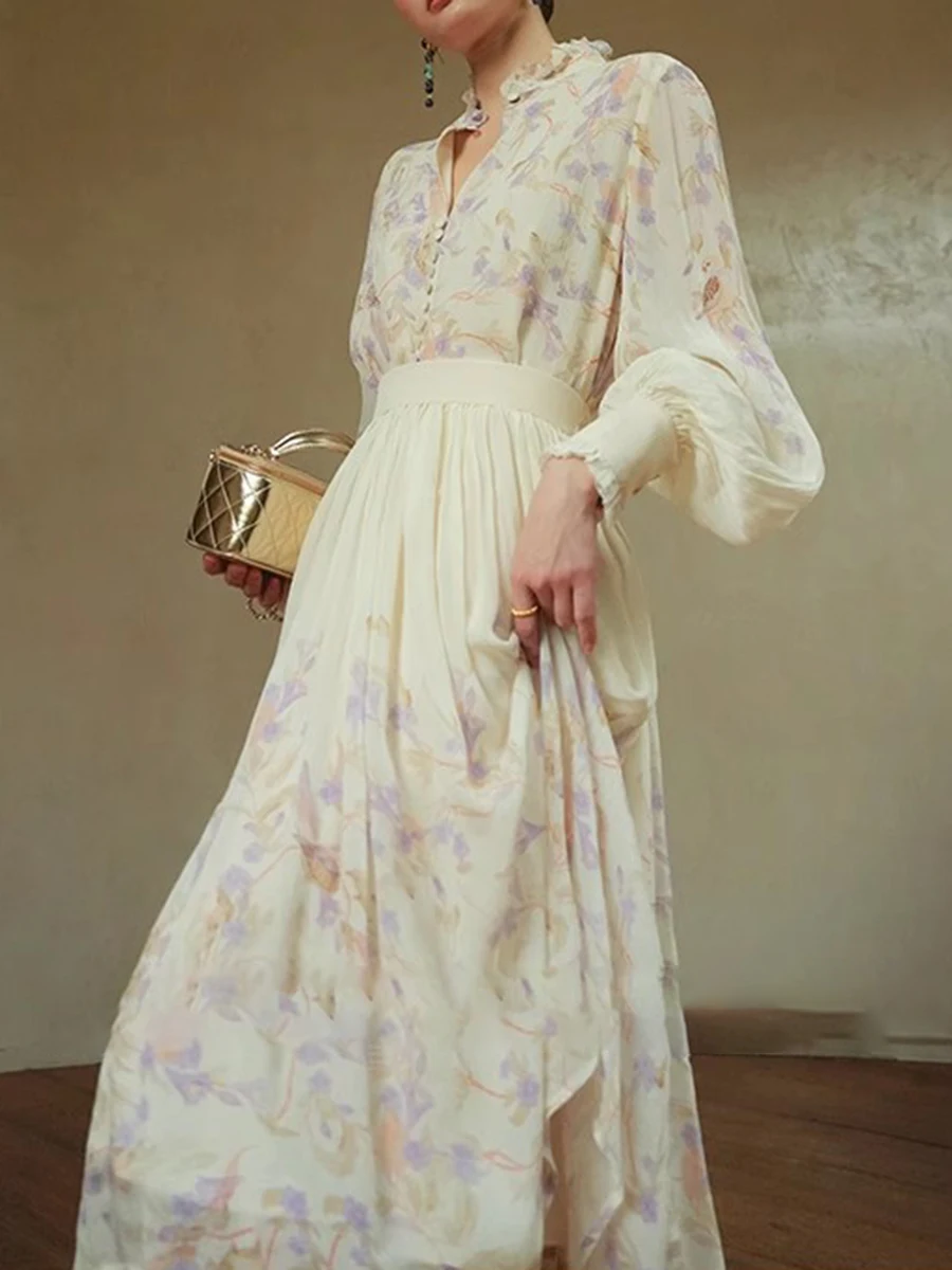 Hit Color Loose Dresses For Women V Neck Long Sleeve High Waist Temperament Dress Female Fashion Style Clothes New