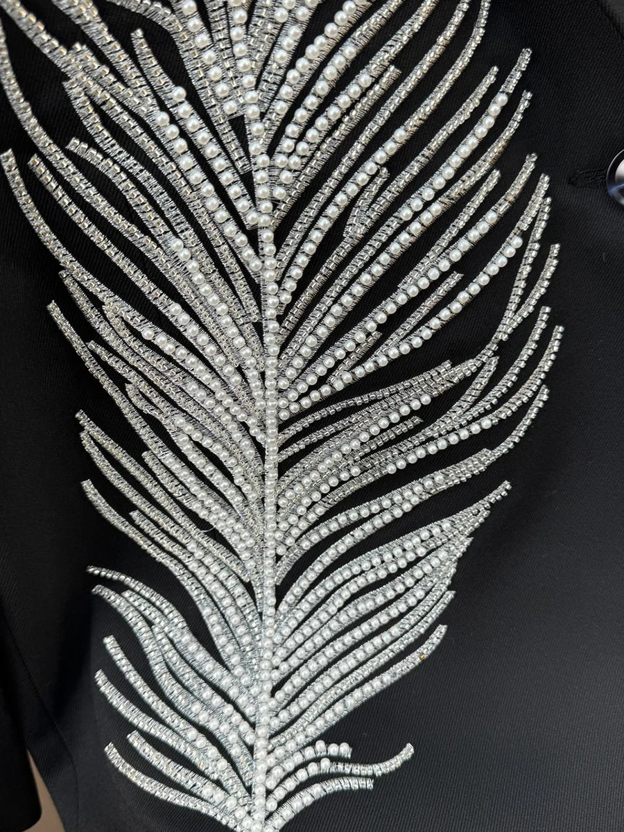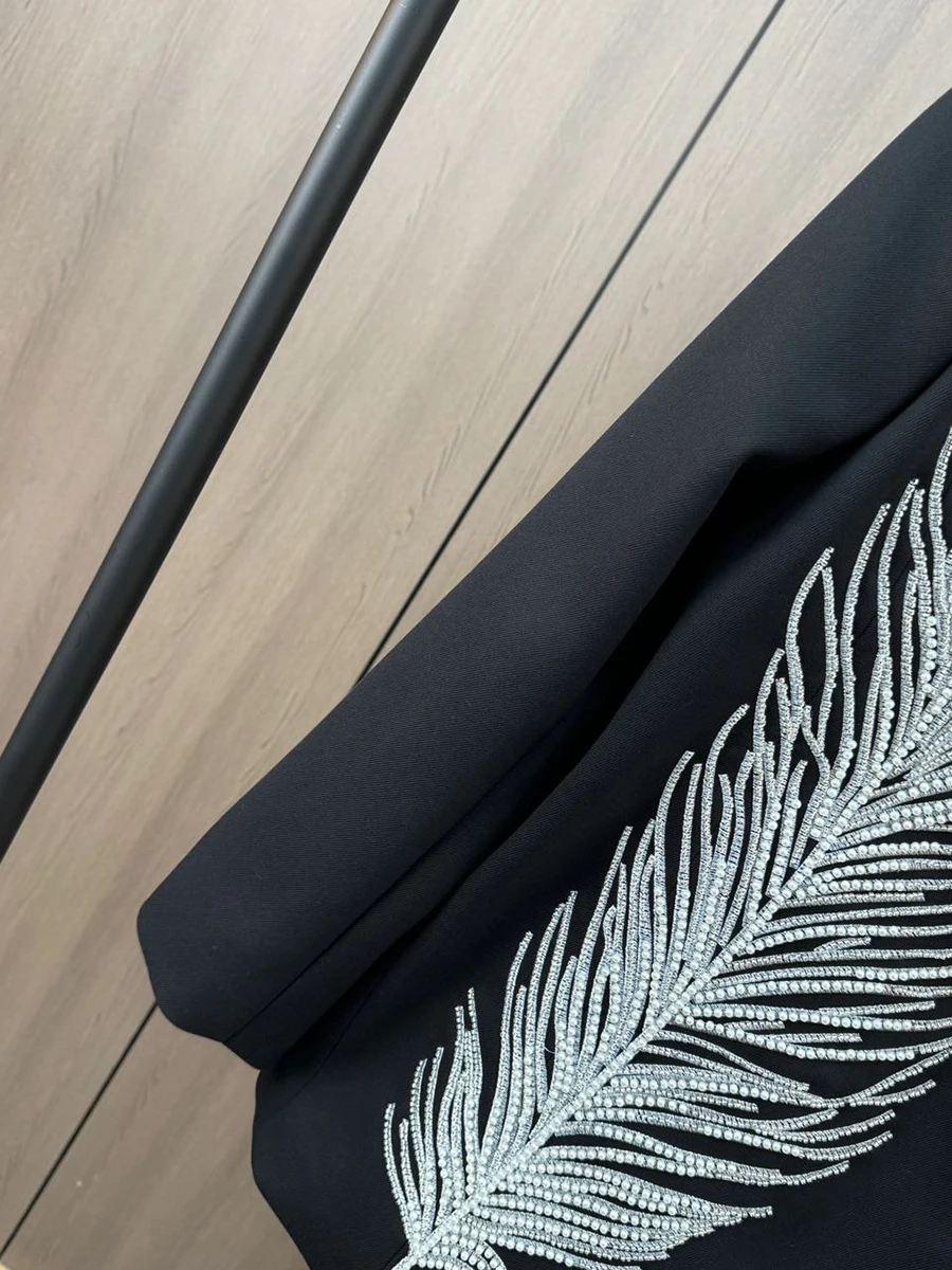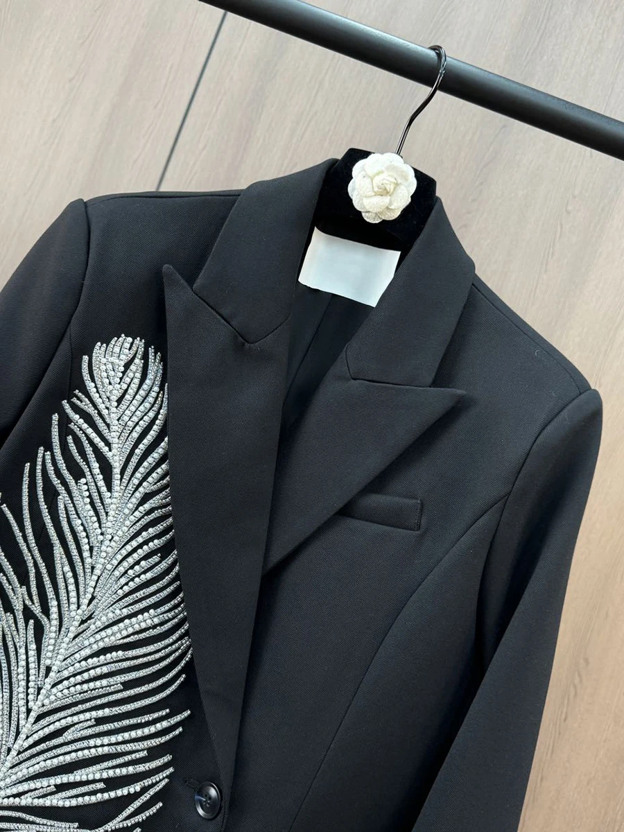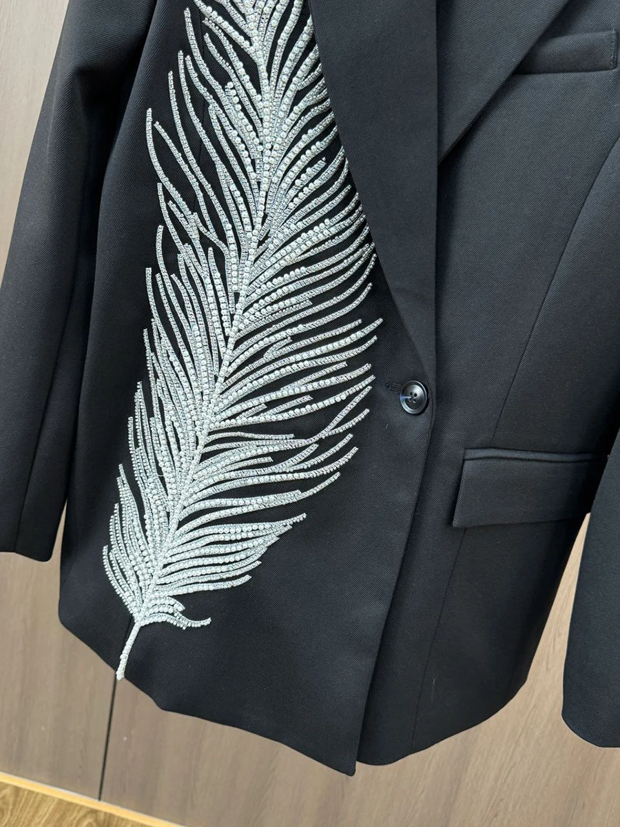 Hit Color Patchwork Feather Chic Blazer For Women Notched Long Sleeve Spliced Pockets Elegant Coats Female Fashion