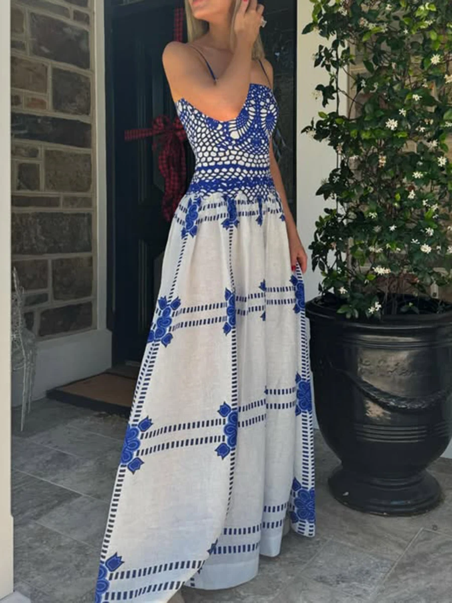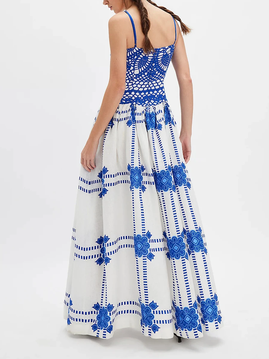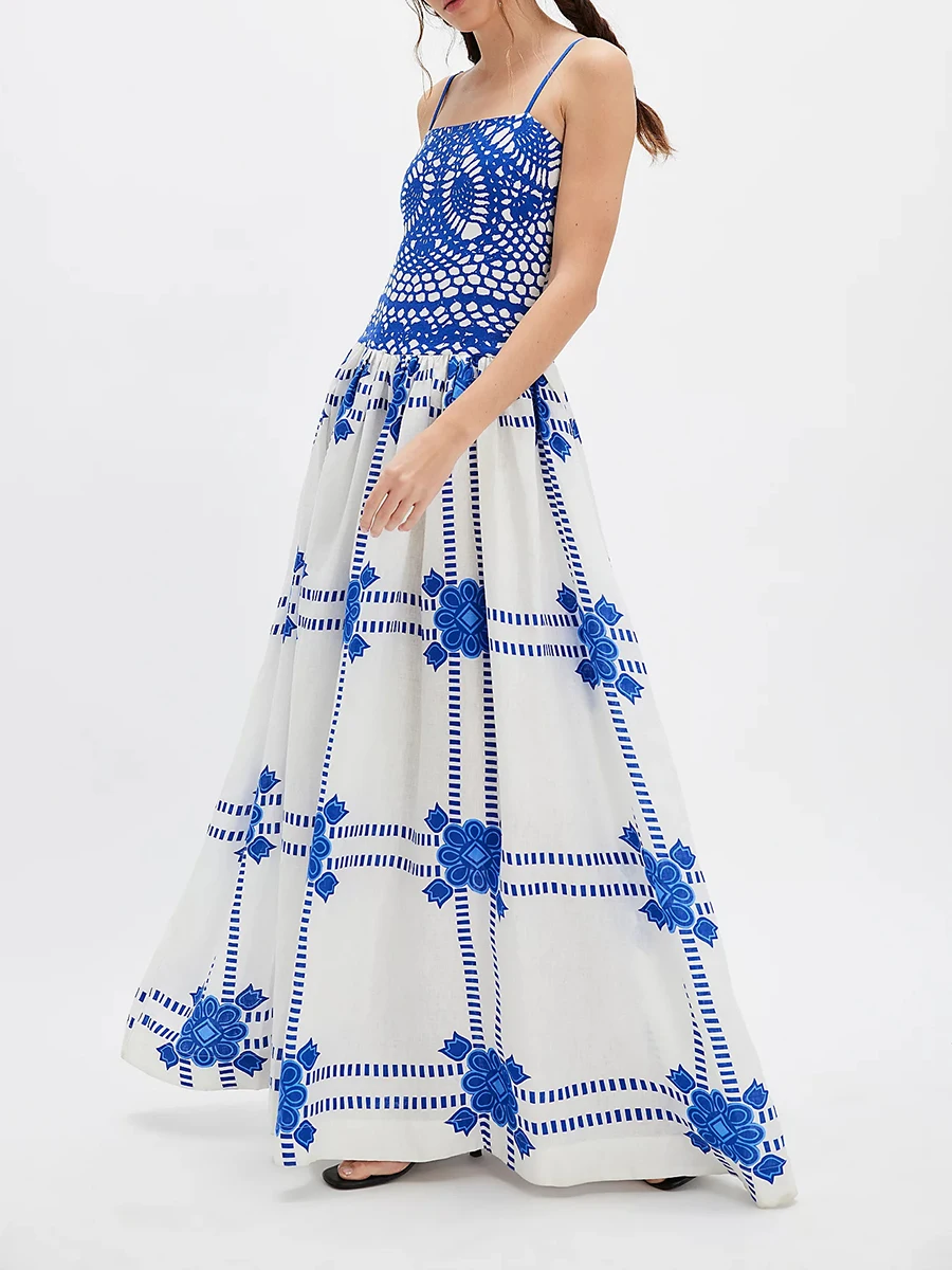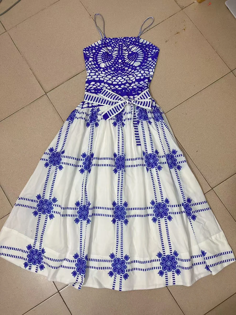 Hit Color Printing Slimming Dresses For Women Square Neck Sleeveless High Waist Temperament Long Dress Female New