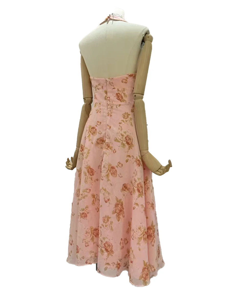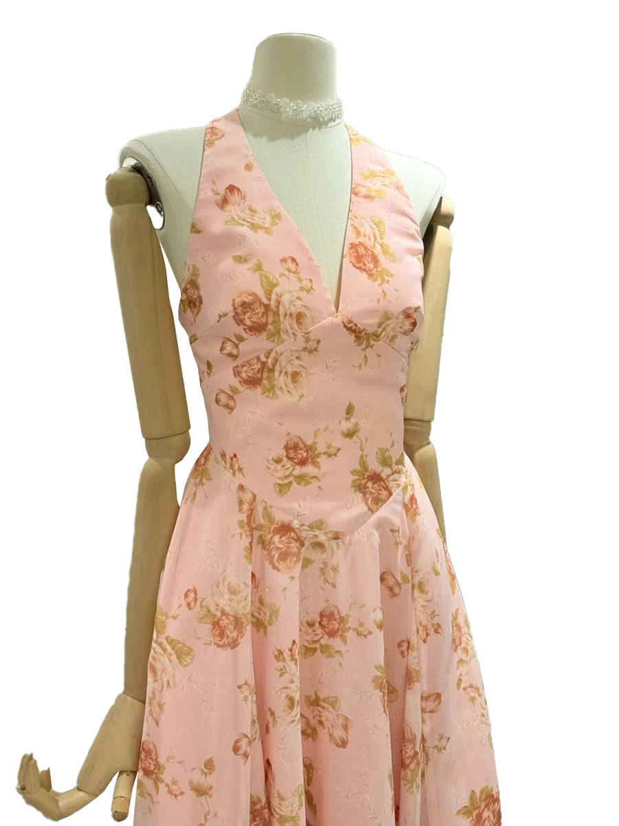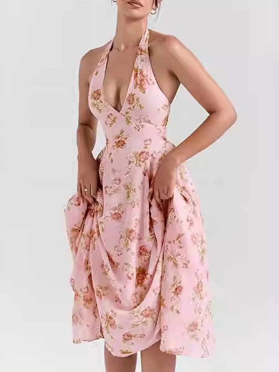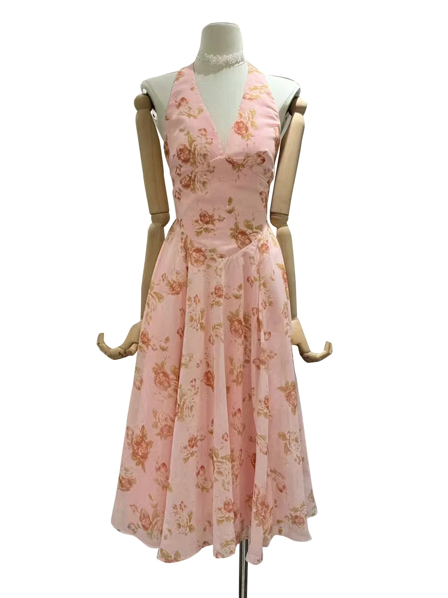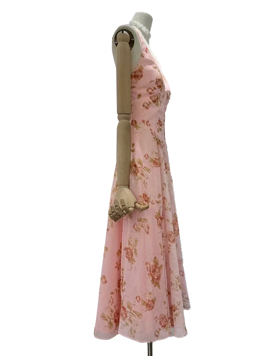 Hit Color Printing Slimming Dresses For Women V Neck Sleeveless High Waist Temperament Dress Female Fashion Style