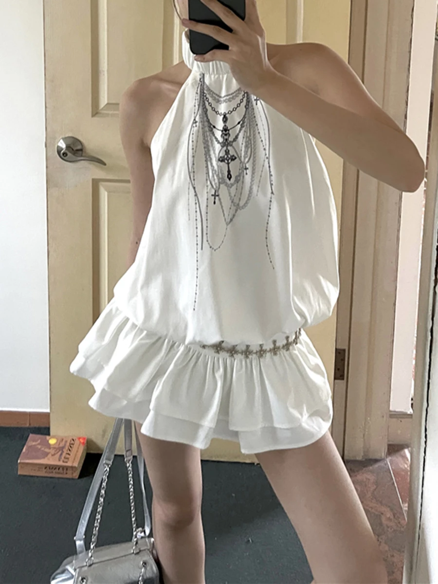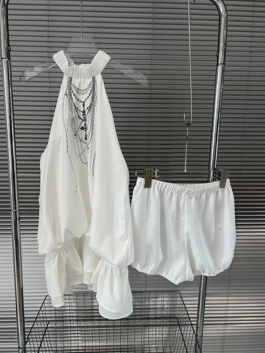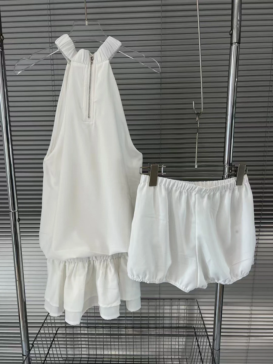 Hit Color Printing Two Piece Set For Women O Neck Sleeveless Vest High Waist Temperament Shorts Elegant Sets Female