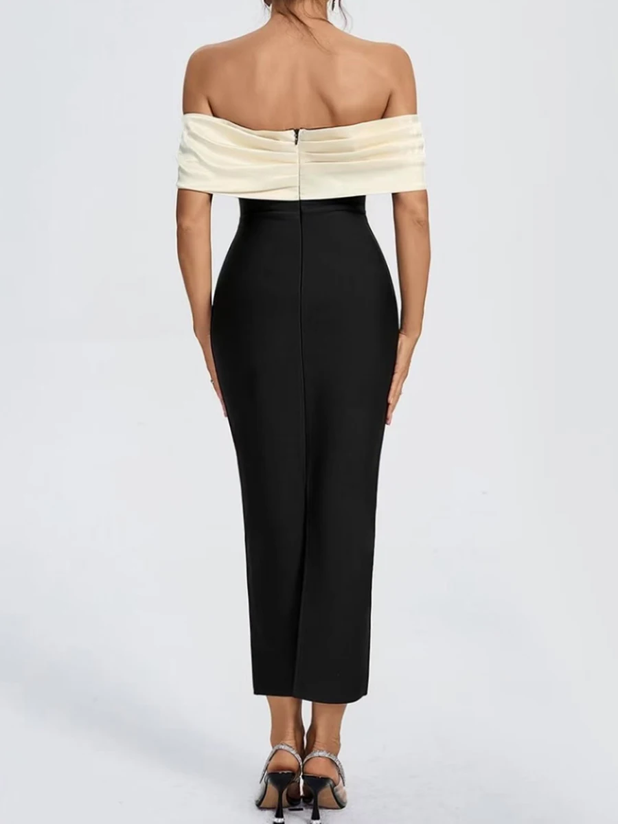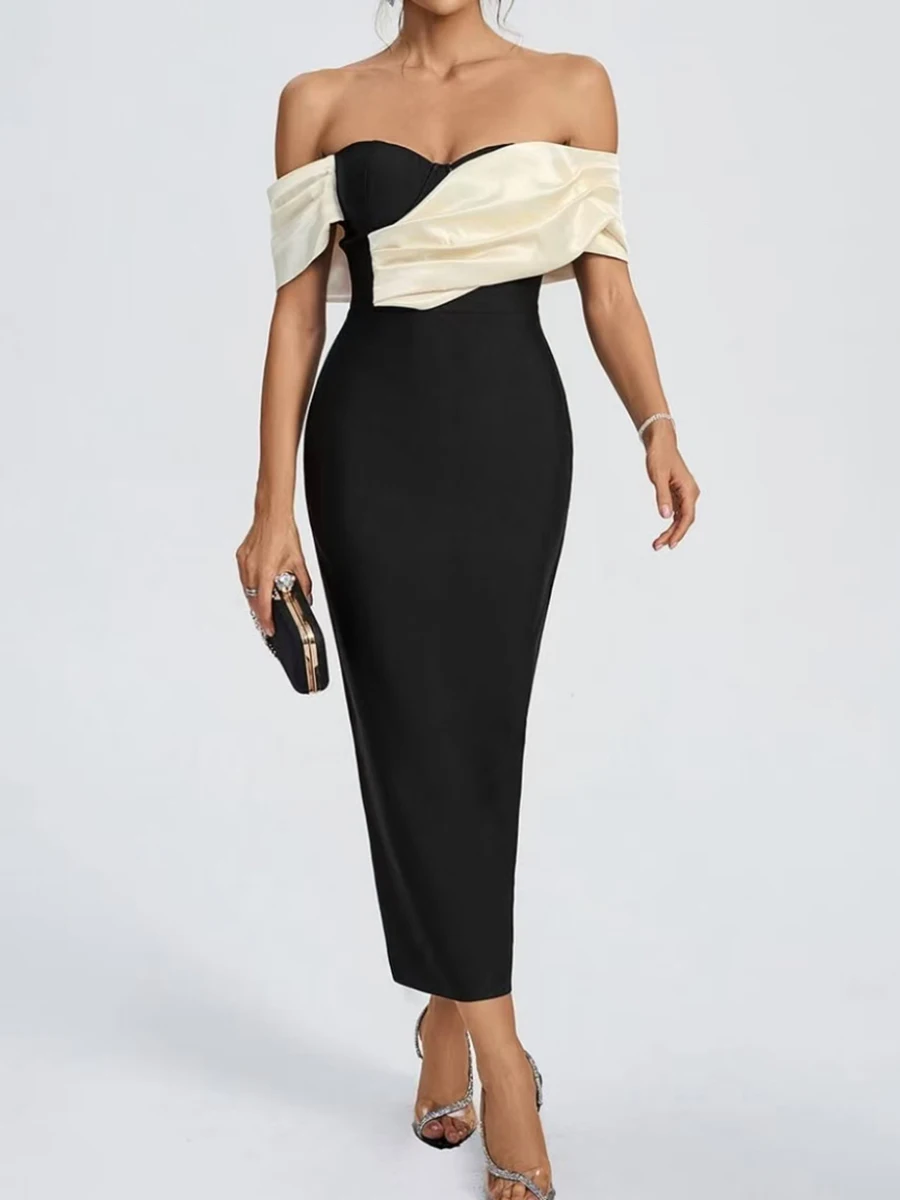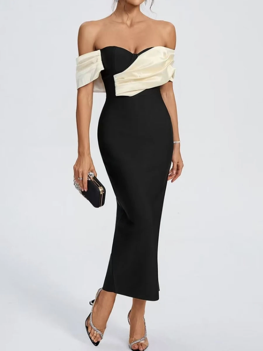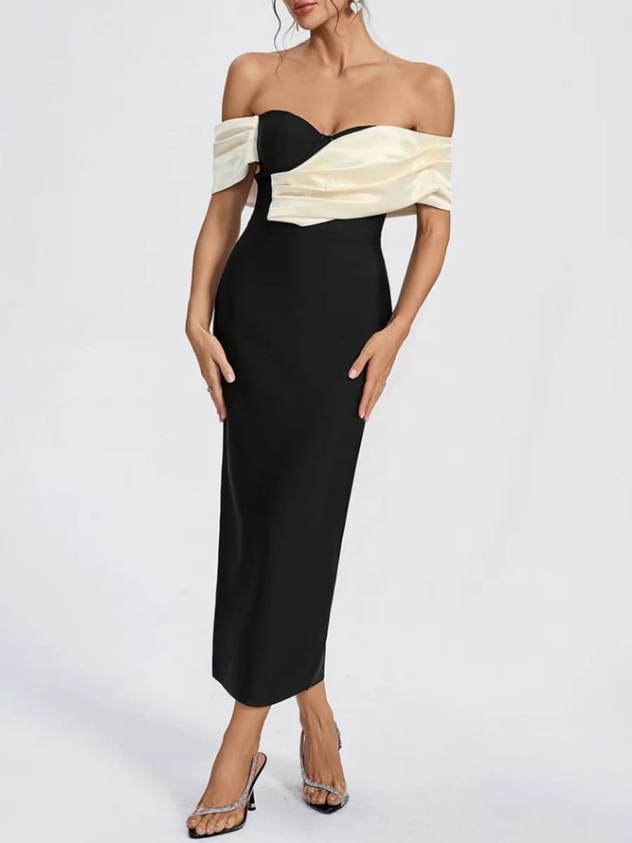 Hit Color Slimming Long Dresses For Women Slash Neck Sleeveless High Waist Temperament Dress Female Fashion Style