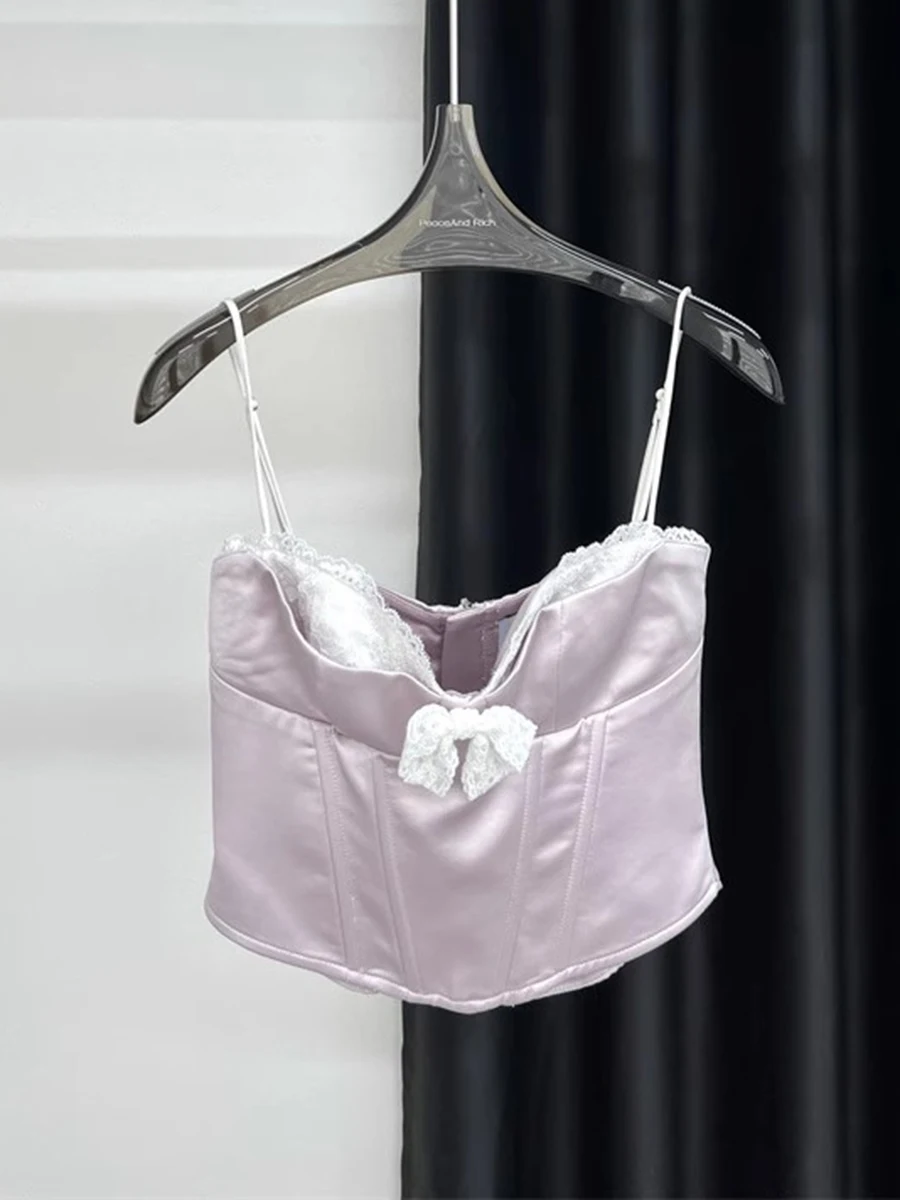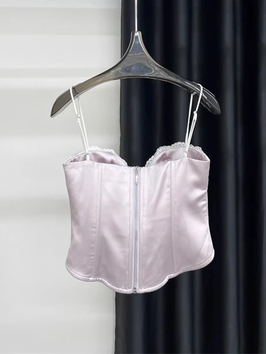 Hit Color Slimming Spliced Lace Vests For Women Strapless Sleeveless Tunic Temperament Vests Female Fashion Style