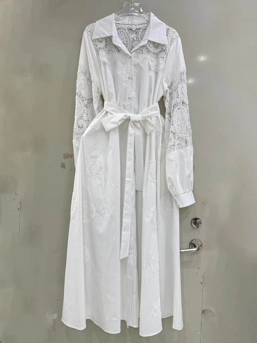 Hit Color Spliced Button Loose Dresses For Women Lapel Long Sleeve High Waist Temperament Dress Female Fashion New
