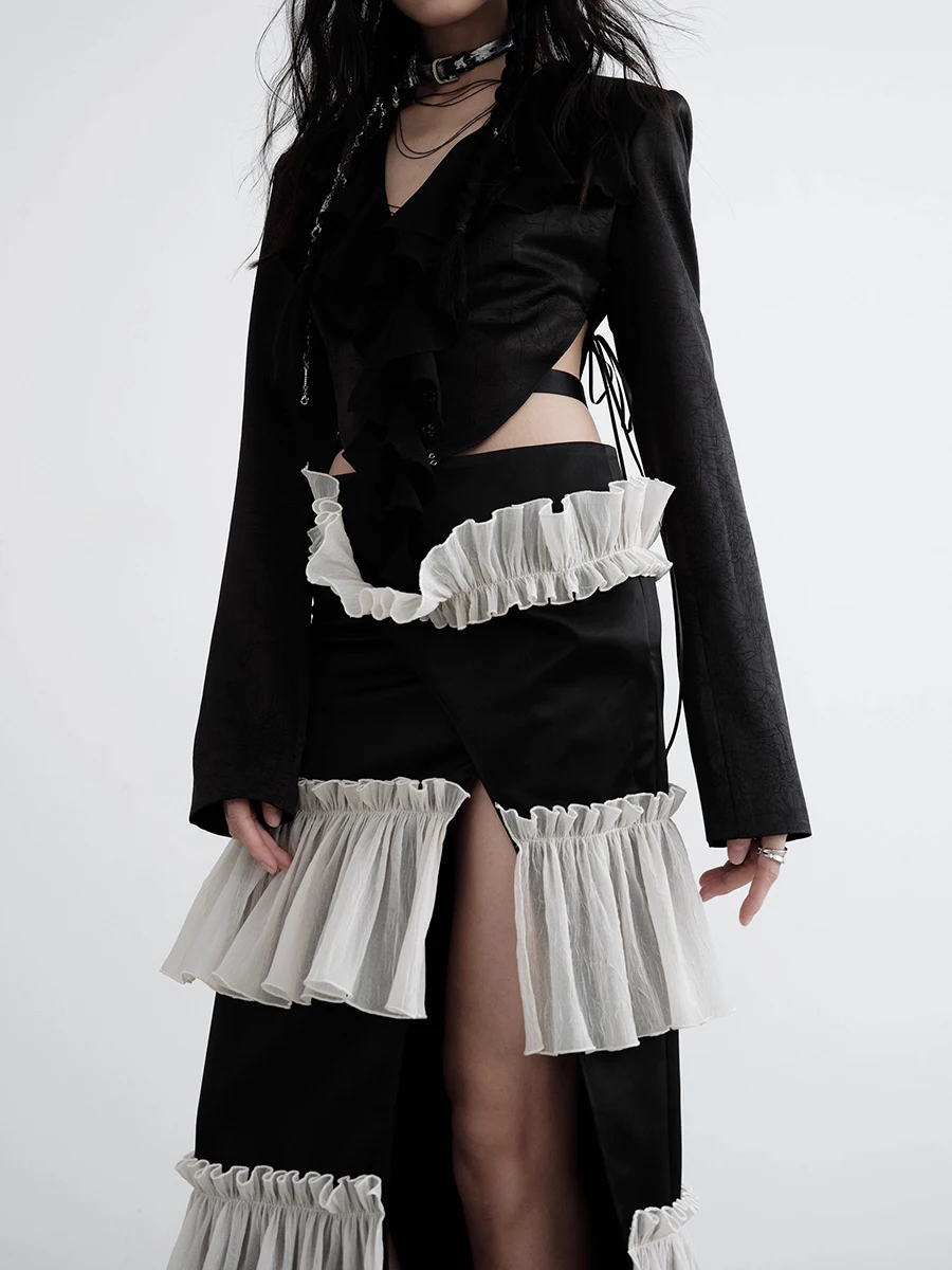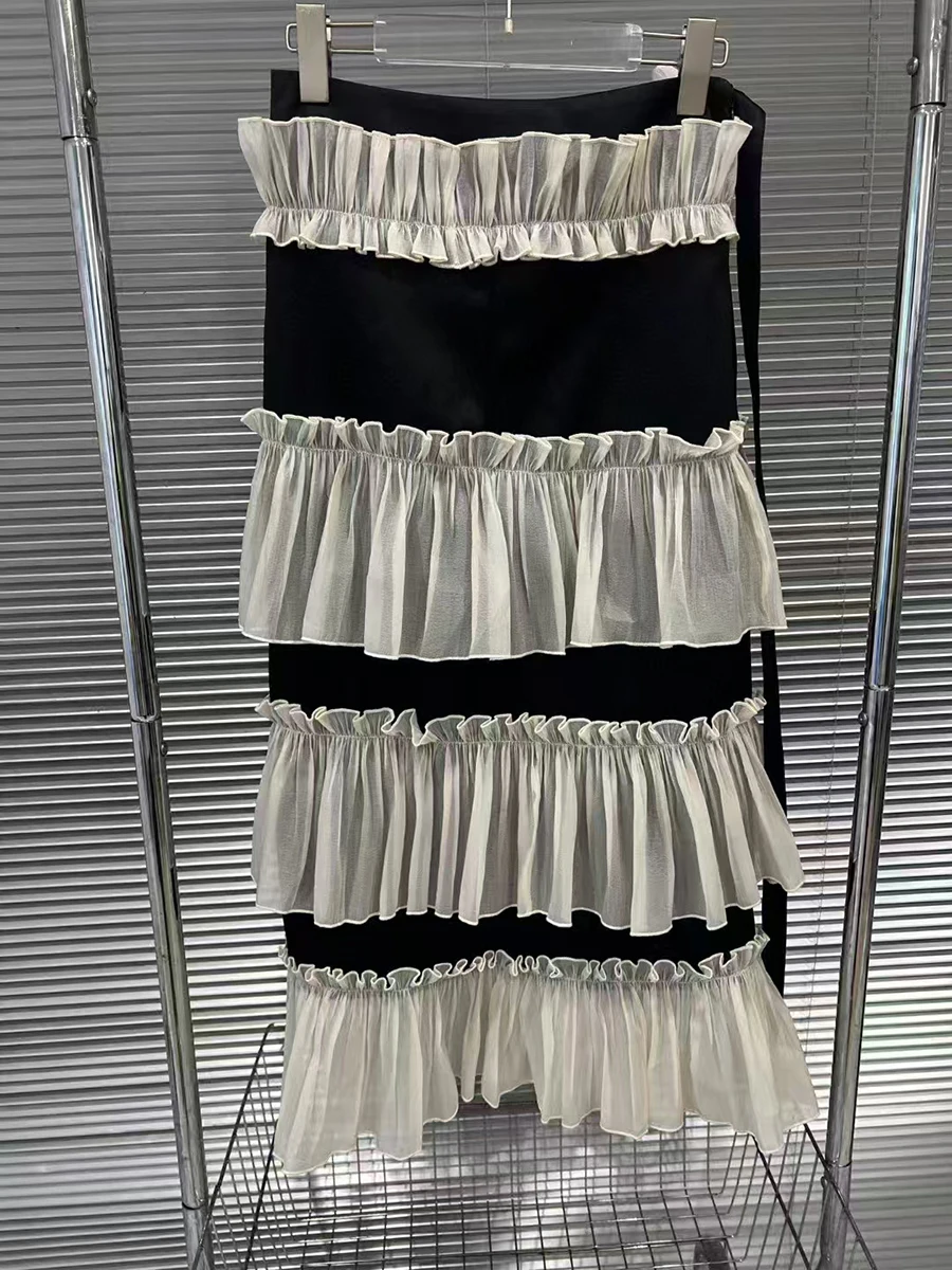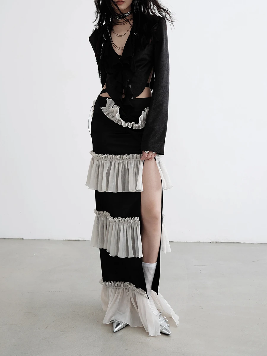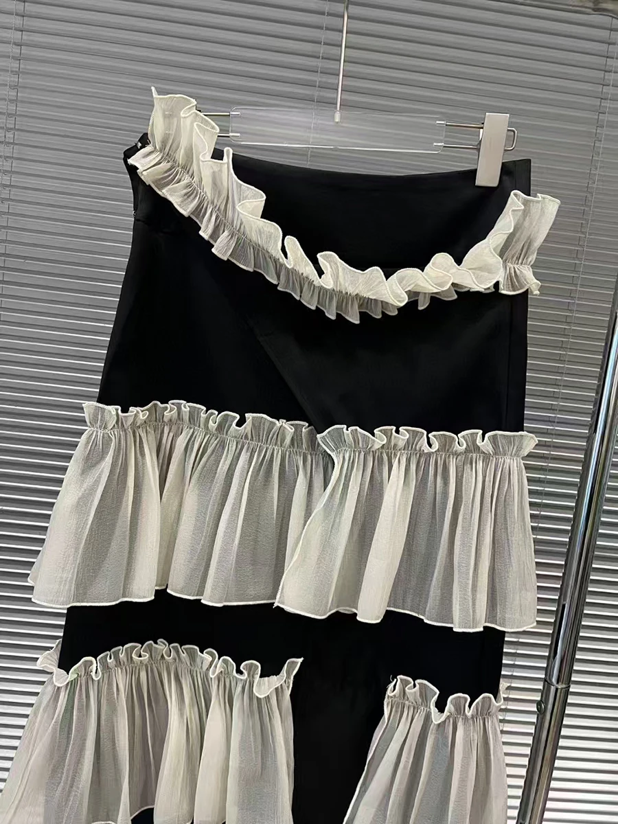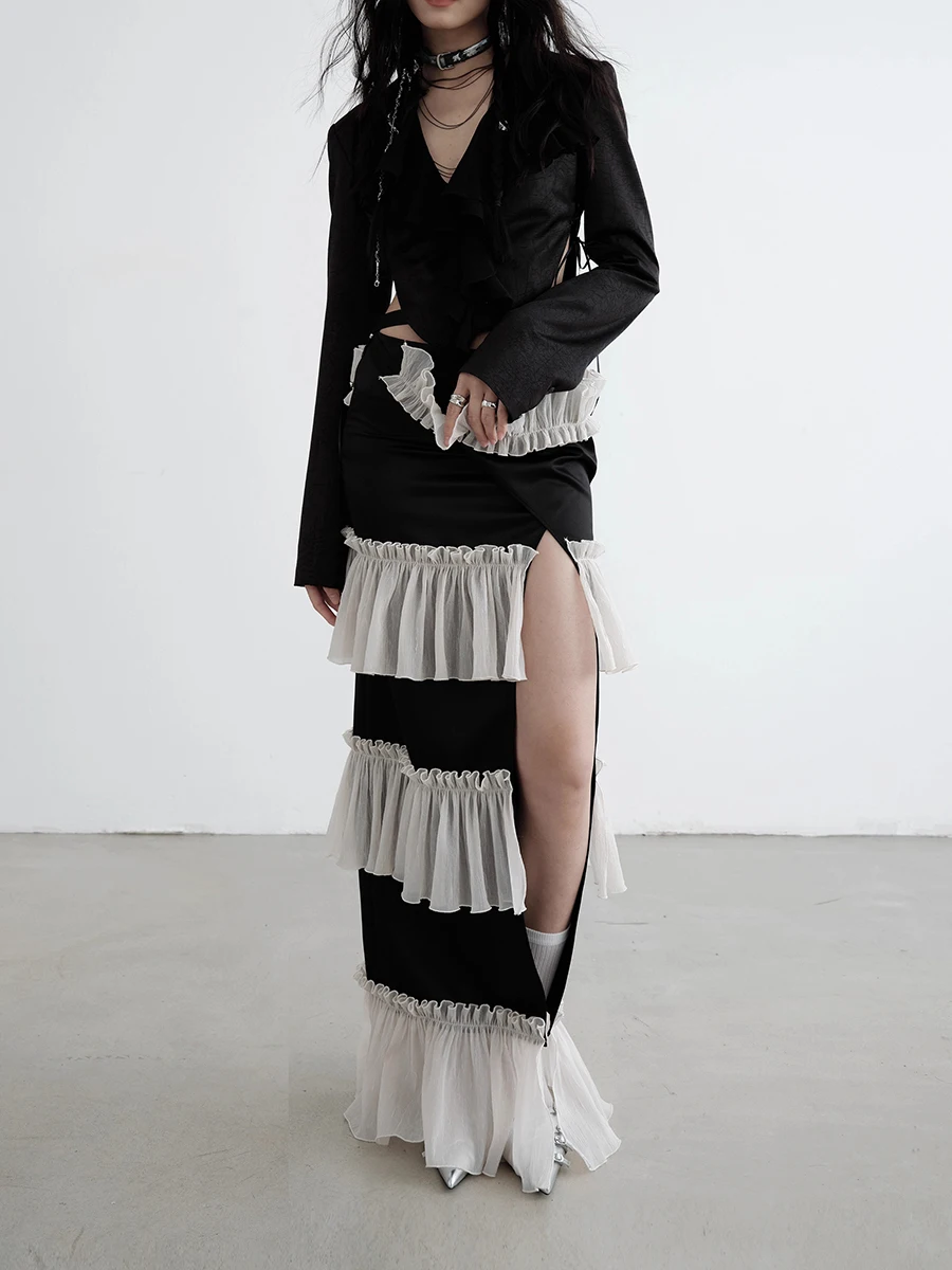 Hit Color Spliced Ruffles Slimming Skirts For Women High Waist Temperament Split Skirt Female Fashion Style Clothes