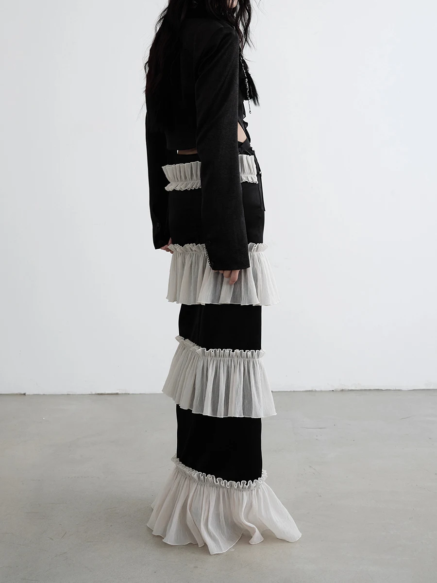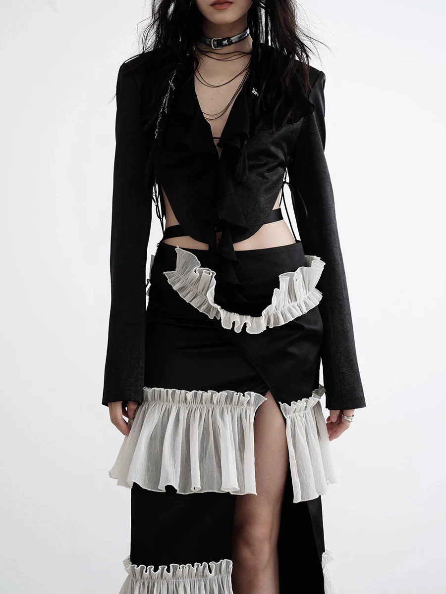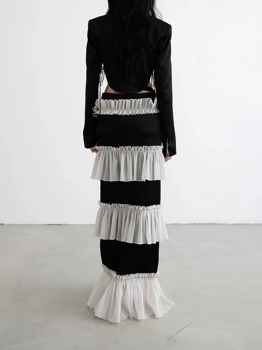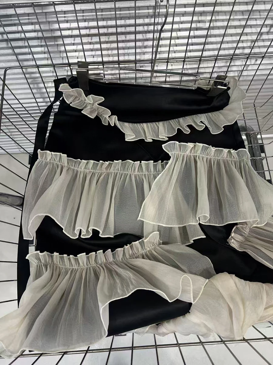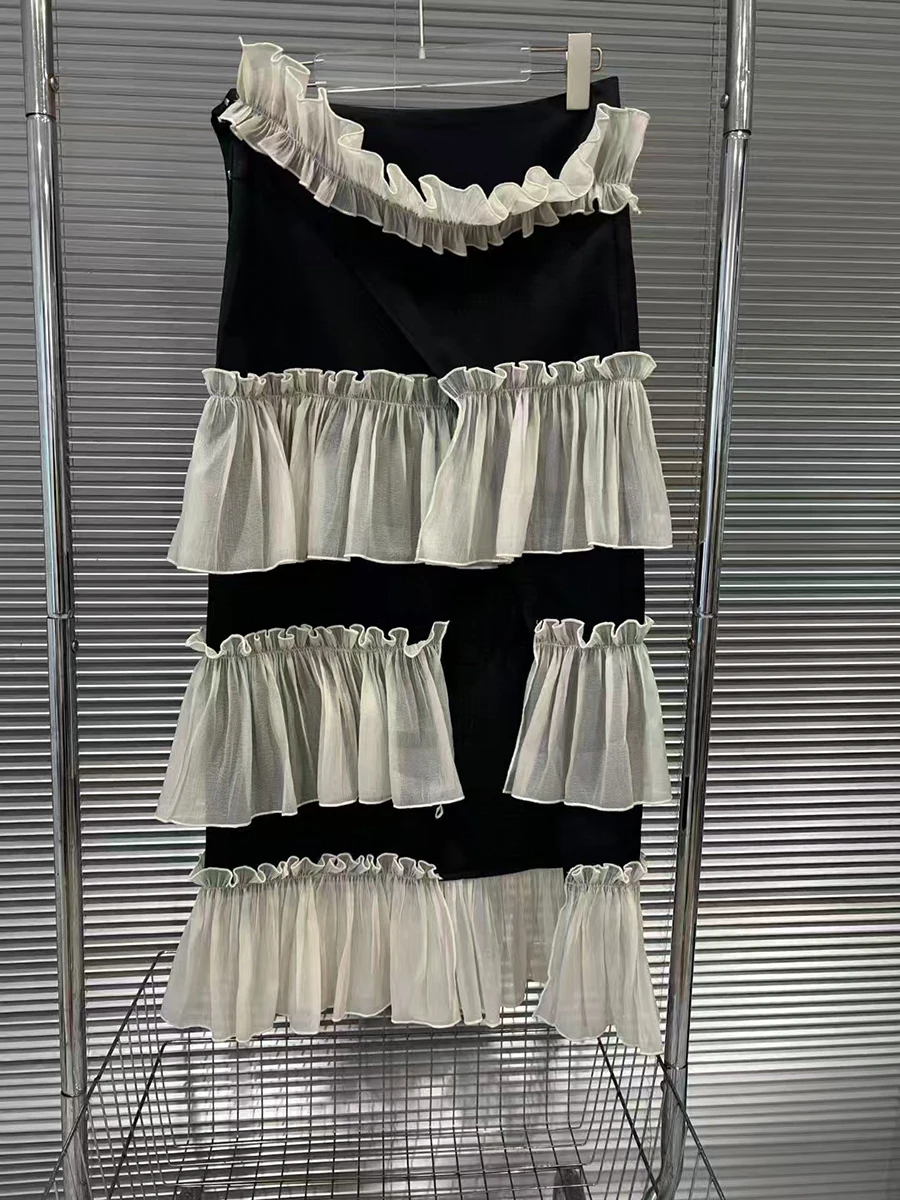 Hit Color Spliced Ruffles Slimming Skirts For Women High Waist Temperament Split Skirt Female Fashion Style Clothes