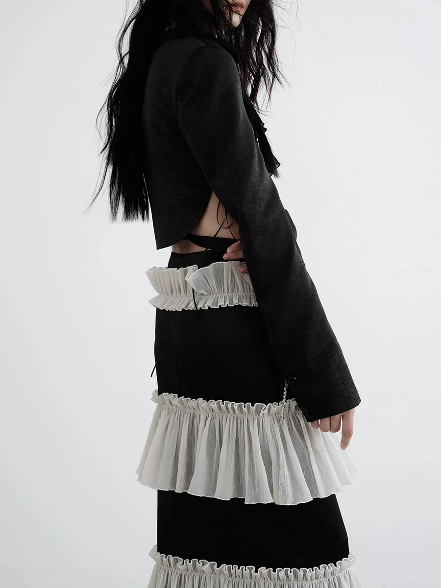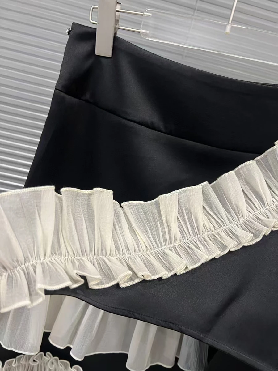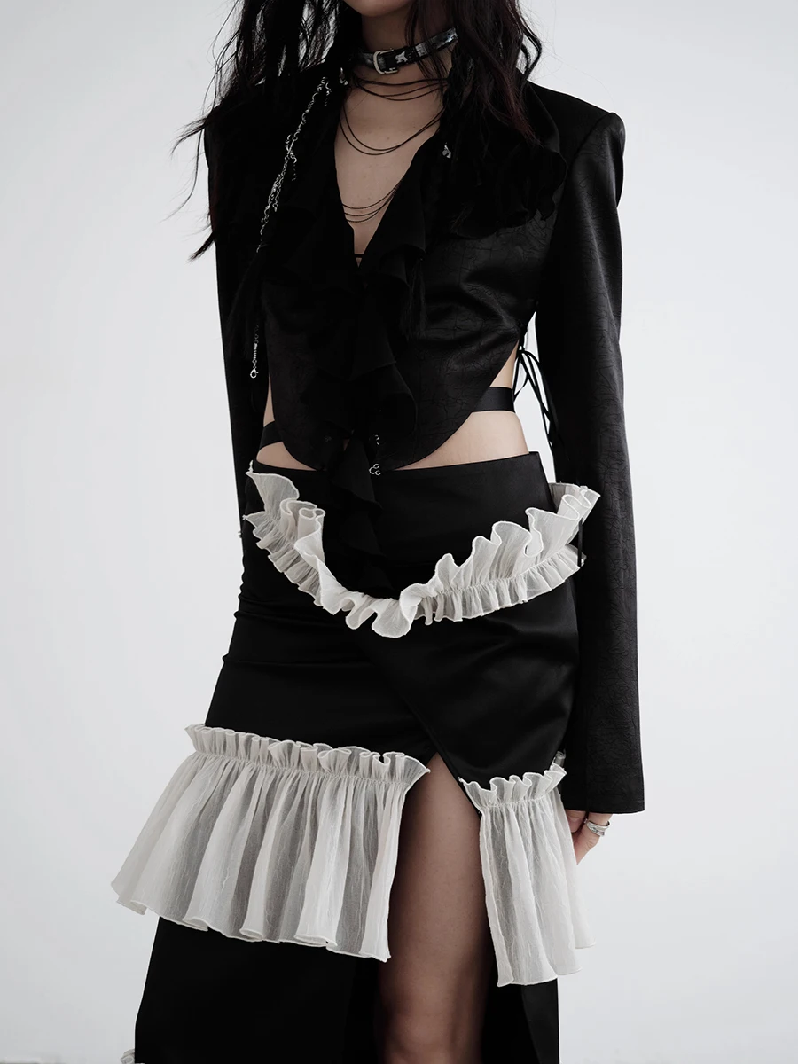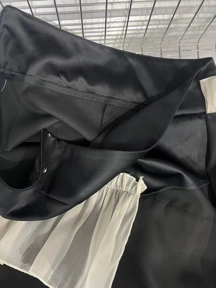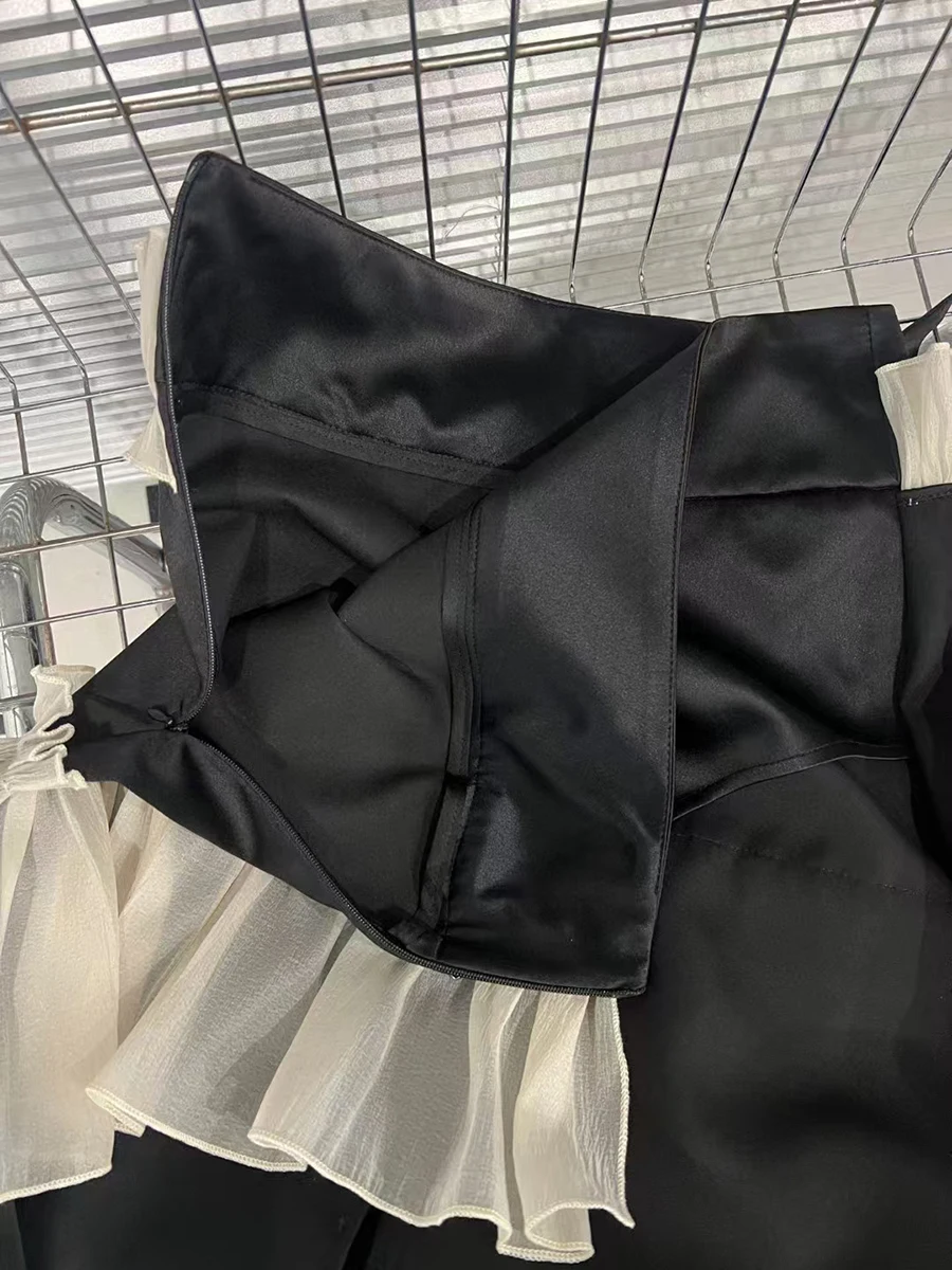 Hit Color Spliced Ruffles Slimming Skirts For Women High Waist Temperament Split Skirt Female Fashion Style Clothes