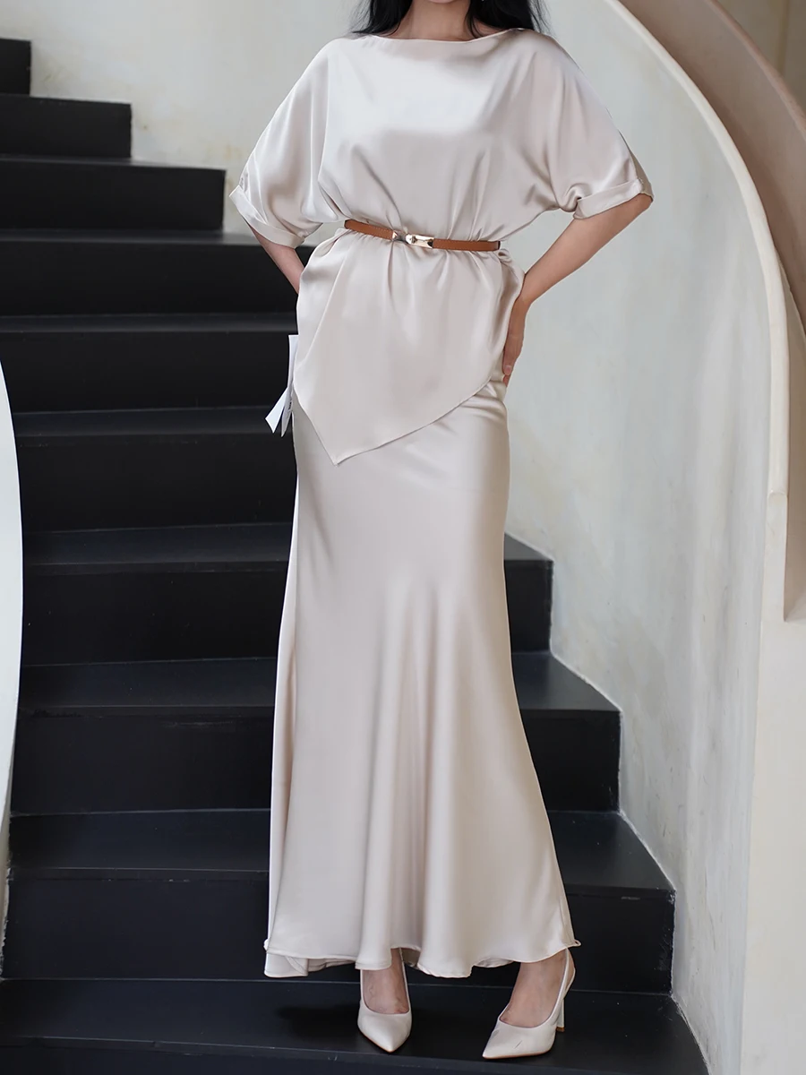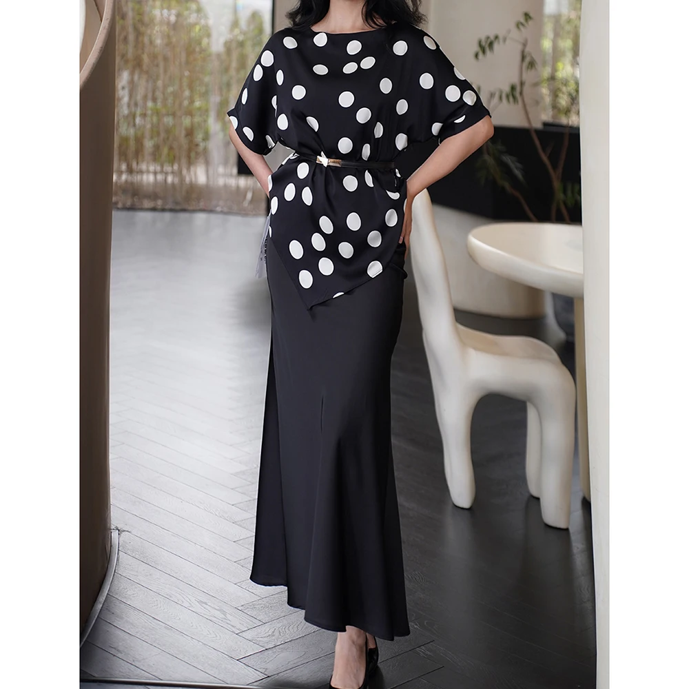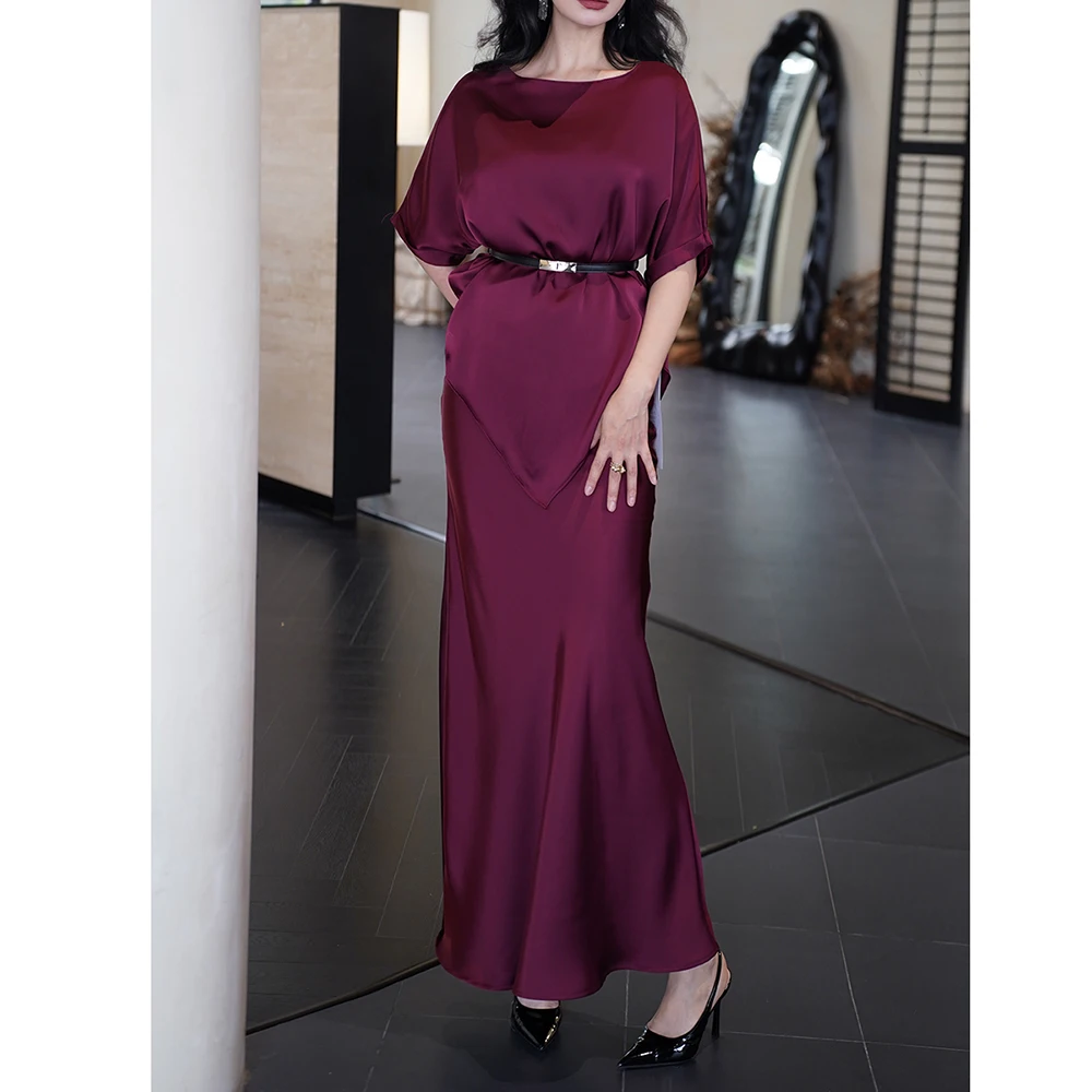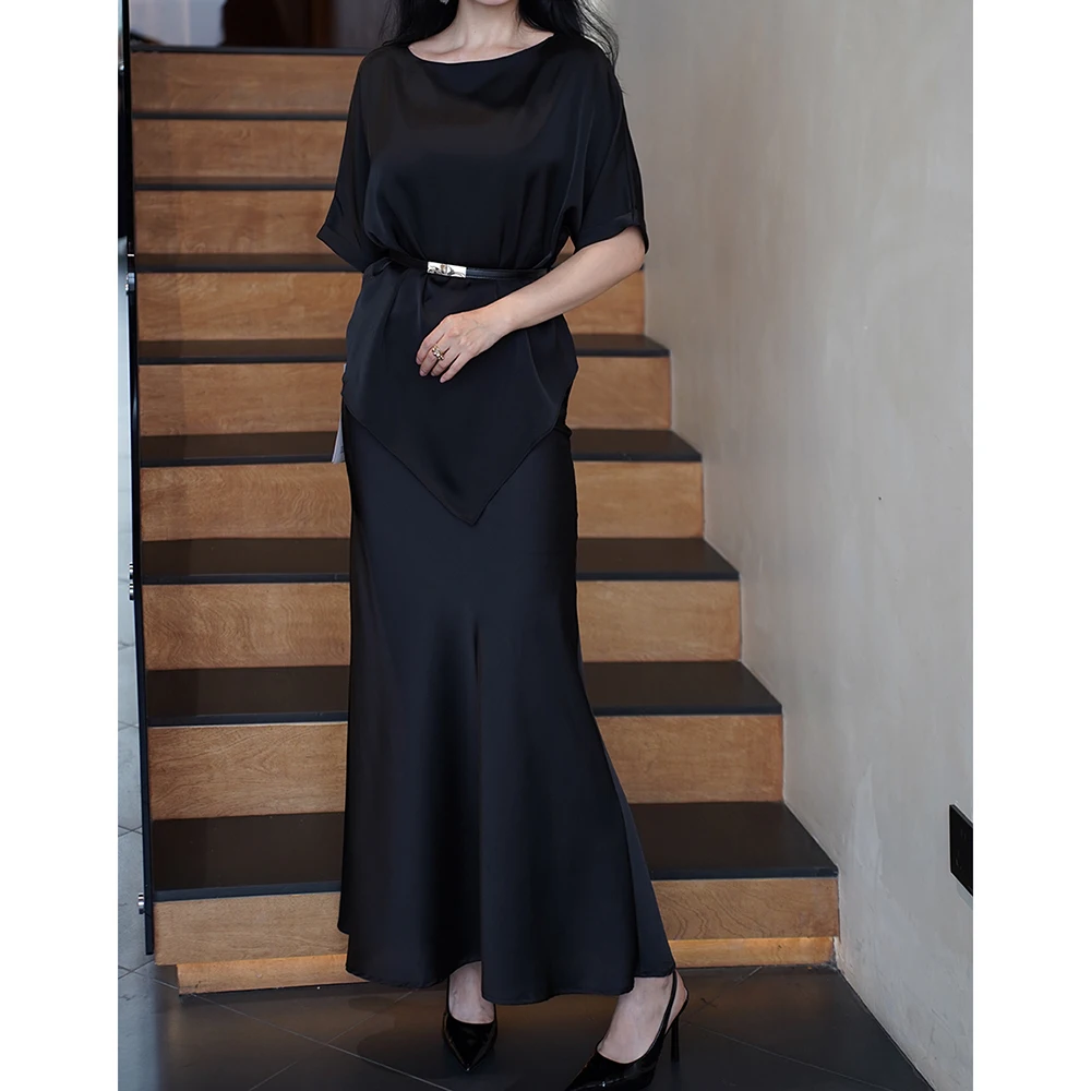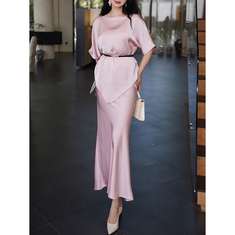 Hit Color Two Piece Set For Women O Neck Short Sleeve T Shirt High Waist Temperament Skirt Sets Female Fashion New