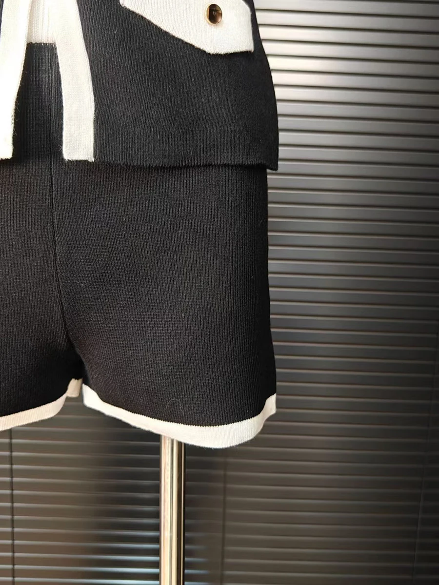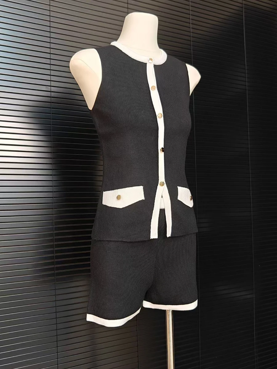 Hit Color Two Piece Set For Women O Neck Sleeveless Top High Waist Slimming Shorts Sets Female Fashion Style New