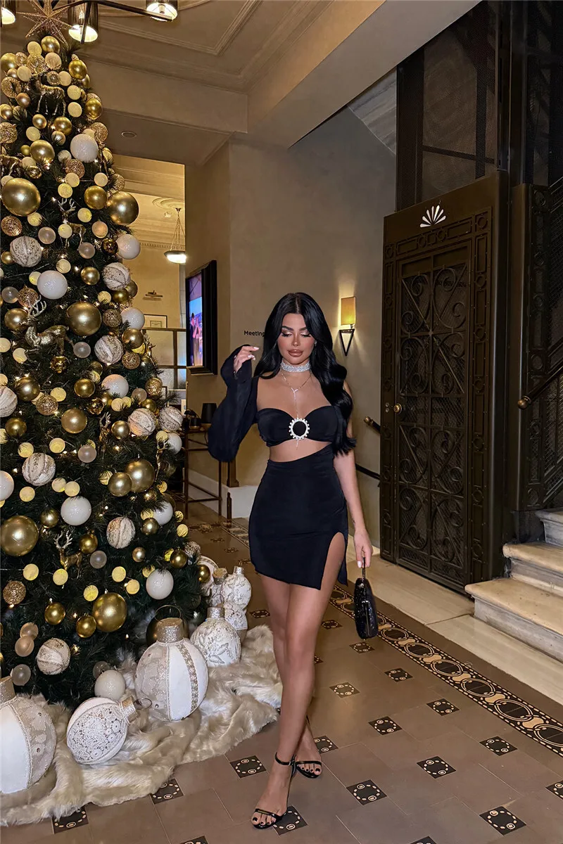 Hollow Out Backless Sexy Mini Dress For Women Robe Elegant Fashion One Sleeve Side Slit A-line Club Dress Vestido