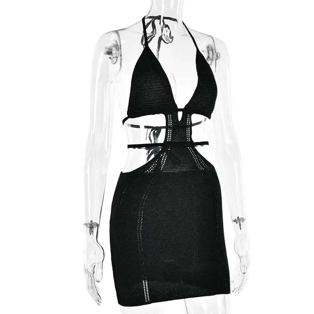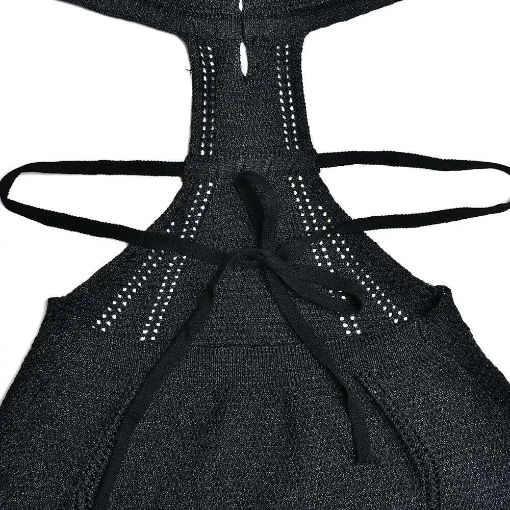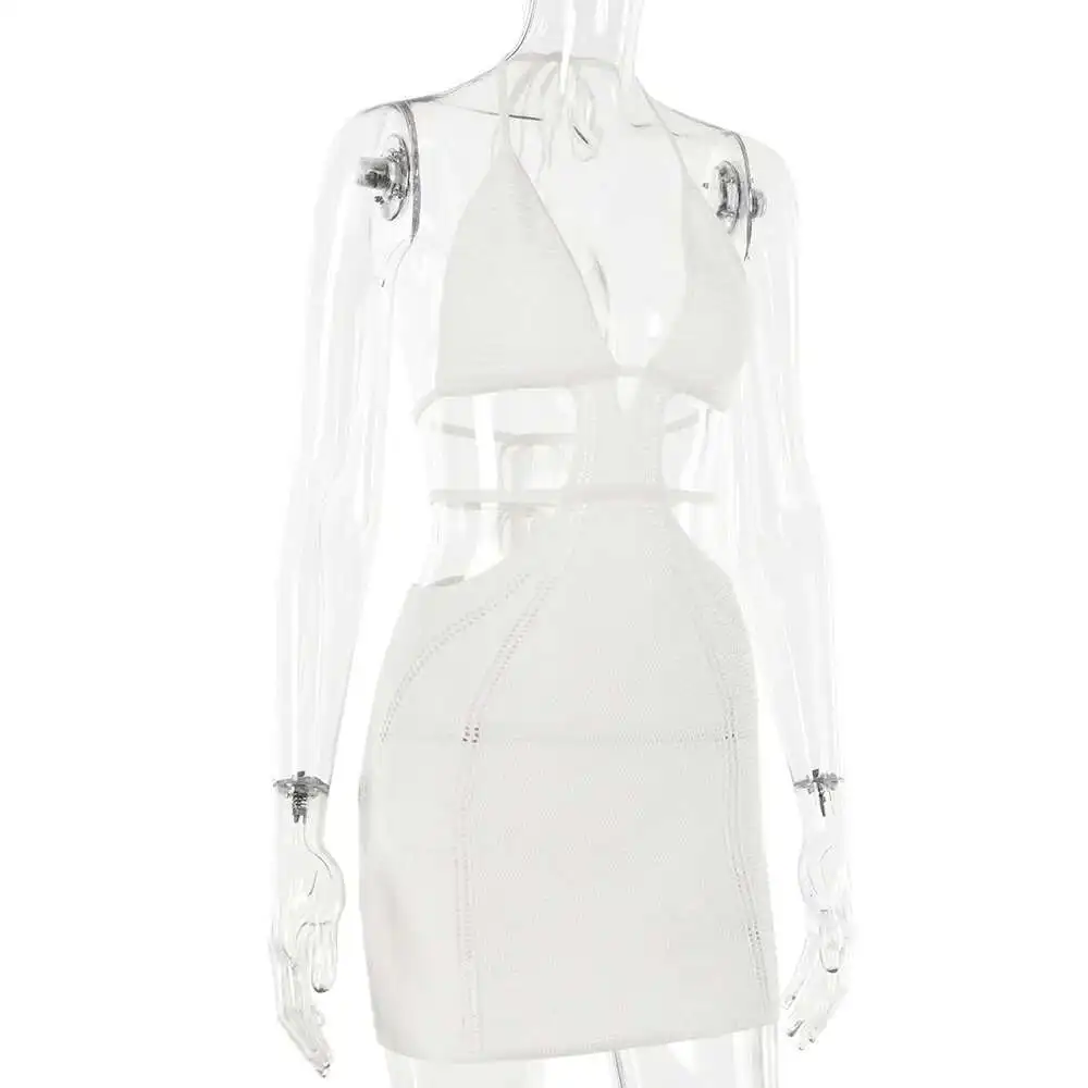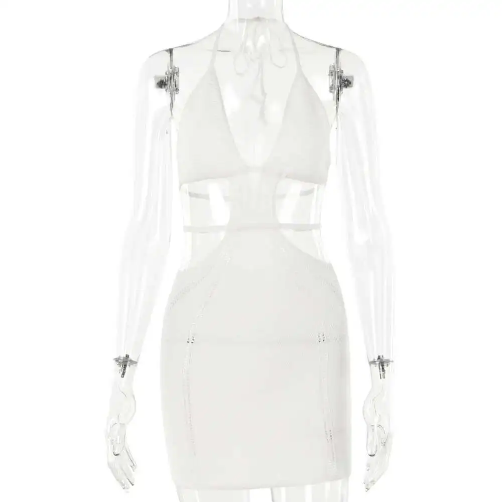 Hollow Out Halter Sexy Mini Dress Women Summer New Sleeveless Backless Skinny Club Party Knit Tank Dress Vestido