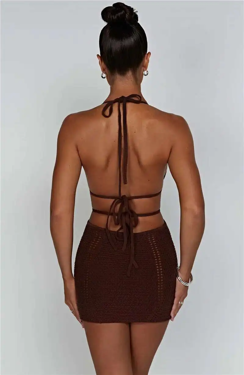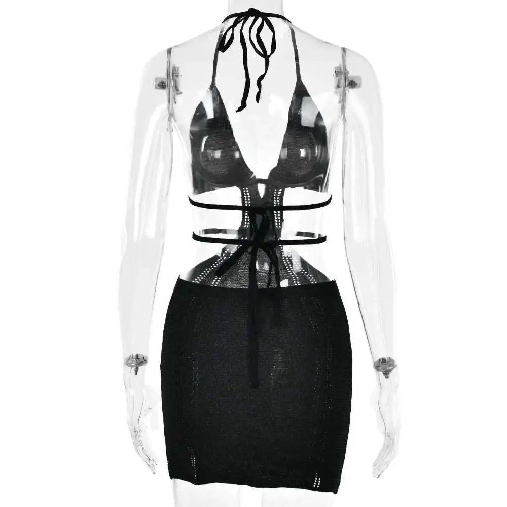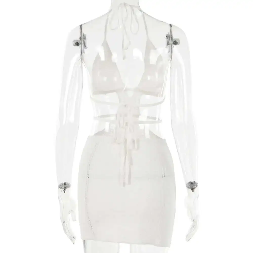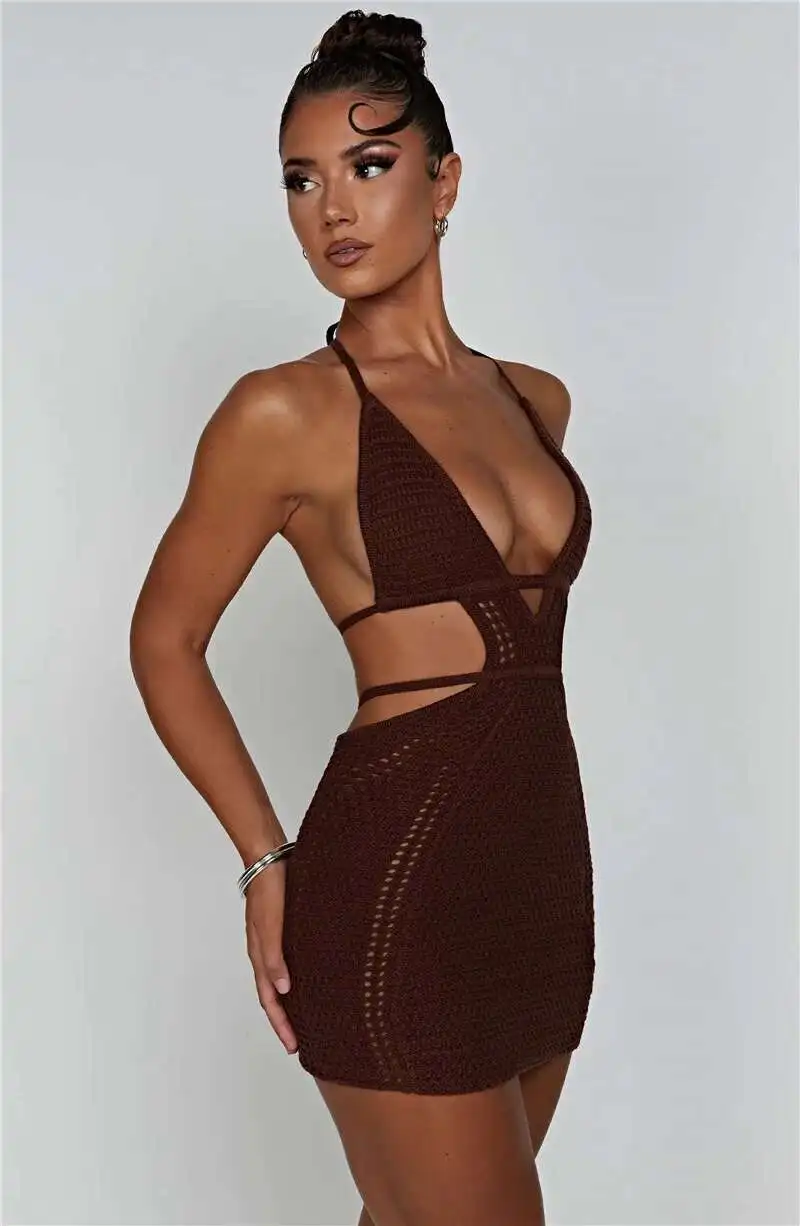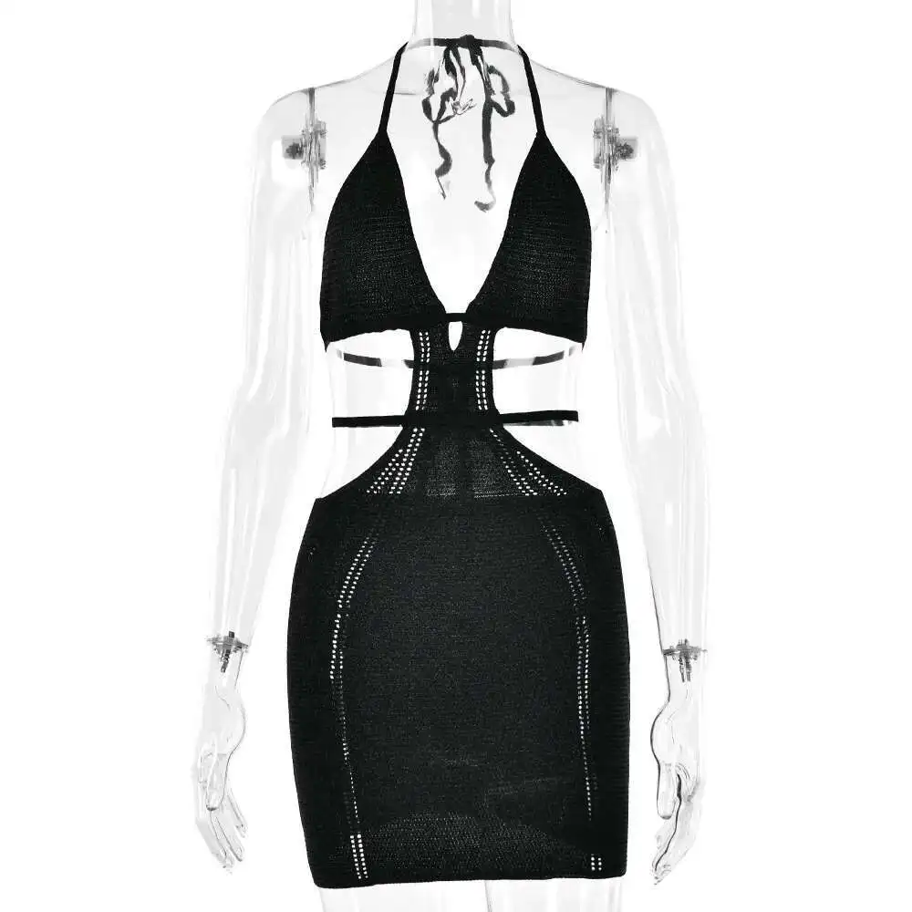Hollow Out Halter Sexy Mini Dress Women Summer New Sleeveless Backless Skinny Club Party Knit Tank Dress Vestido
