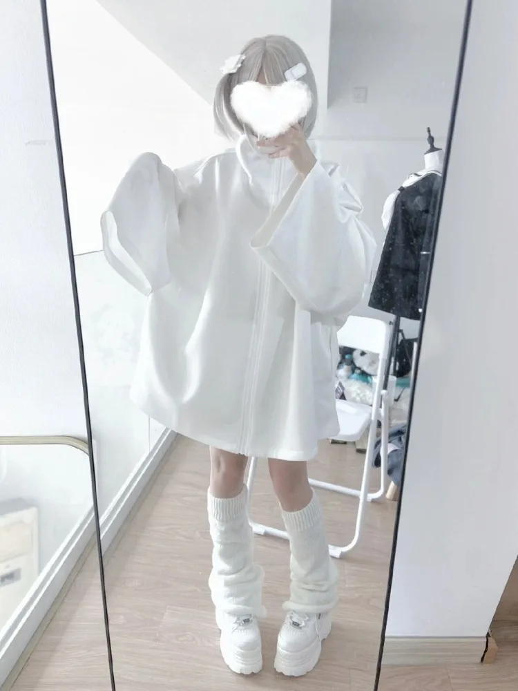 Japanese Hoodies Women Clothing Fashion Streetwear White Y2k Tops 2024 Ropa Mujer Oversized Outwear Casual Harajuku Sweatshirts