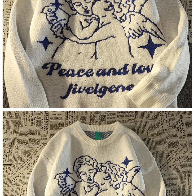 Japanese Women Men Sweater Angel Jacquard Loose Casual Retro All Match Pullover Harajuku Couples Korean Fashion