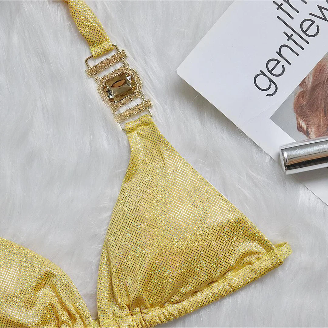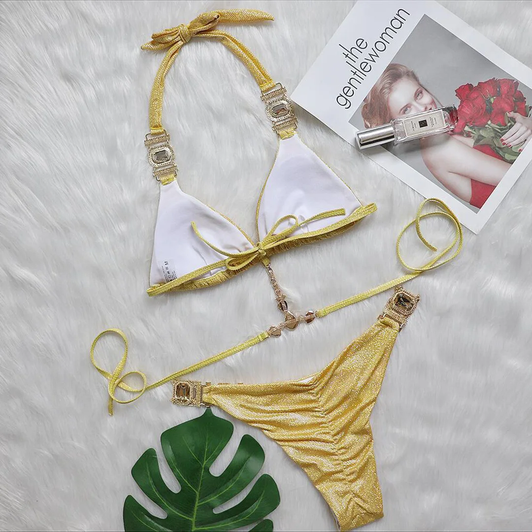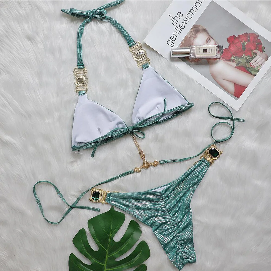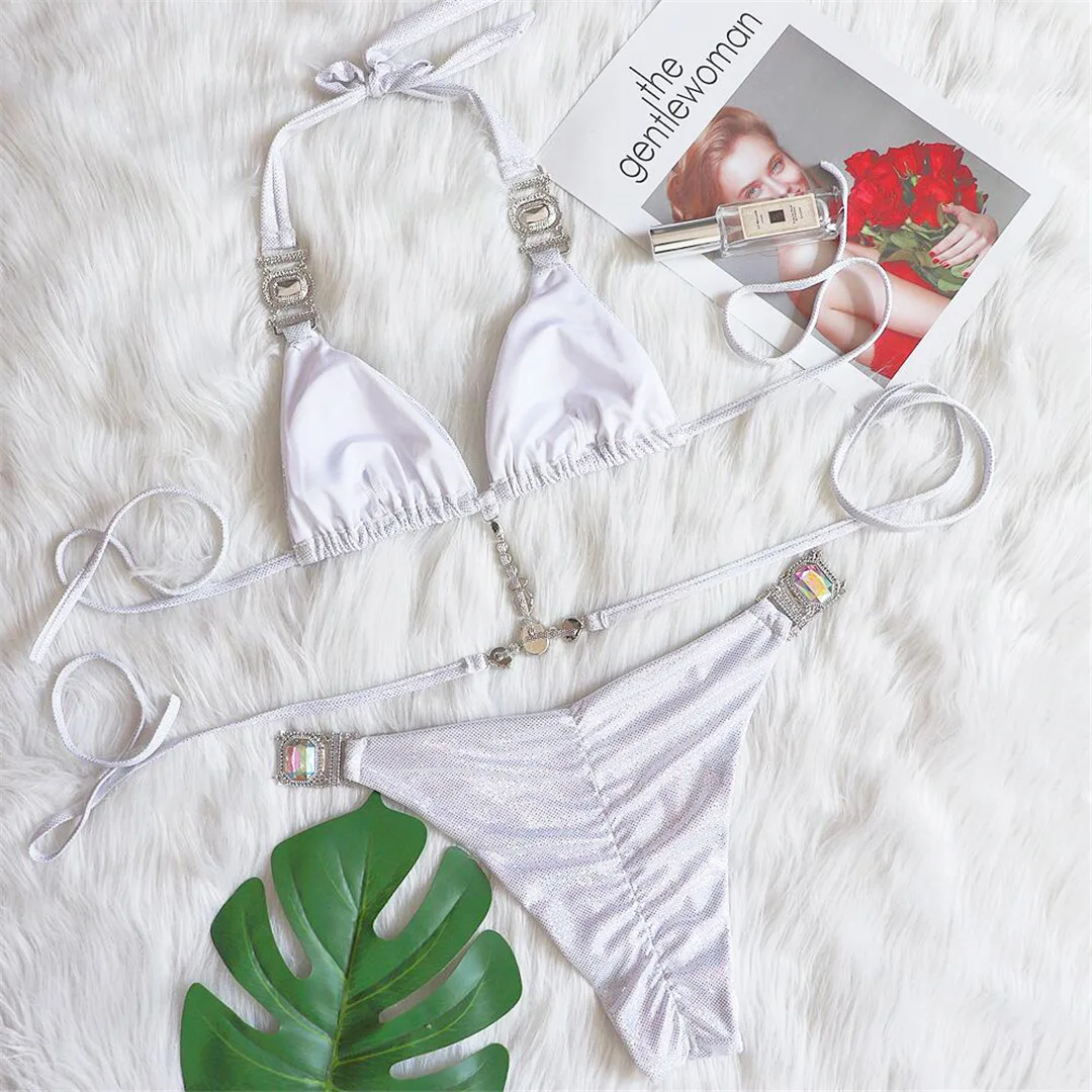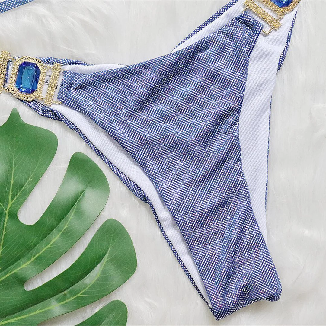 Jewelled Diamond Bikini Female Swimsuit Women Swimwear Two-pieces Bikini set Scrunch Butt Bather Bathing Suit Swim V3342