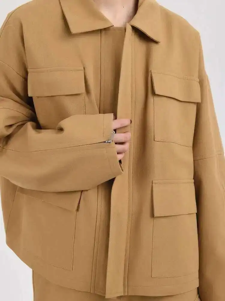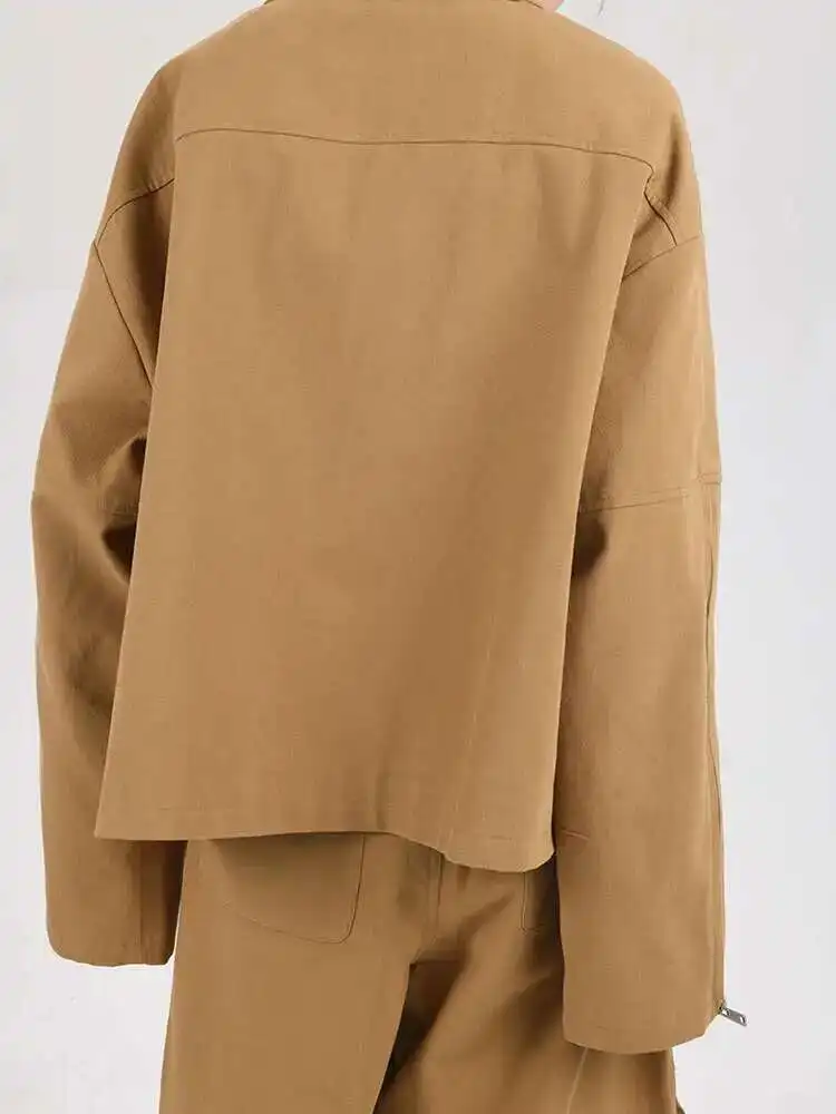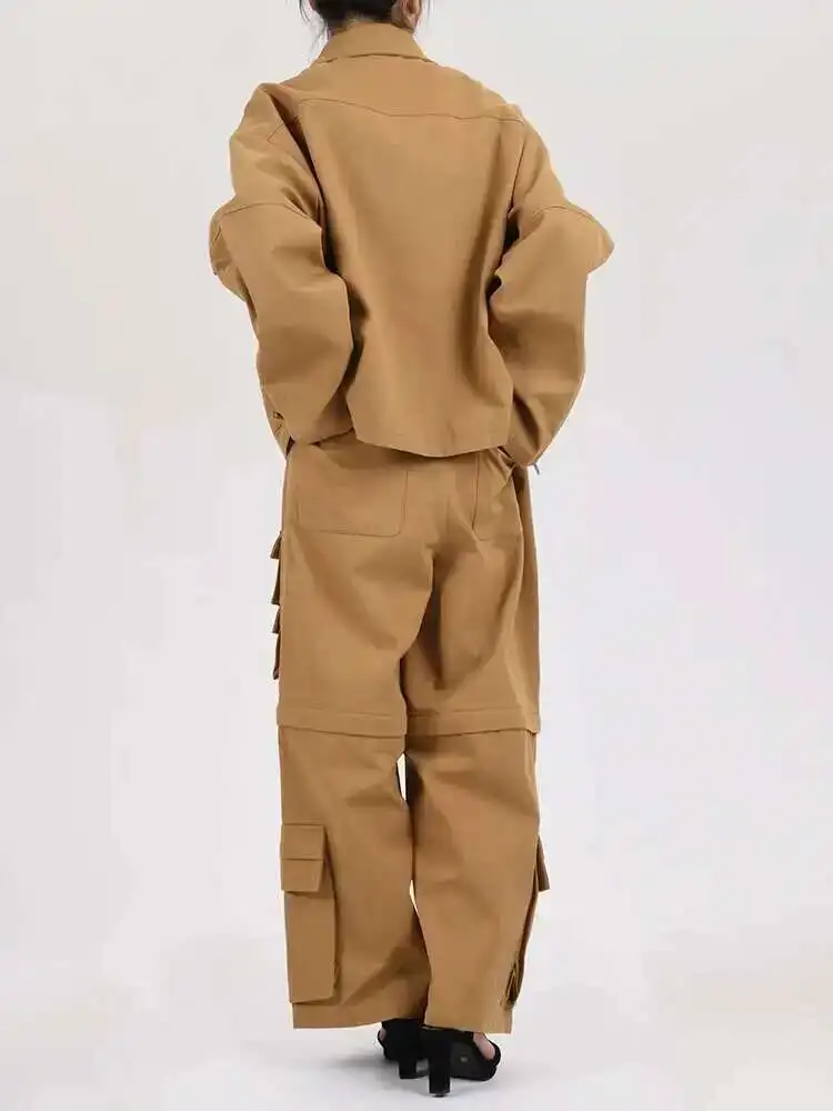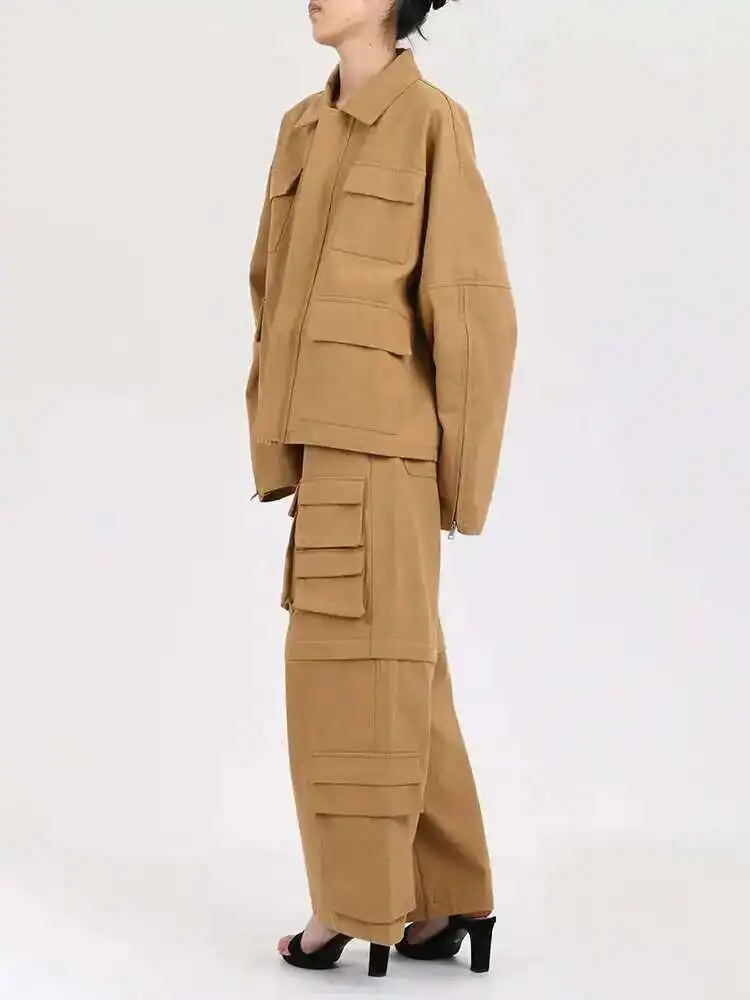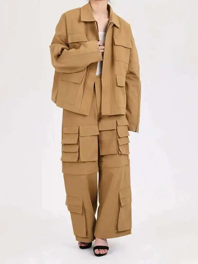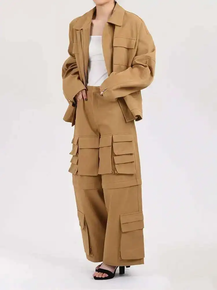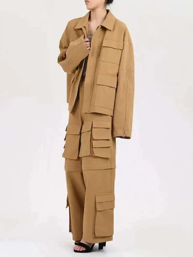 Khaki Big Size Coat Wide Leg Pants Two Piece Suit New Lapel Long Sleeve Women Fashion Tide Spring Autumn 2025 28W105