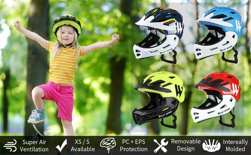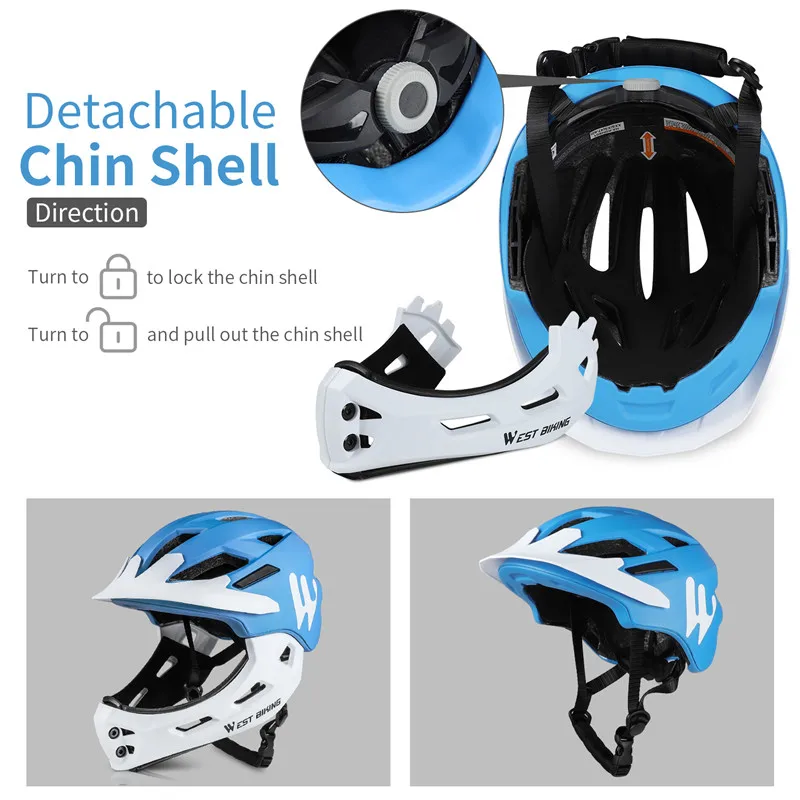 Kid Helmet Full Face Protection Mountain MTB Road Bicycle Helmet Detachable Children Sports Safety Cycling Helmet
