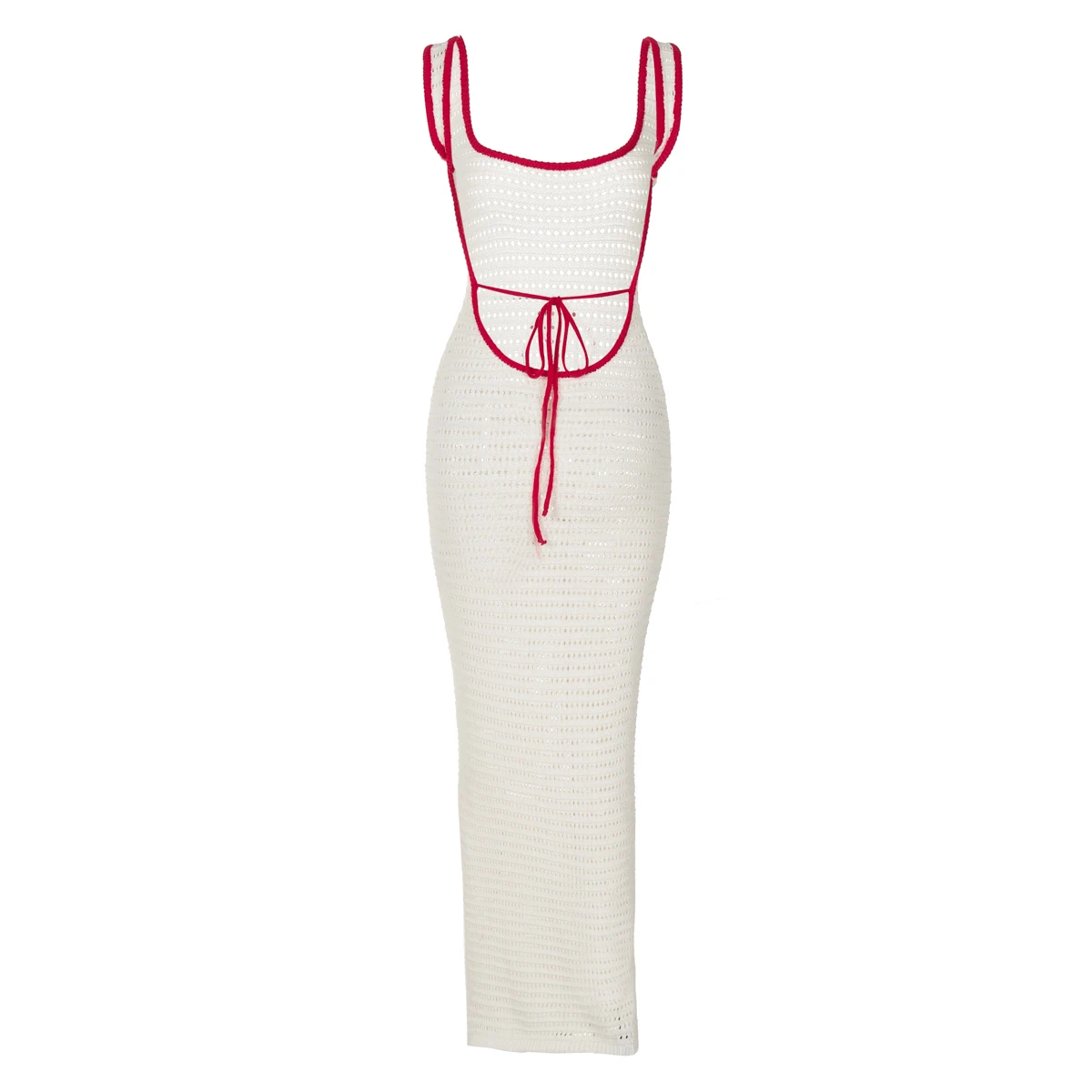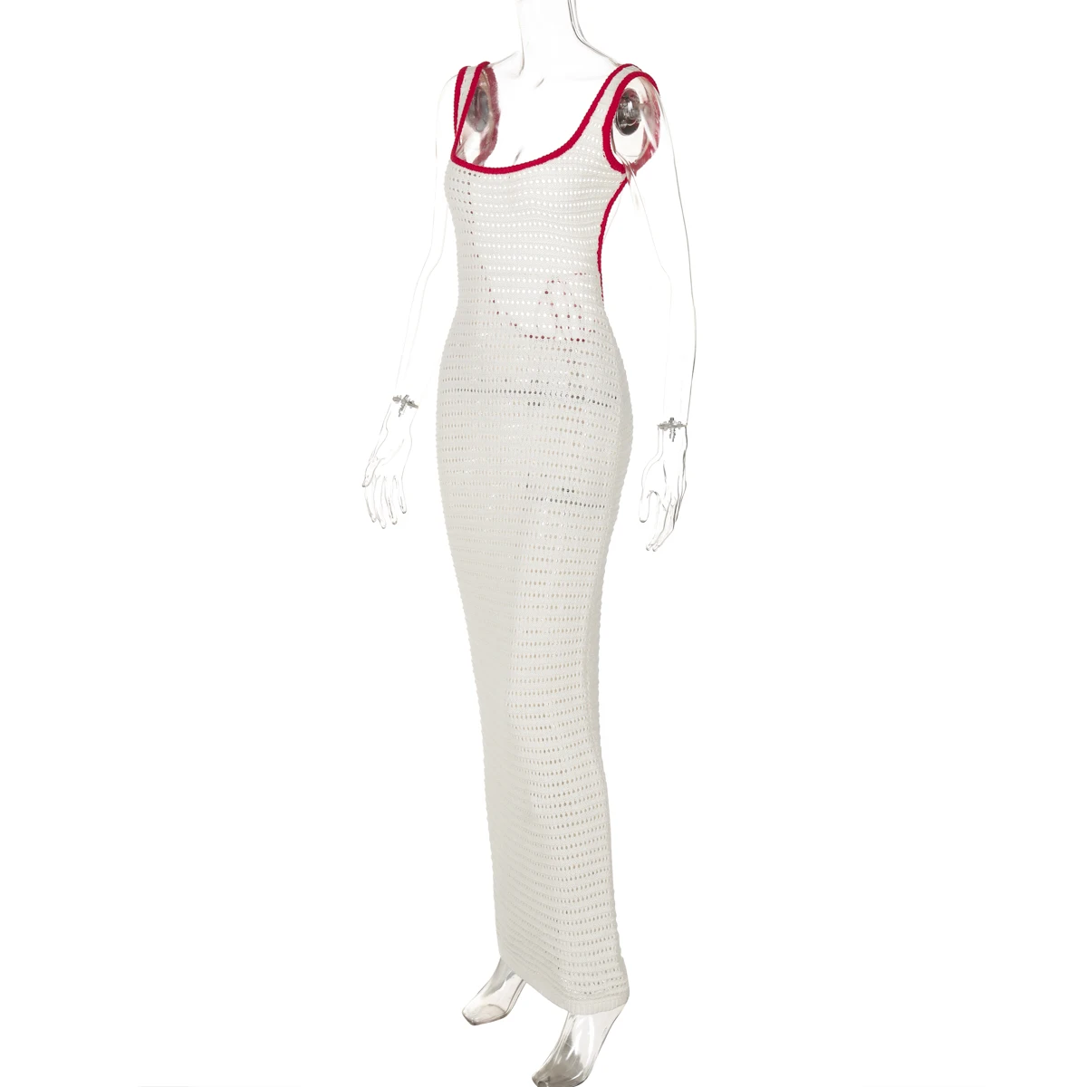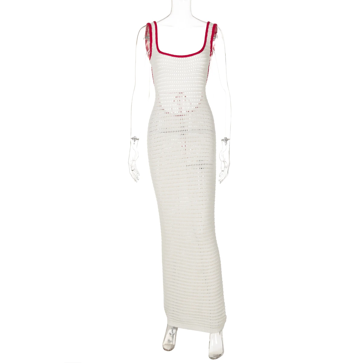 Knitted Matching Color Straps Backless Lace Up Sexy See Through Maxi Dress Women Fashion Y2K Outfits Beach Vacation