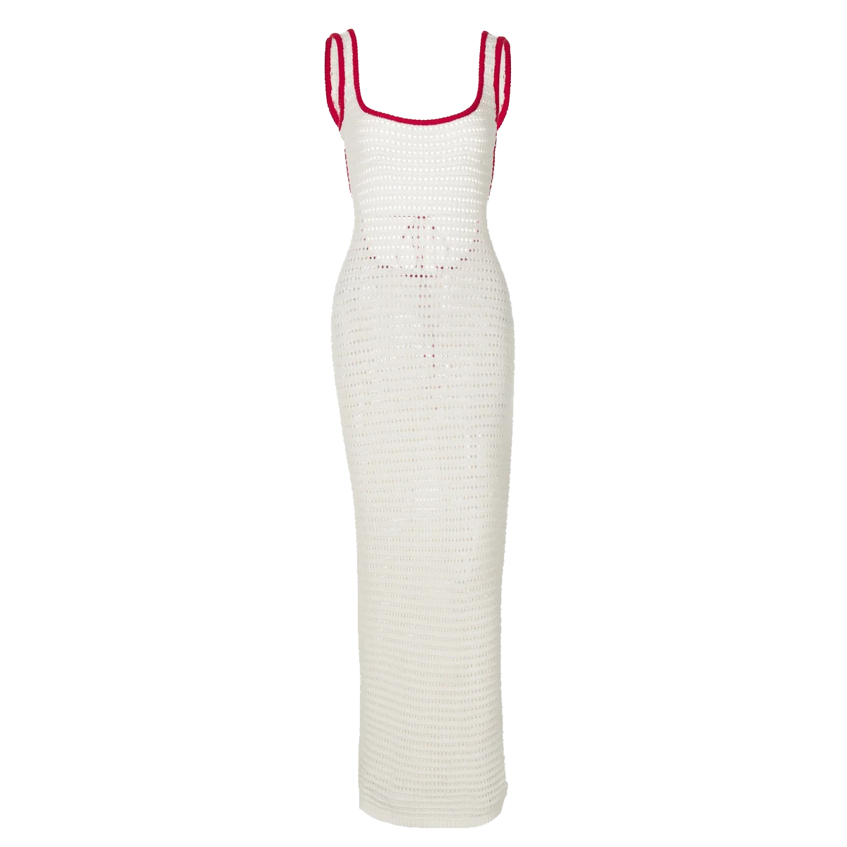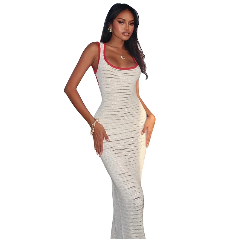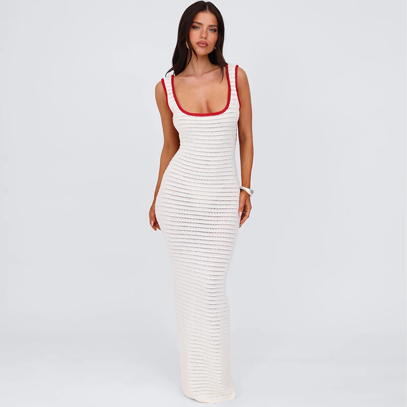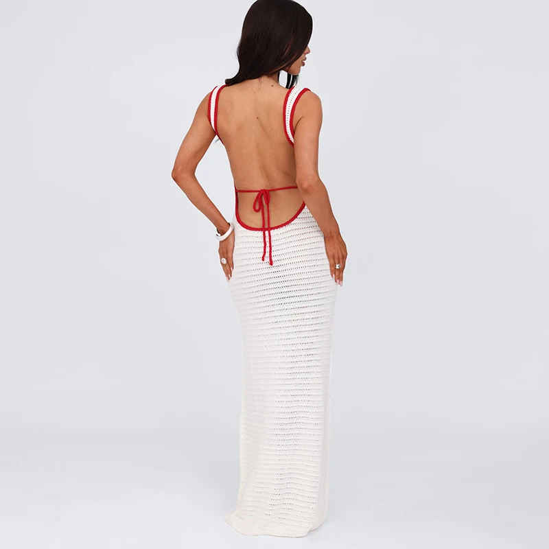 Knitted Matching Color Straps Backless Lace Up Sexy See Through Maxi Dress Women Fashion Y2K Outfits Beach Vacation