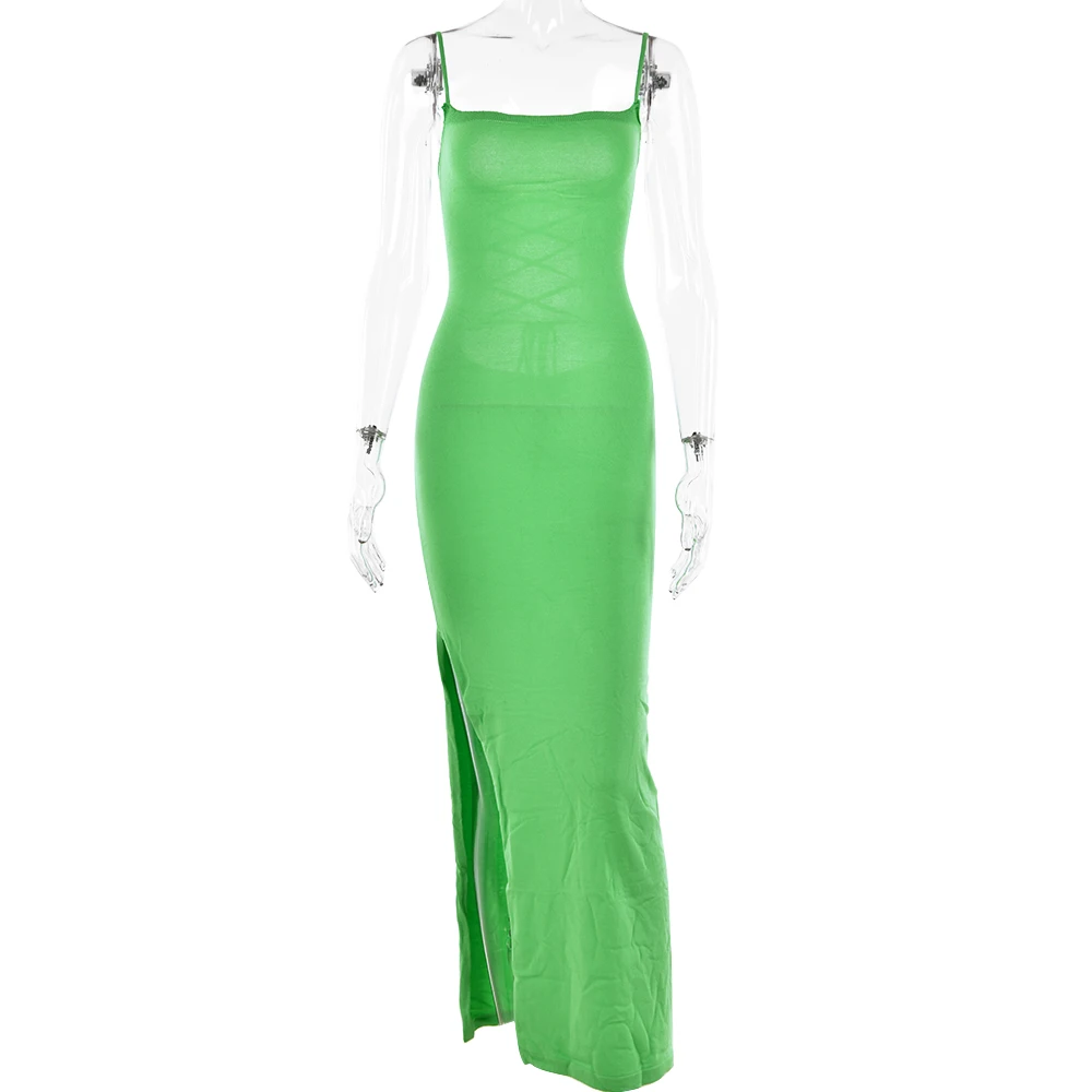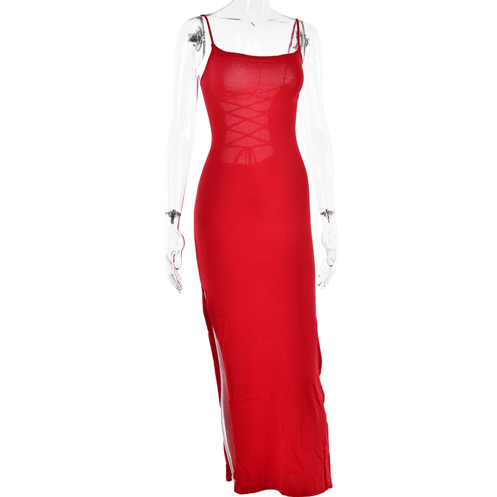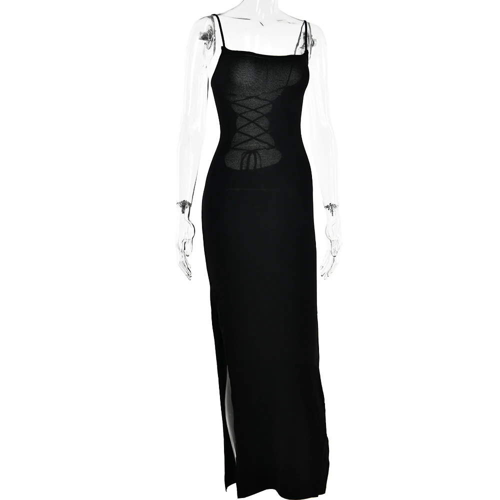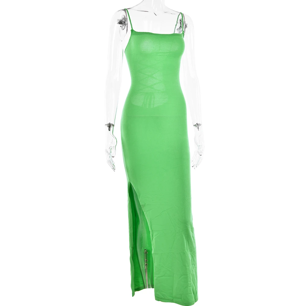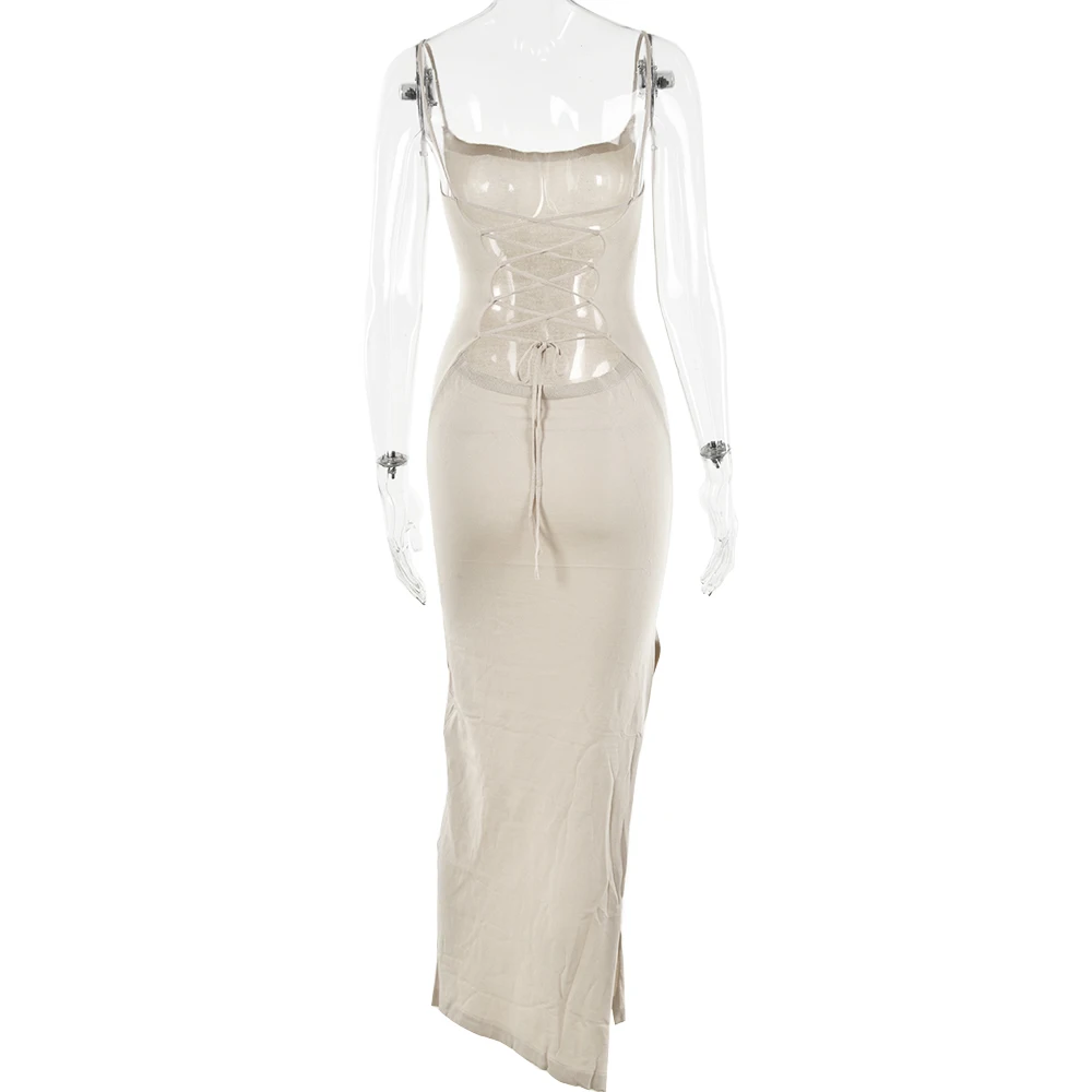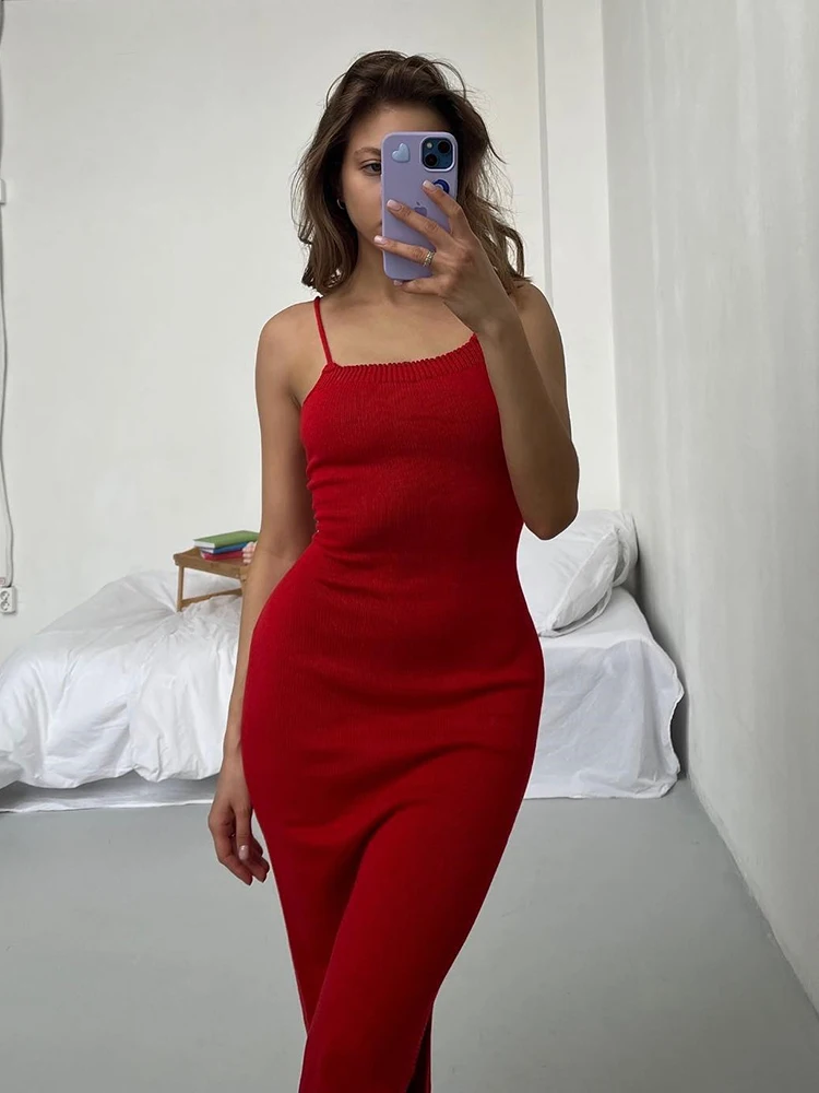 Knittin Spaghetti Strap High Slit Tight Woman Dress Backless Tight Feminine Maix Dress Elegant Prom Party Clothing