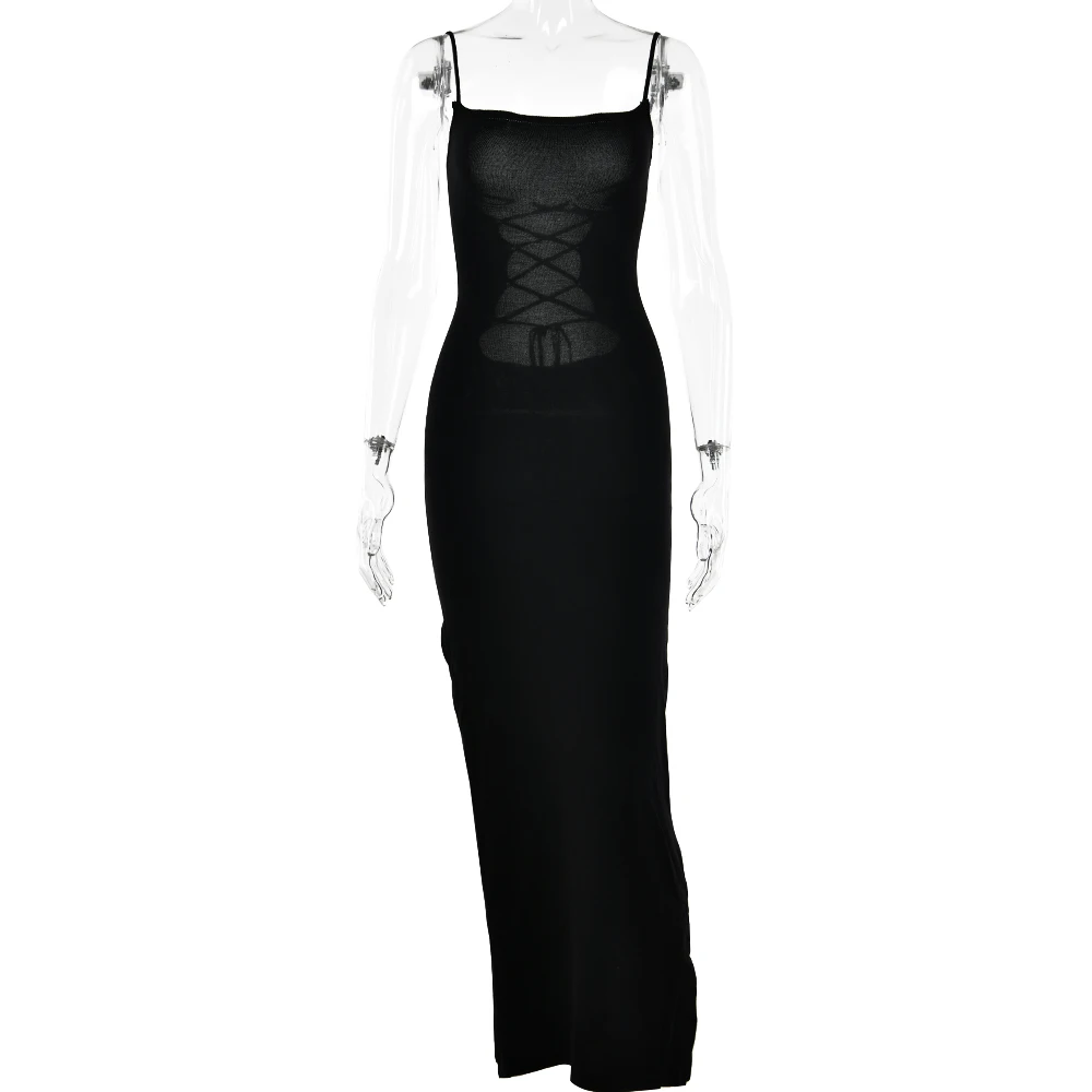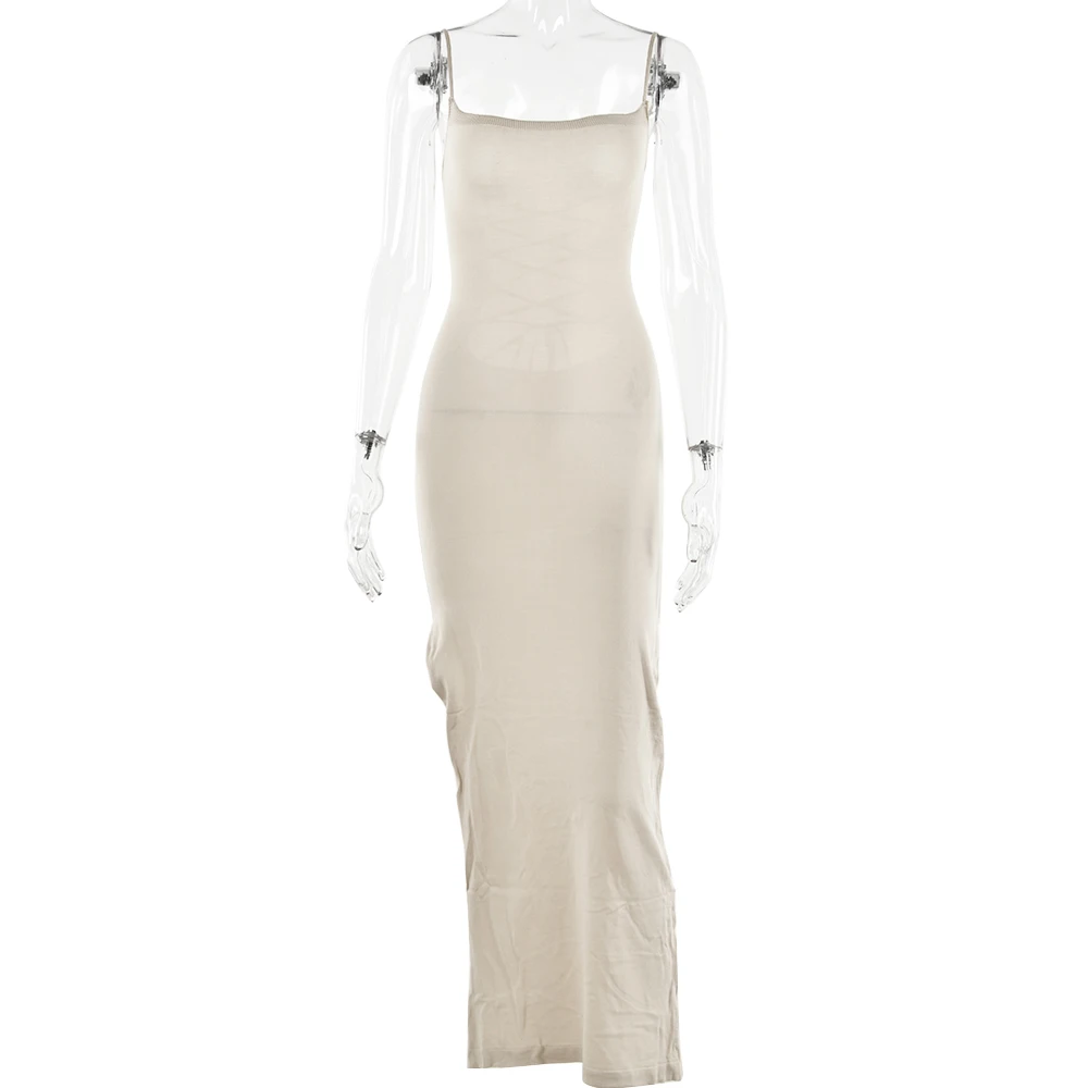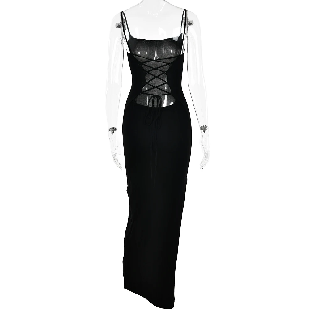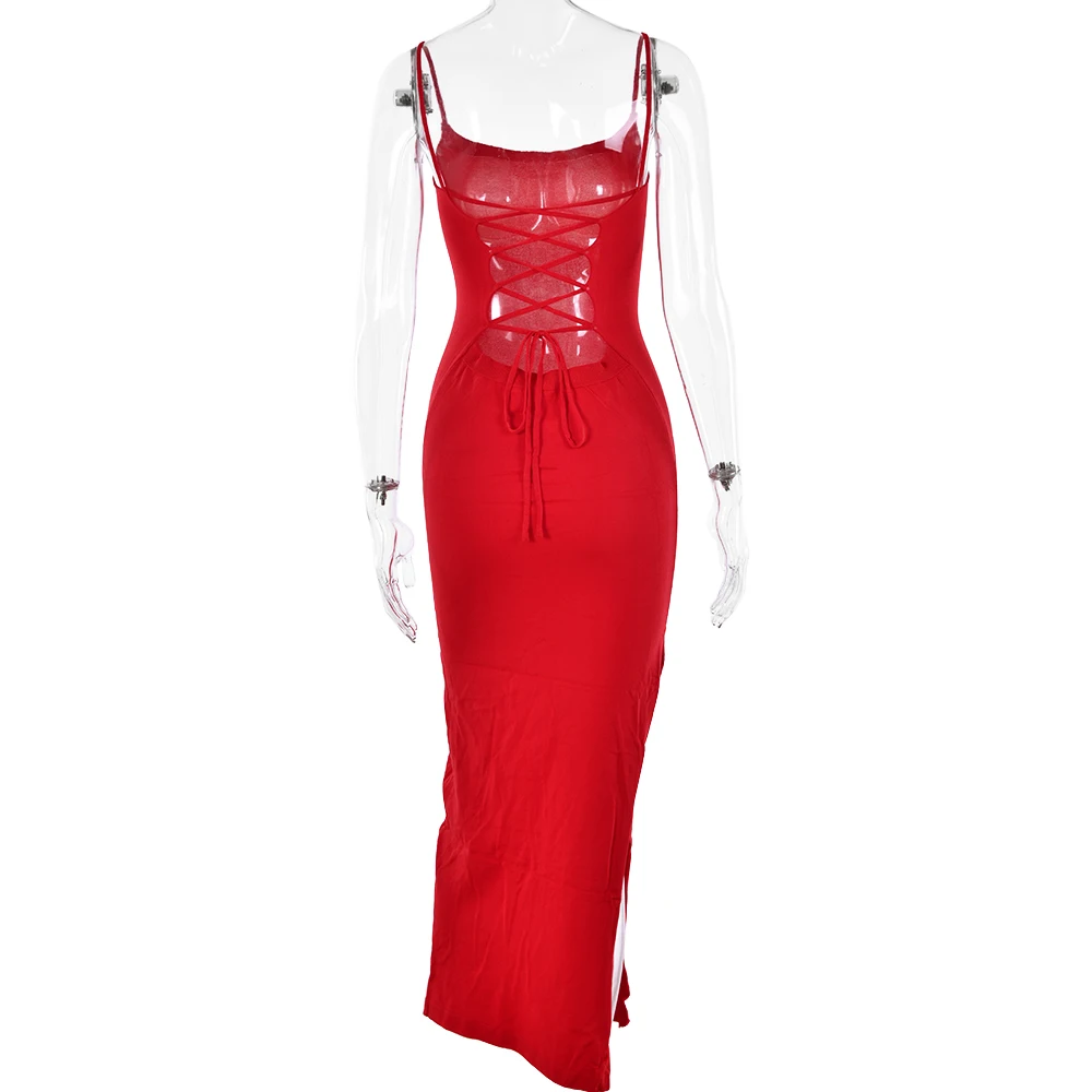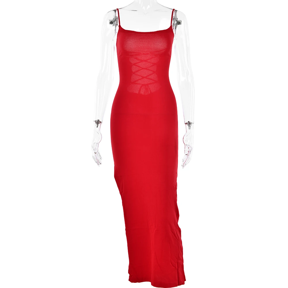 Knittin Spaghetti Strap High Slit Tight Woman Dress Backless Tight Feminine Maix Dress Elegant Prom Party Clothing