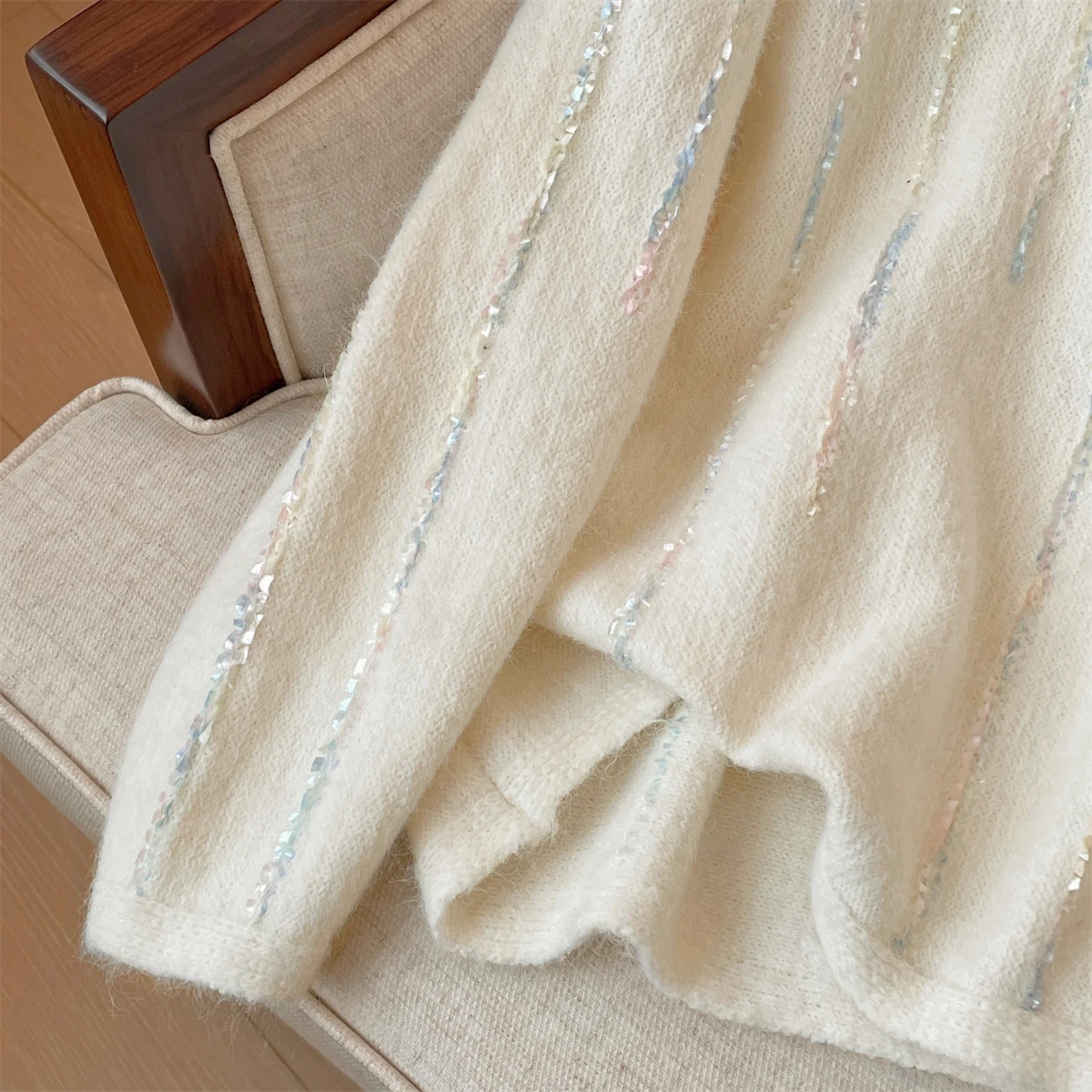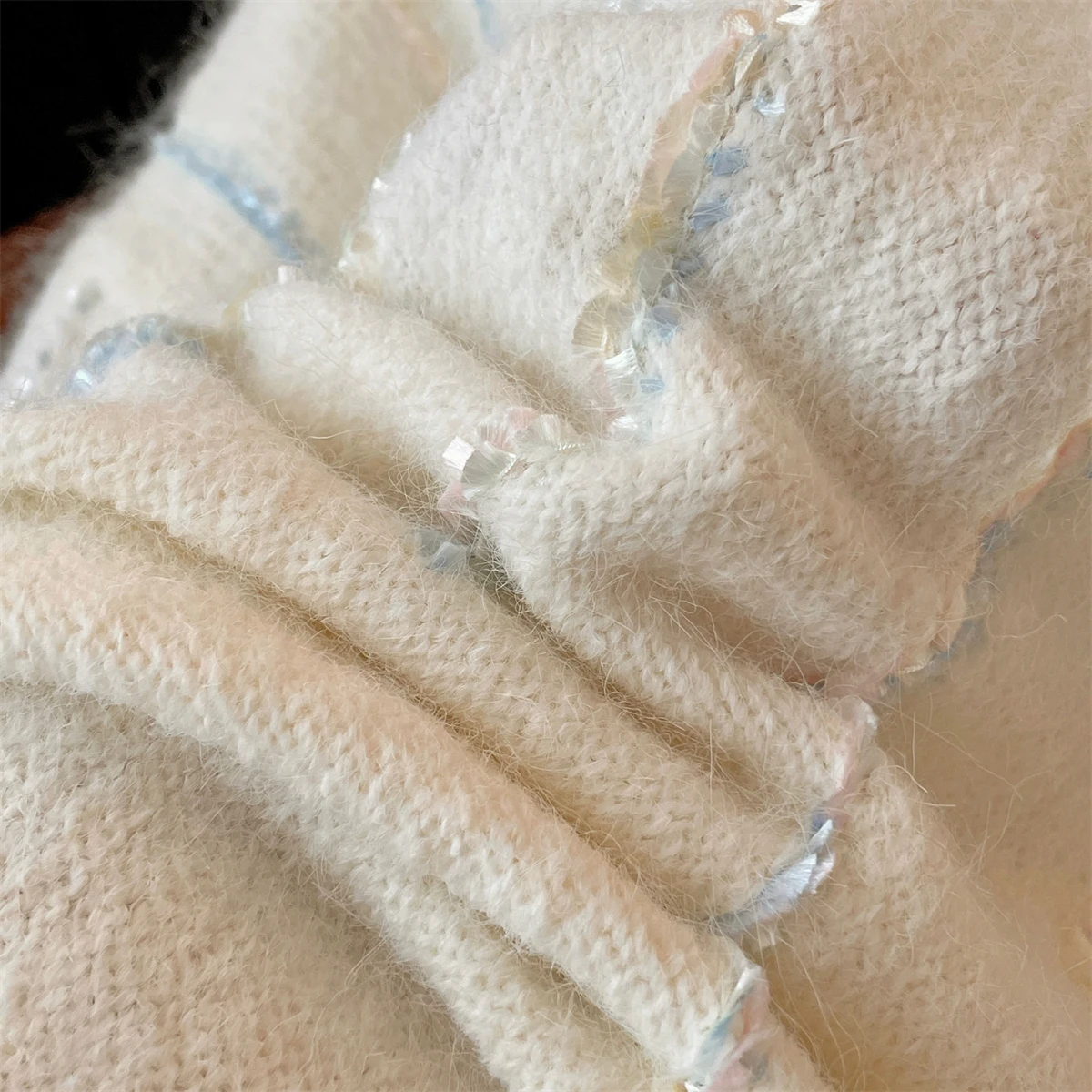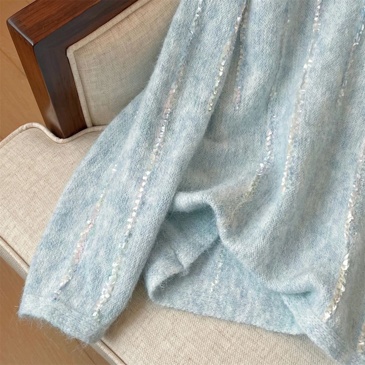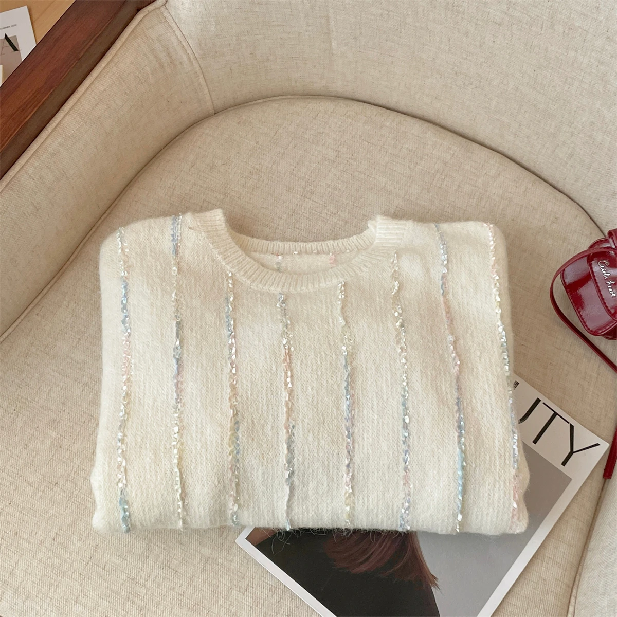 Korean Autumn Winter Beige Long Sleeves Loose Knit Crochet Sweater Women's Blue Round Neck Versatile Short Pullover Tops Popular