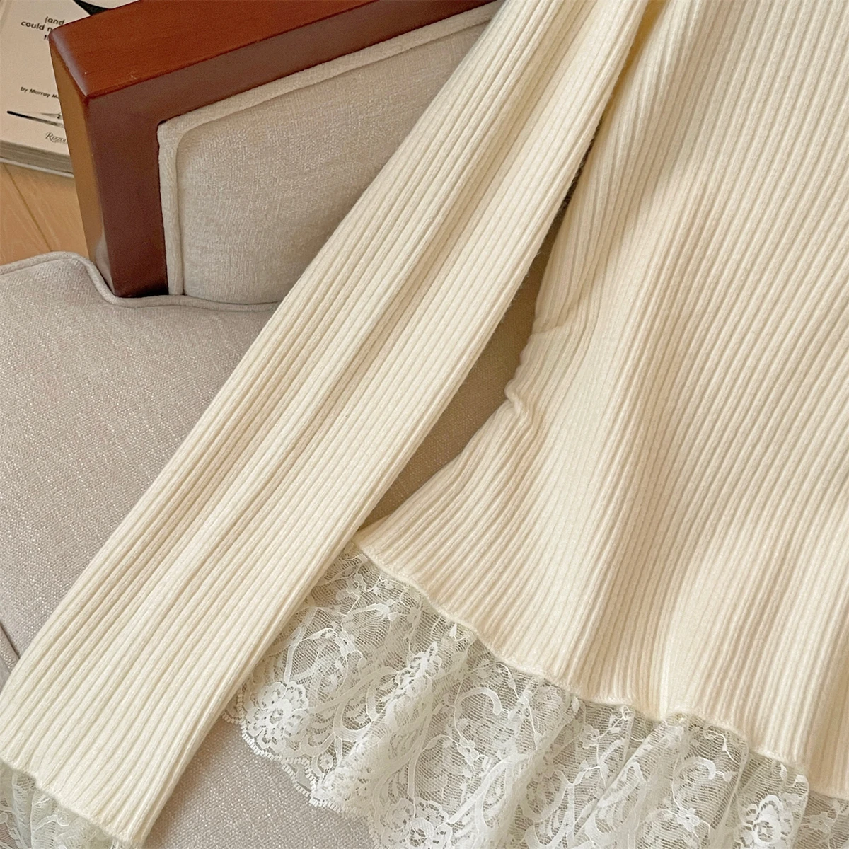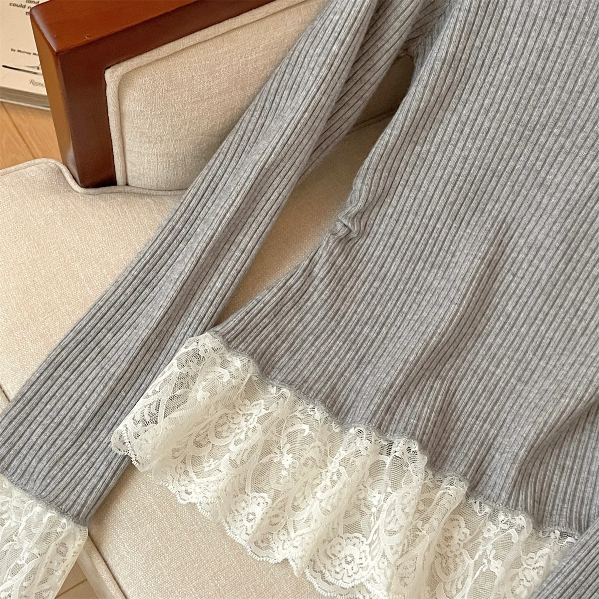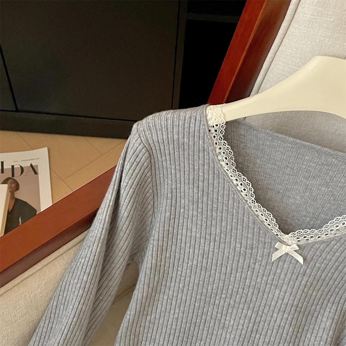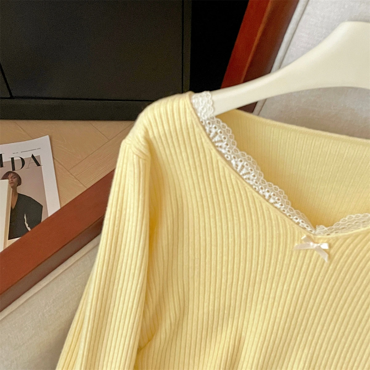Korean Autumn Winter Sweet Patchwork Elegant Pullover Short Sweater Women's 2024 New V Neck Long Sleeved Knitted Tops Streetwear