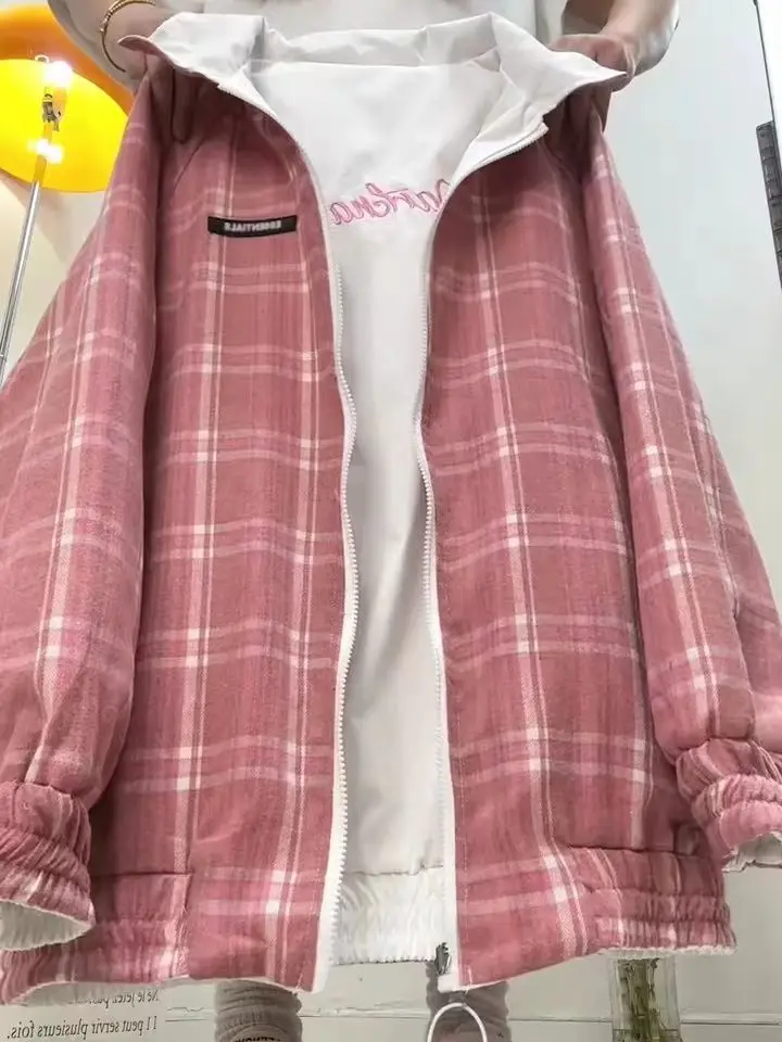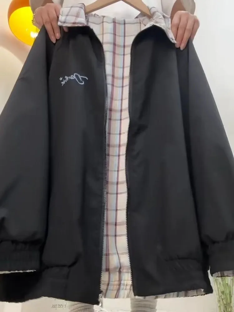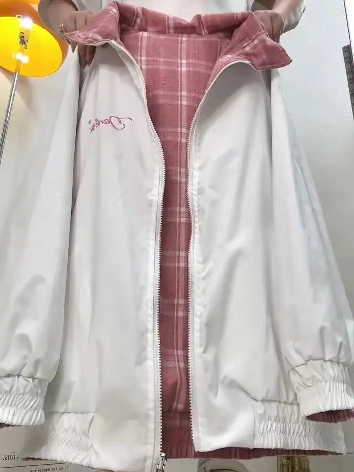Korean Double Sided Wear Jackets for Women's 2024 Ropa Mujer Streetwear Oversized Tops Hooded Casual Fashion Stand Neck Coats