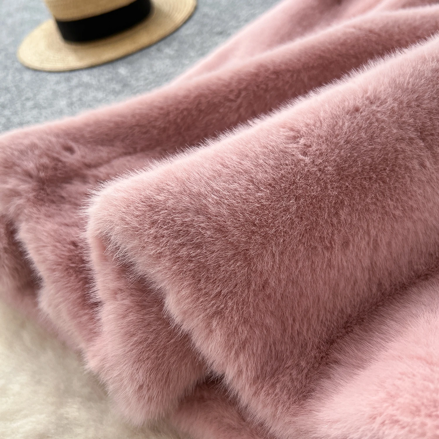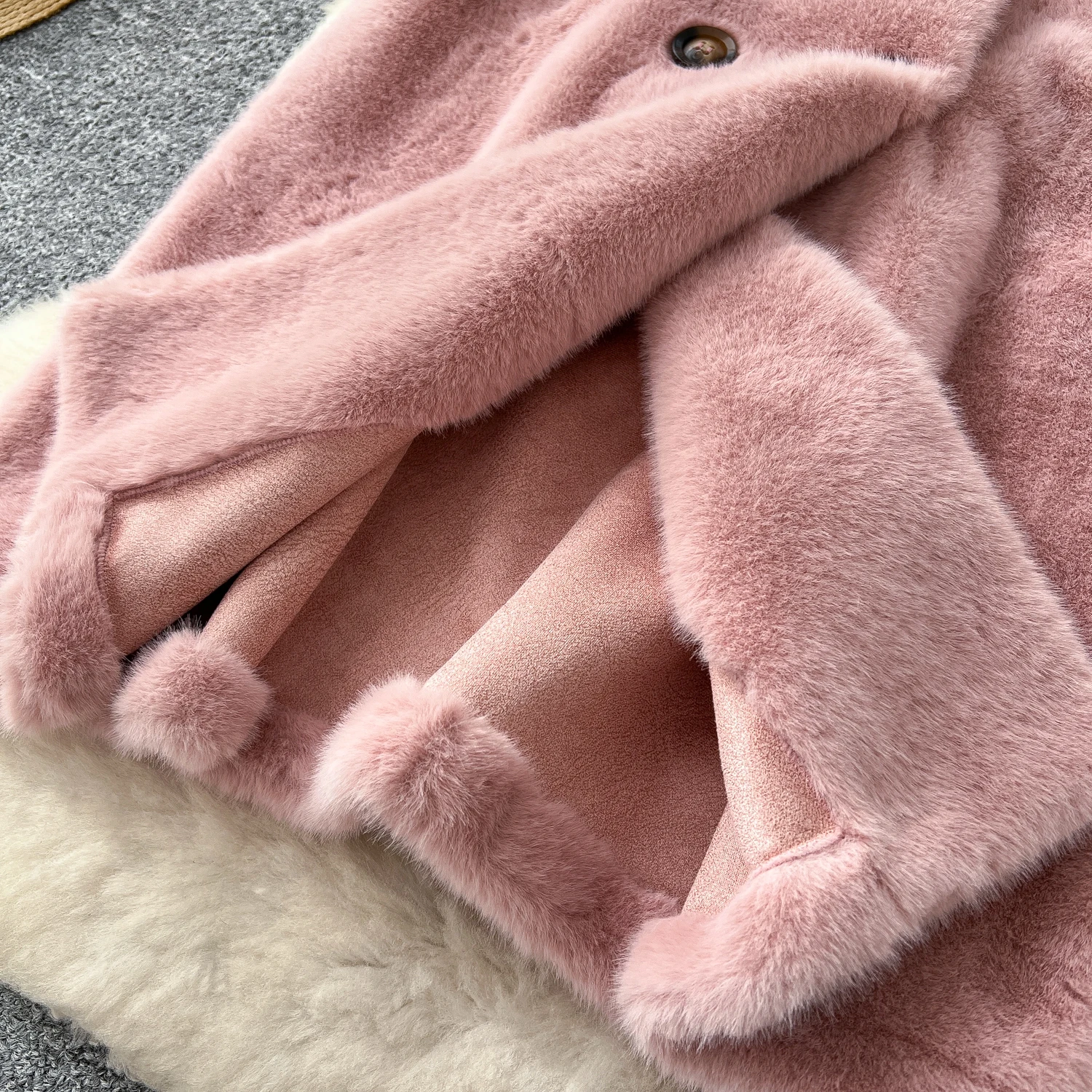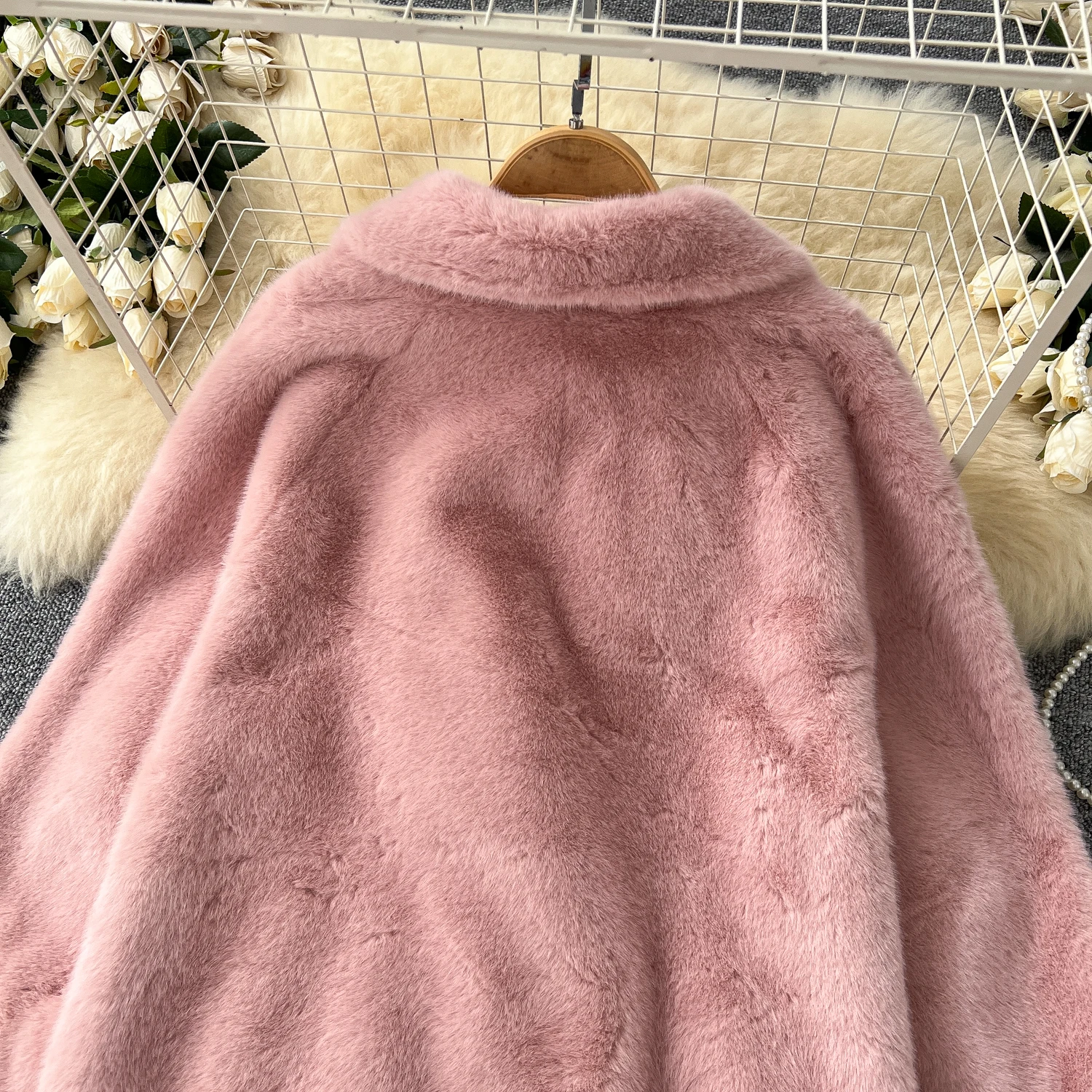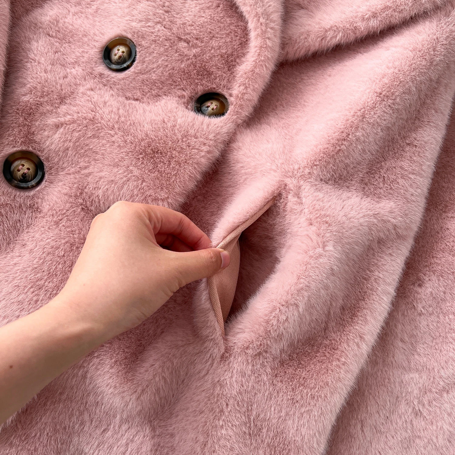 Korean Fashion 2024 Winter Solid Elegant Double-breasted Warm Imitation Mink Fur Coat Women Office Lady Thick Loose Long Jacket