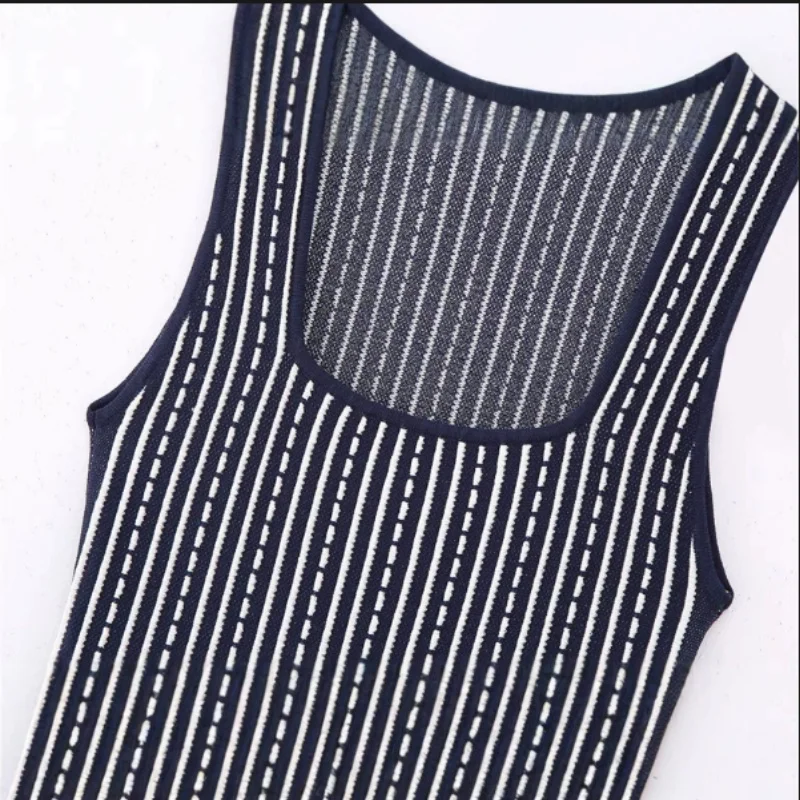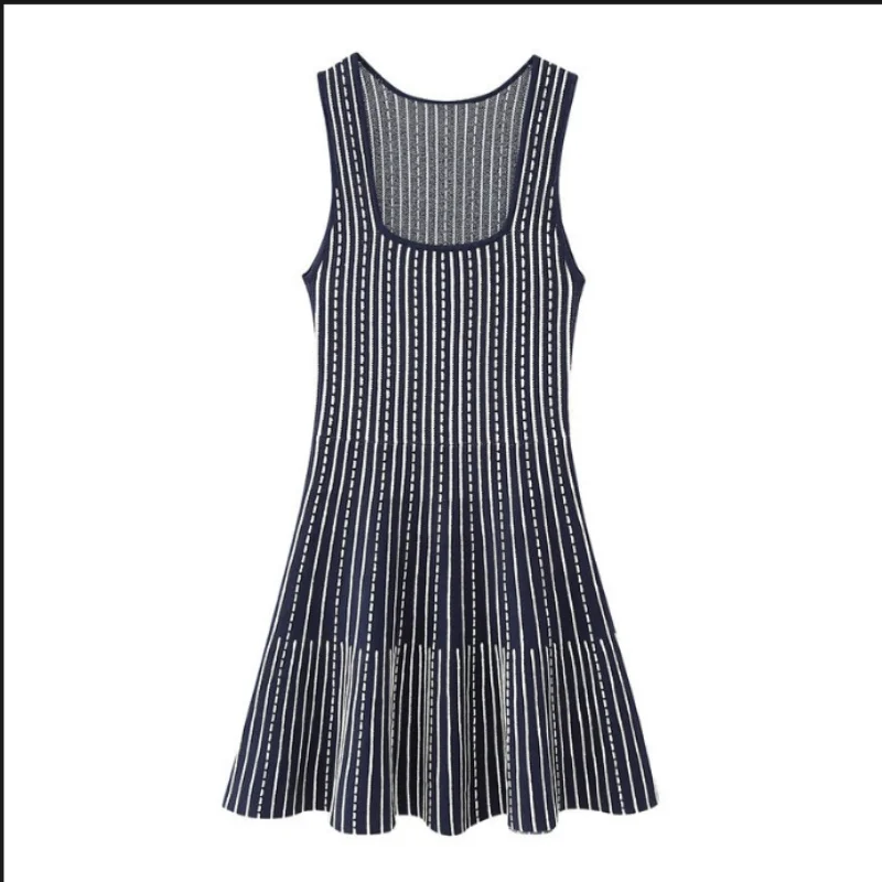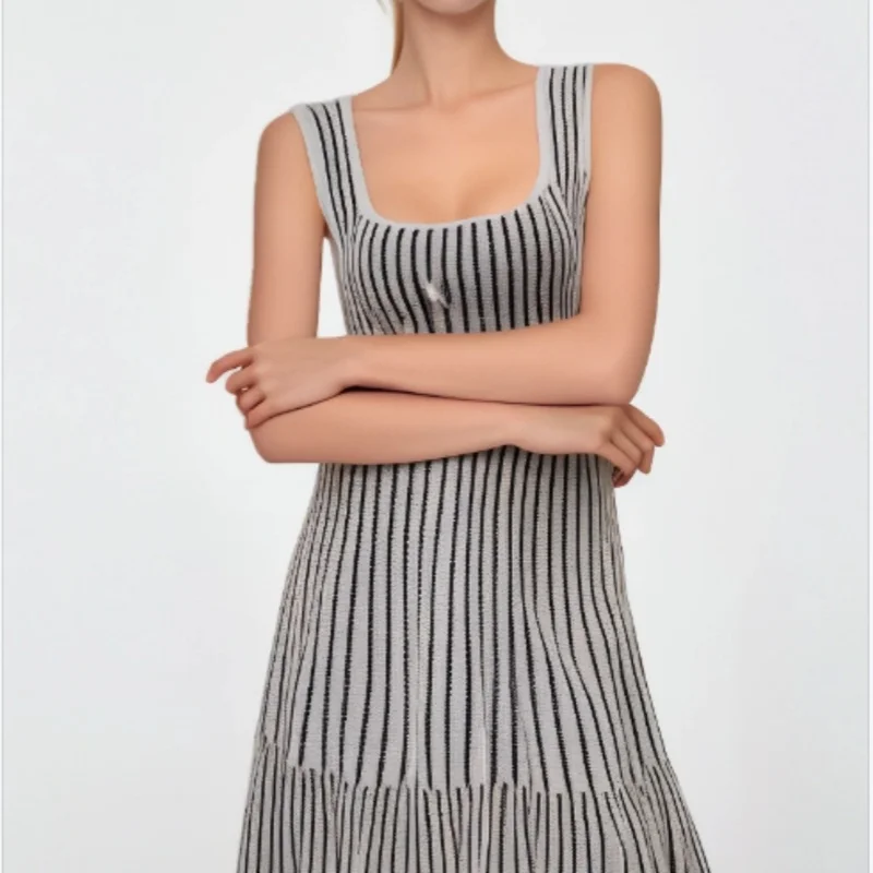 Korean Fashion Summer Striped Elegant Square Neck Slim Vest Short Dresses For Women Sleeveless Sexy Mini Dress 2025 Casual Trend