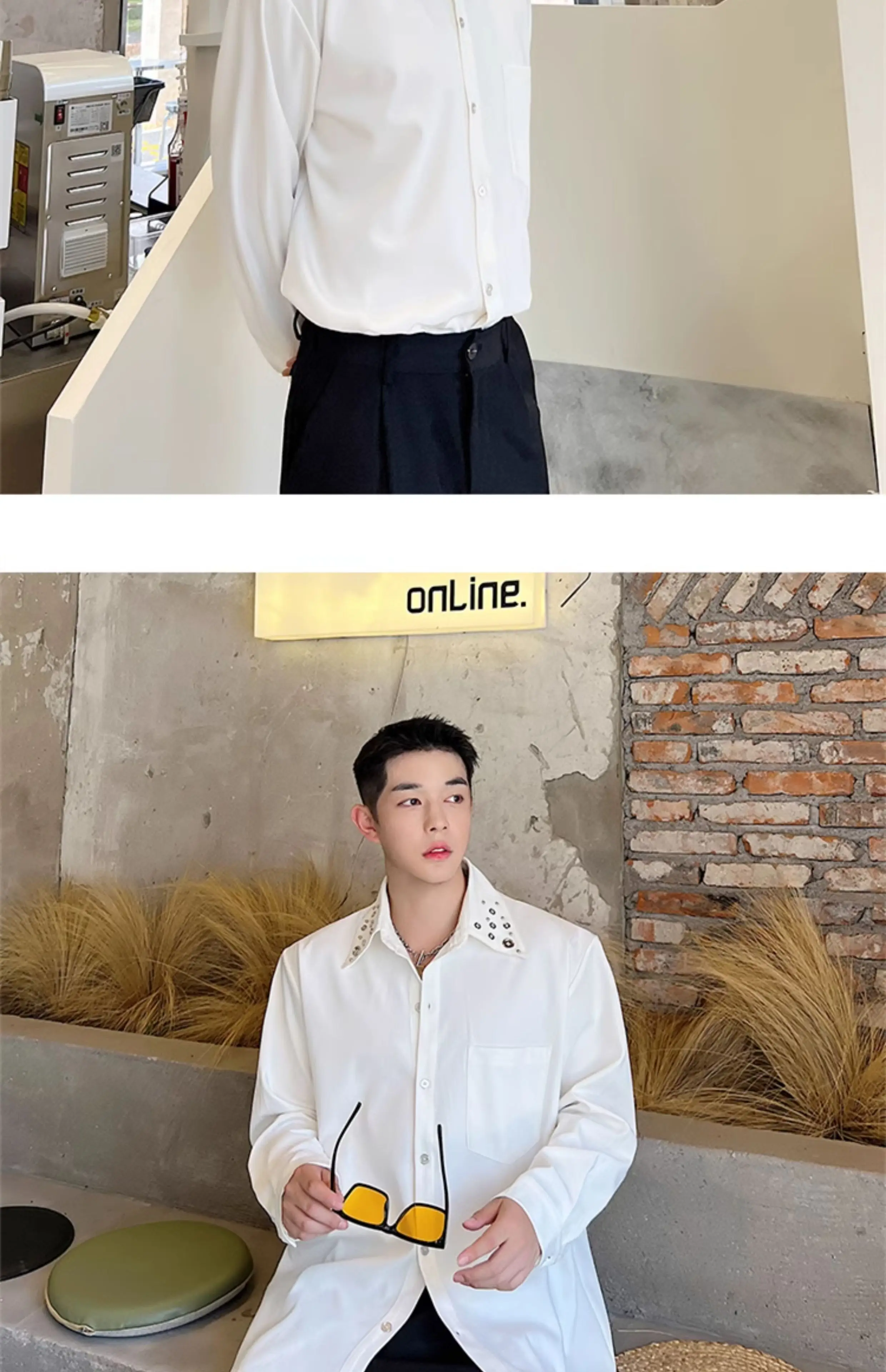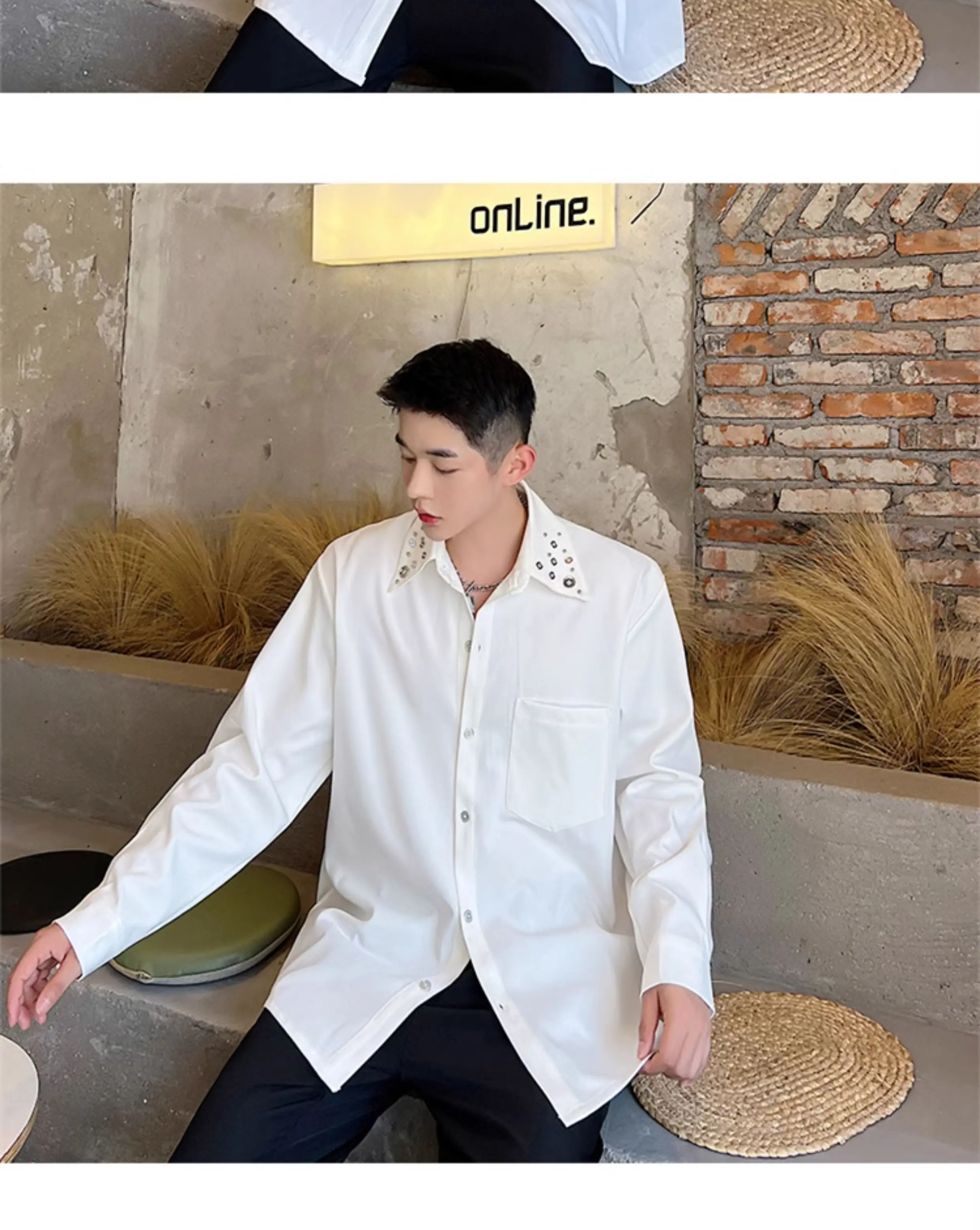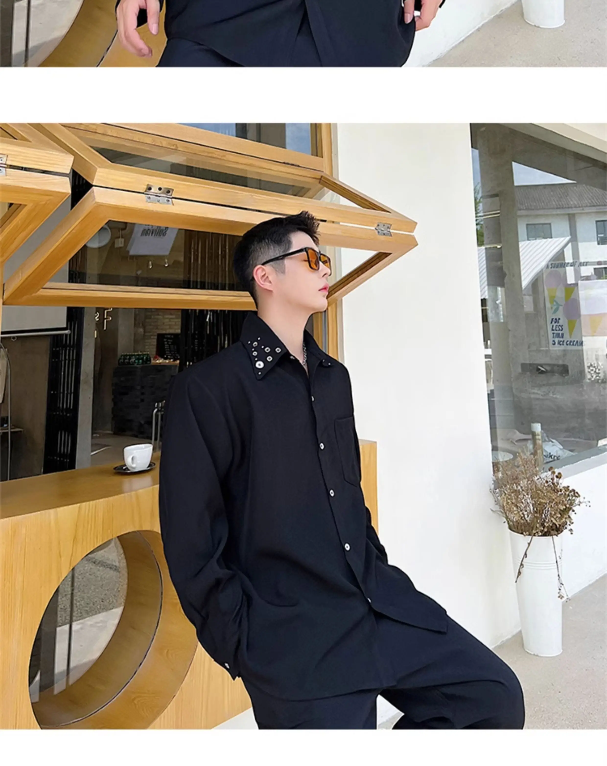 Korean Male Long Sleeve Shirts New Multi Metal Buckle Niche Design Turn-down Collar Stylish Menwear Spring Clothing 9W1401