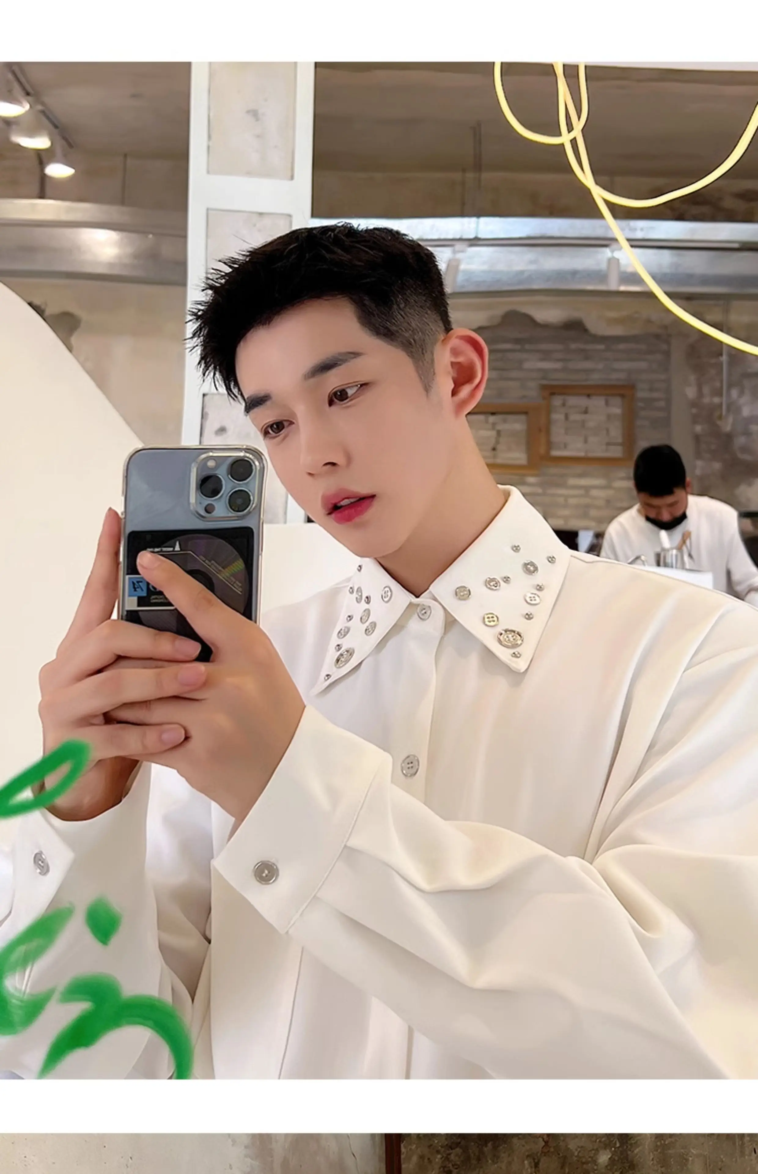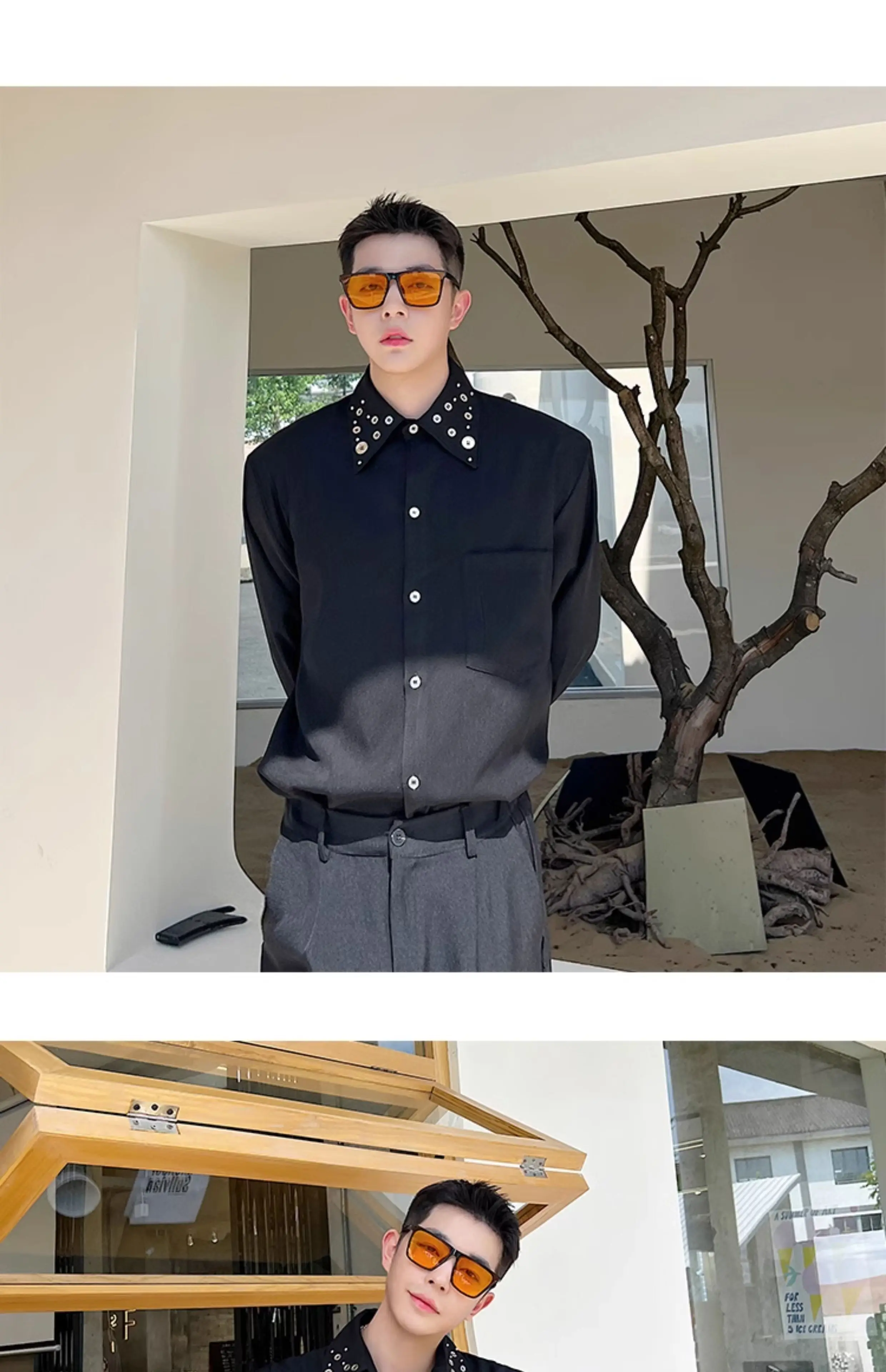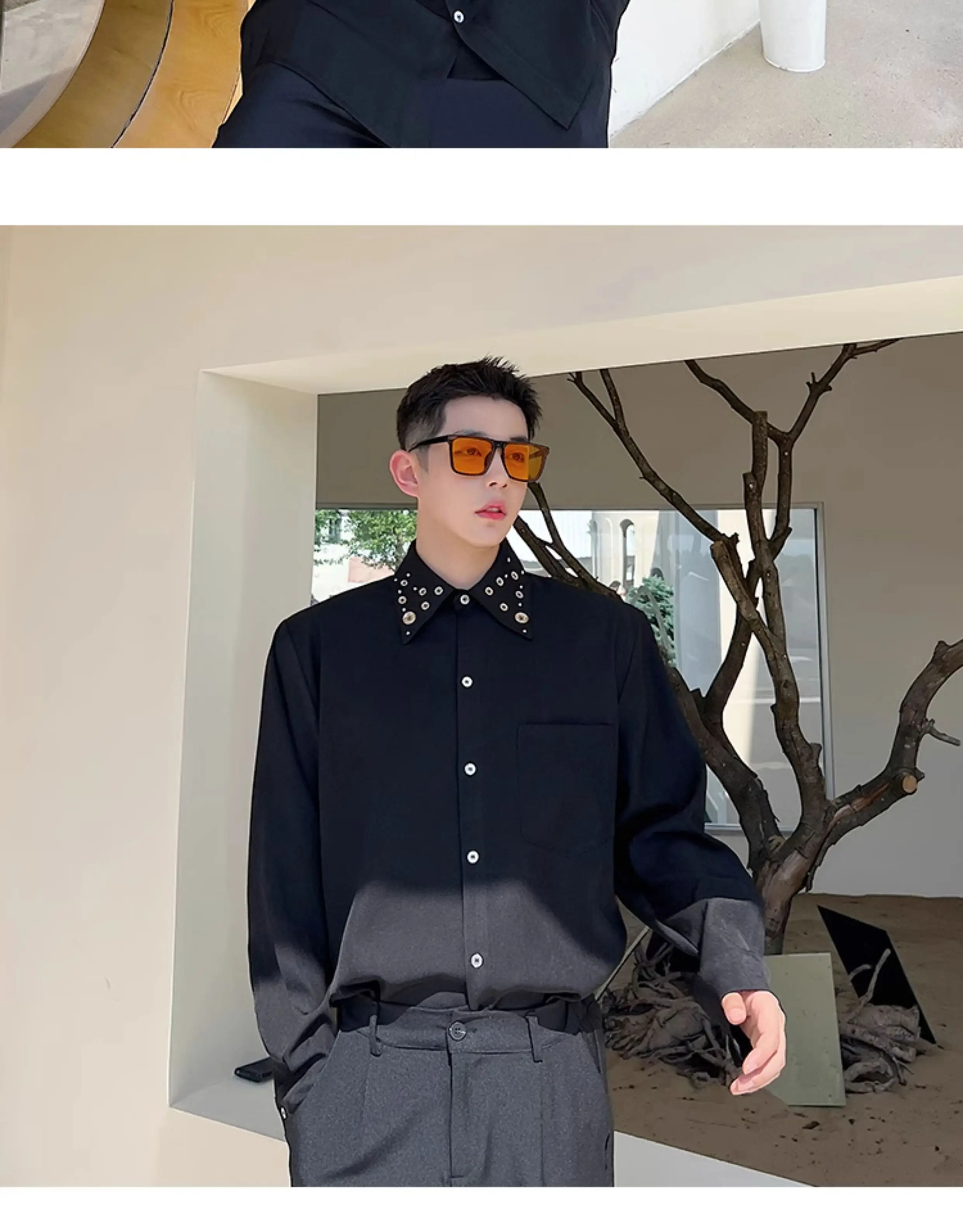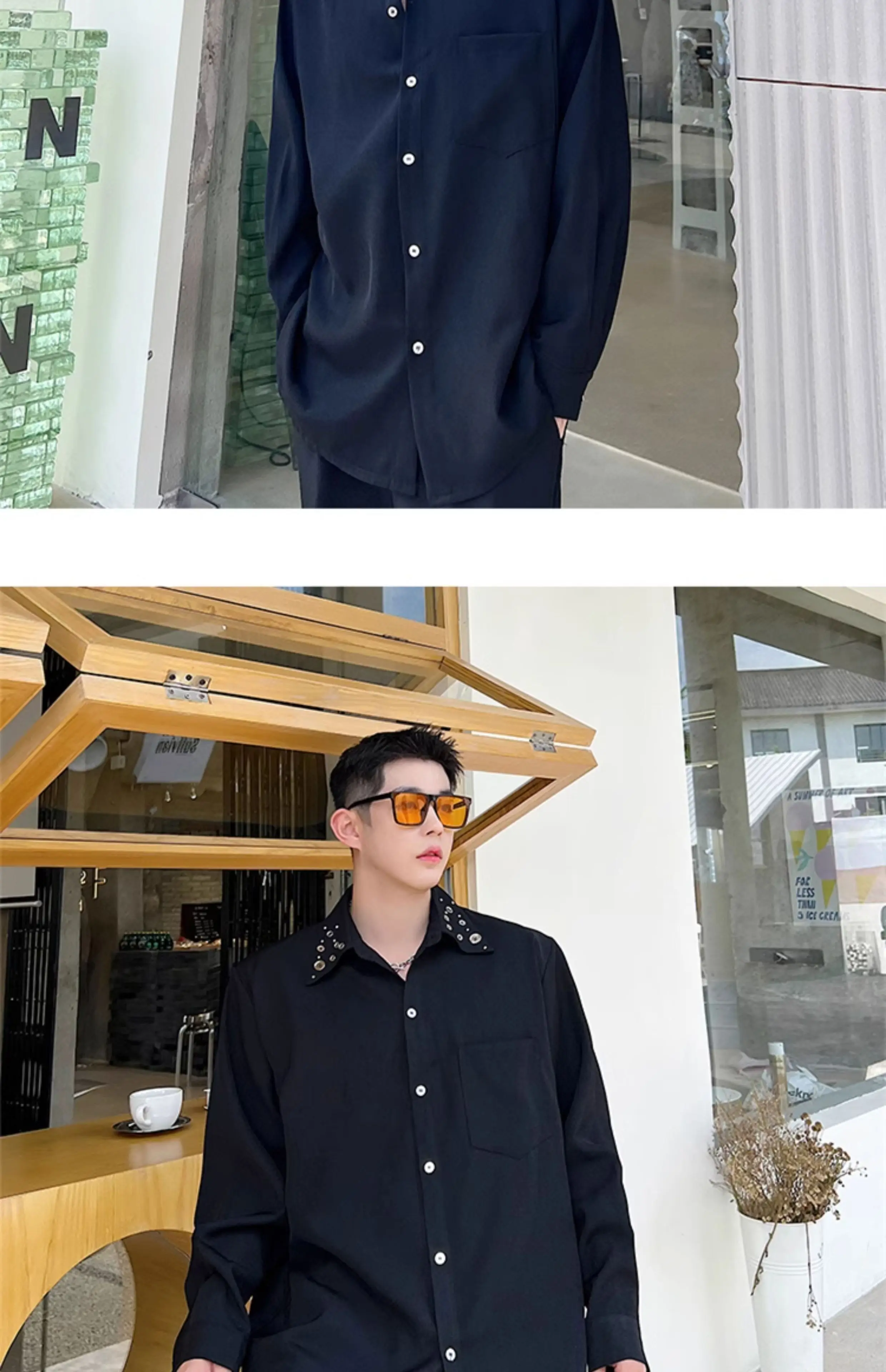 Korean Male Long Sleeve Shirts New Multi Metal Buckle Niche Design Turn-down Collar Stylish Menwear Spring Clothing 9W1401