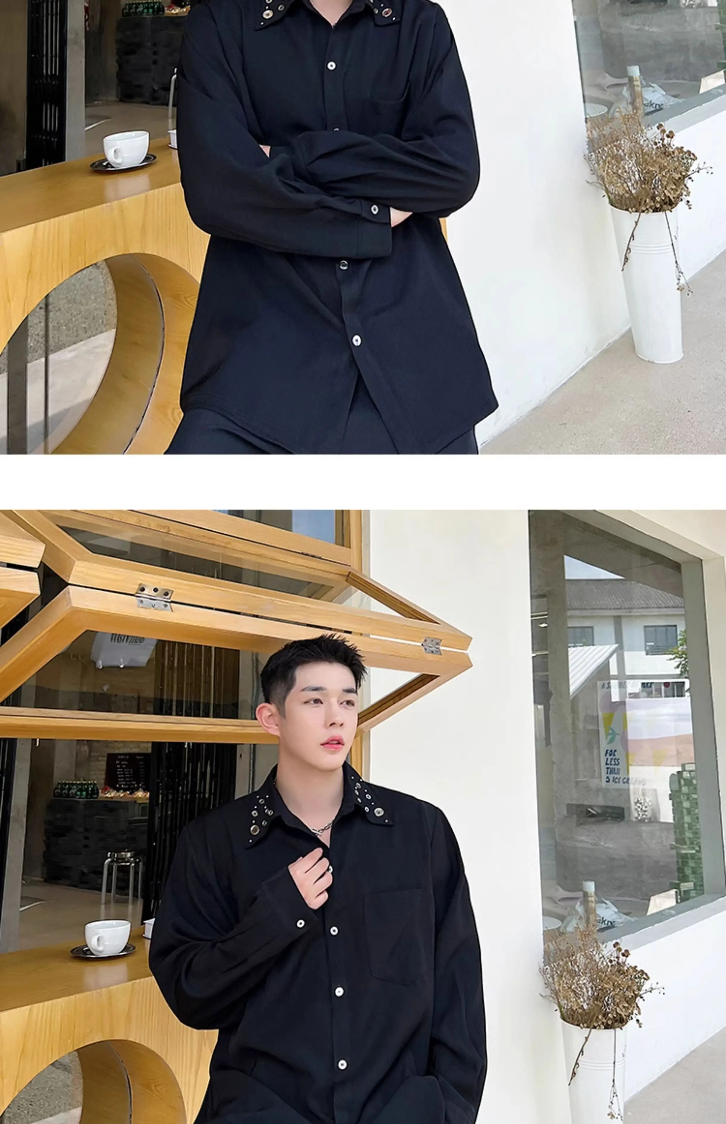Load image into Gallery viewer, Korean Male Long Sleeve Shirts New Multi Metal Buckle Niche Design Turn-down Collar Stylish Menwear Spring Clothing 9W1401