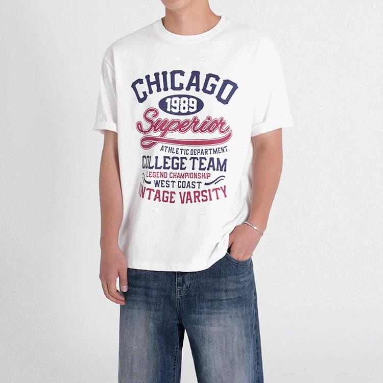 Korean New Summer Men's T-shirts Letter Printed Short Sleeved T-shirt Loose Round Collar Korean Stylish Male Top 9W1631