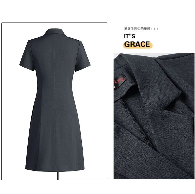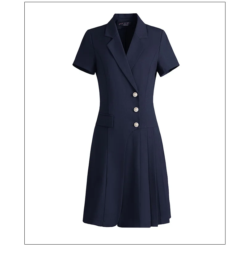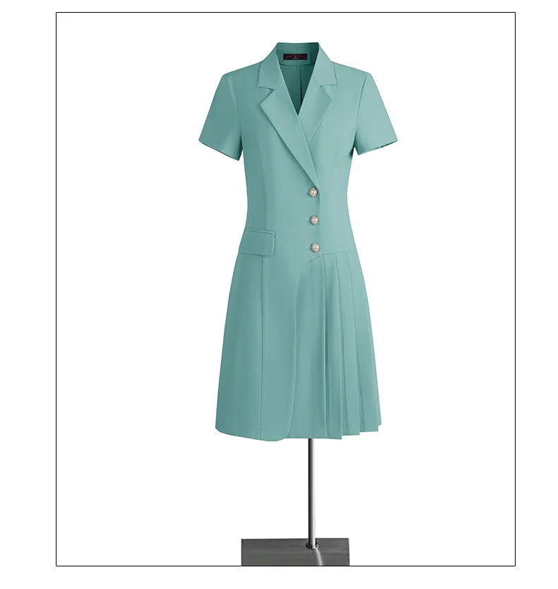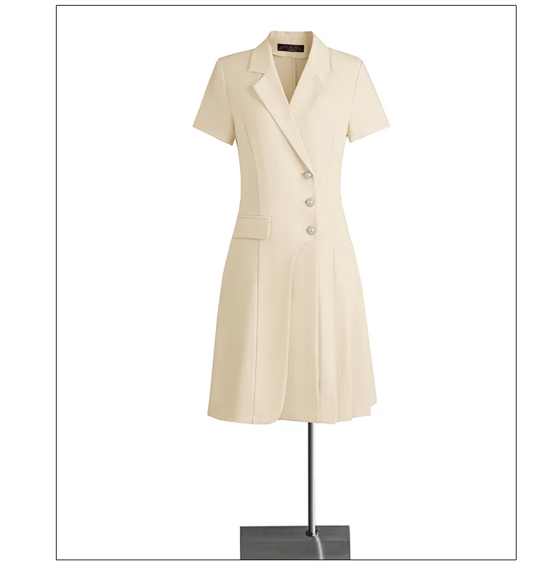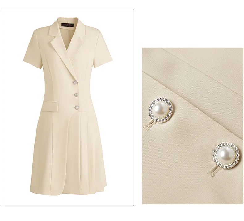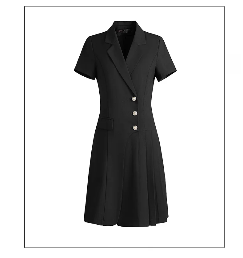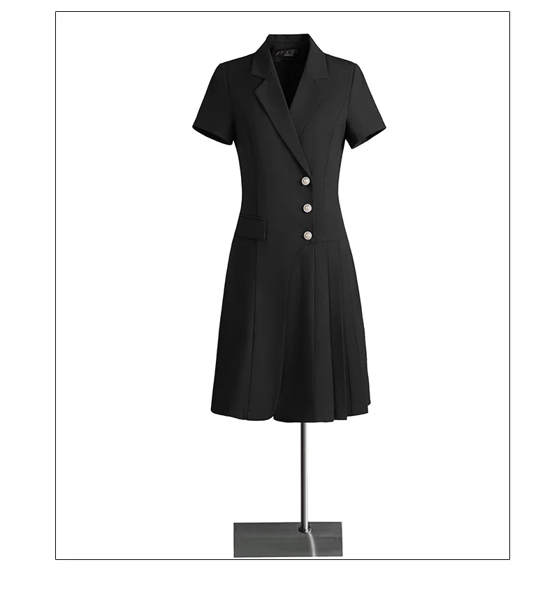 Korean Solid Office Professional Workwear Blazer Dress For Women 2024 Summer Short-sleeve Single Breasted Festival Pleated Dress